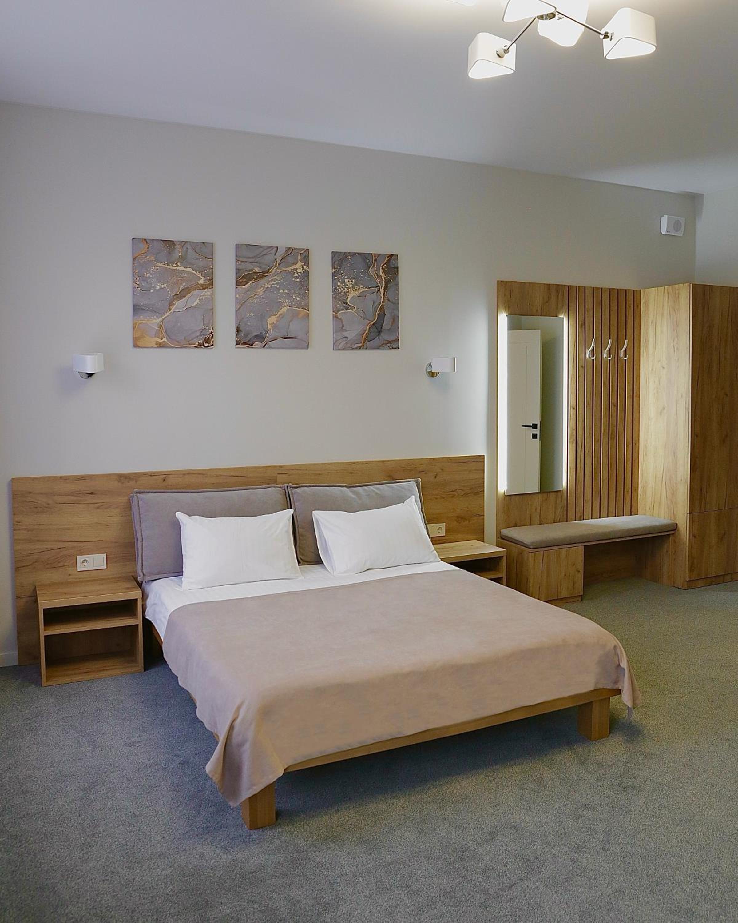 Несподівано я побачив дуже високий рівень ведення готельного бізнесу. Зручності, ліжко, чистота номерів і взагалі в готелі, ввічливість персоналу - все на найвищому рівні. У ванній кімнаті є навіть підігрів підлоги. Це доволі рідкісне явище. Поруч з готелем ресторан зі смачними стравами. І на додаток найсвіжіше лісове повітря. Насправді чудове місце для відпочинку.