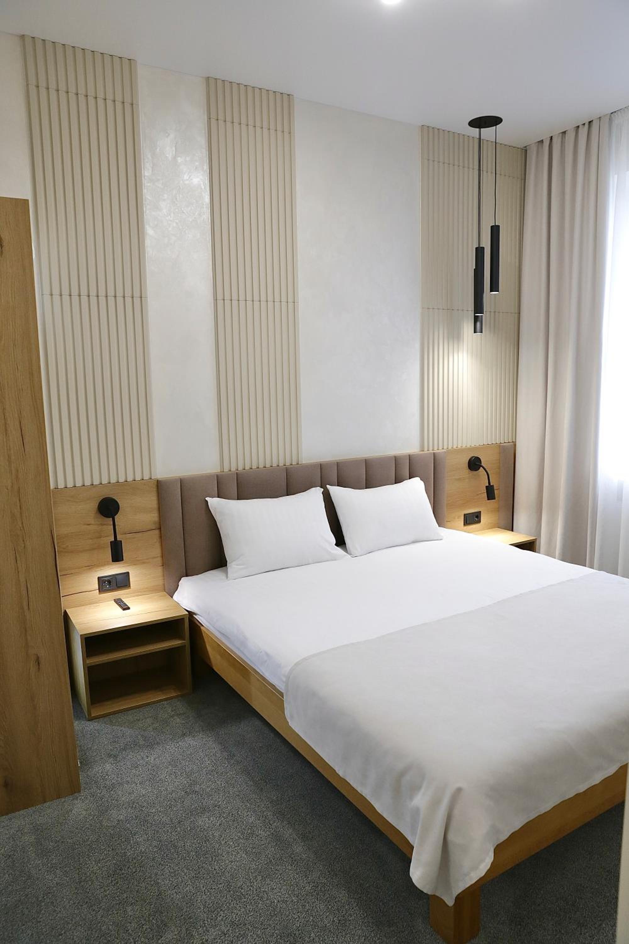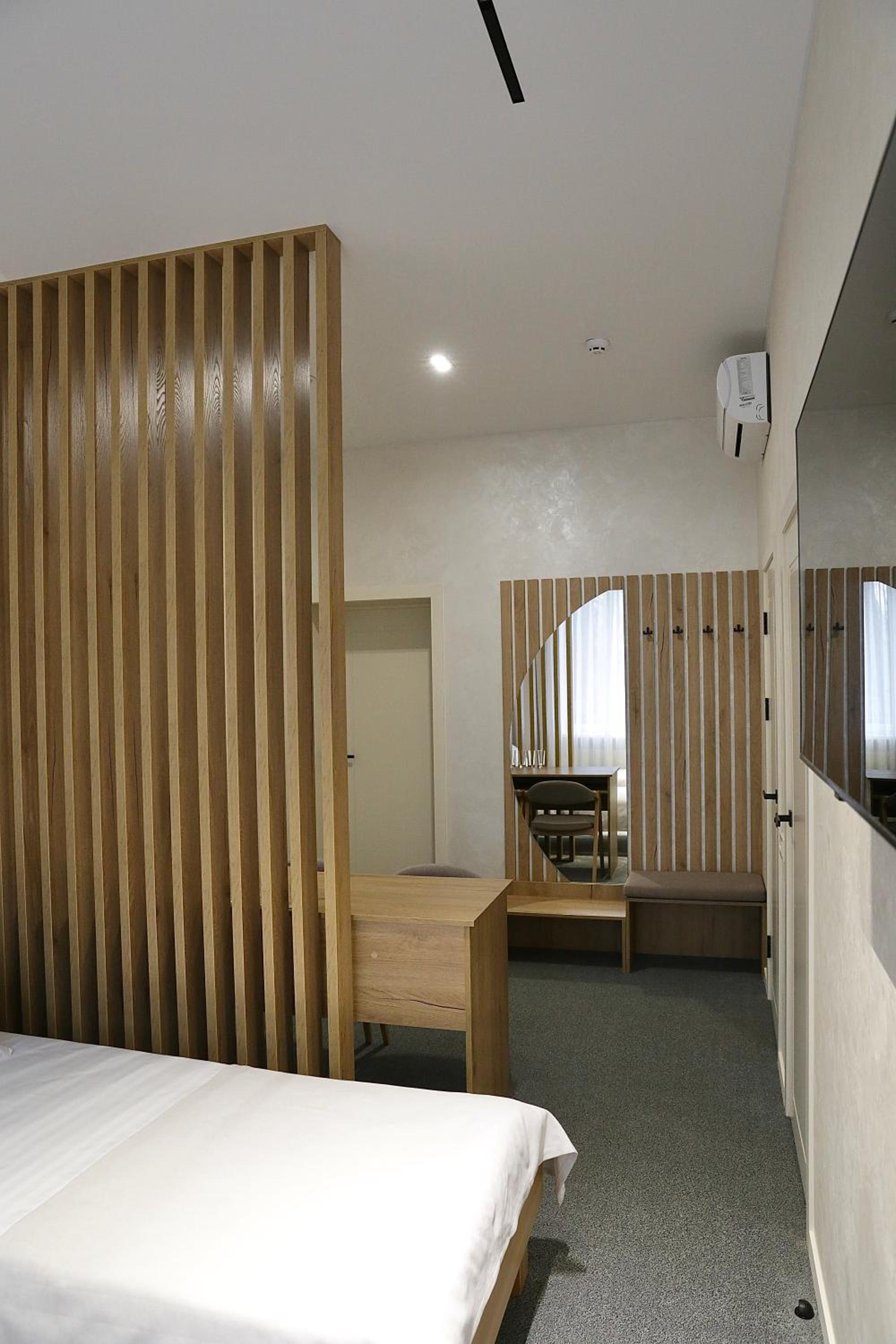 Класне місцерозташування у лісочку, недалеко від траси. Гарно зроблені номери, чисто. Привітний персонал. Парковка з зарядкою для електромобілів.