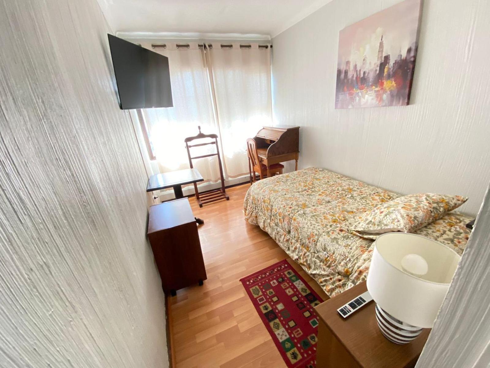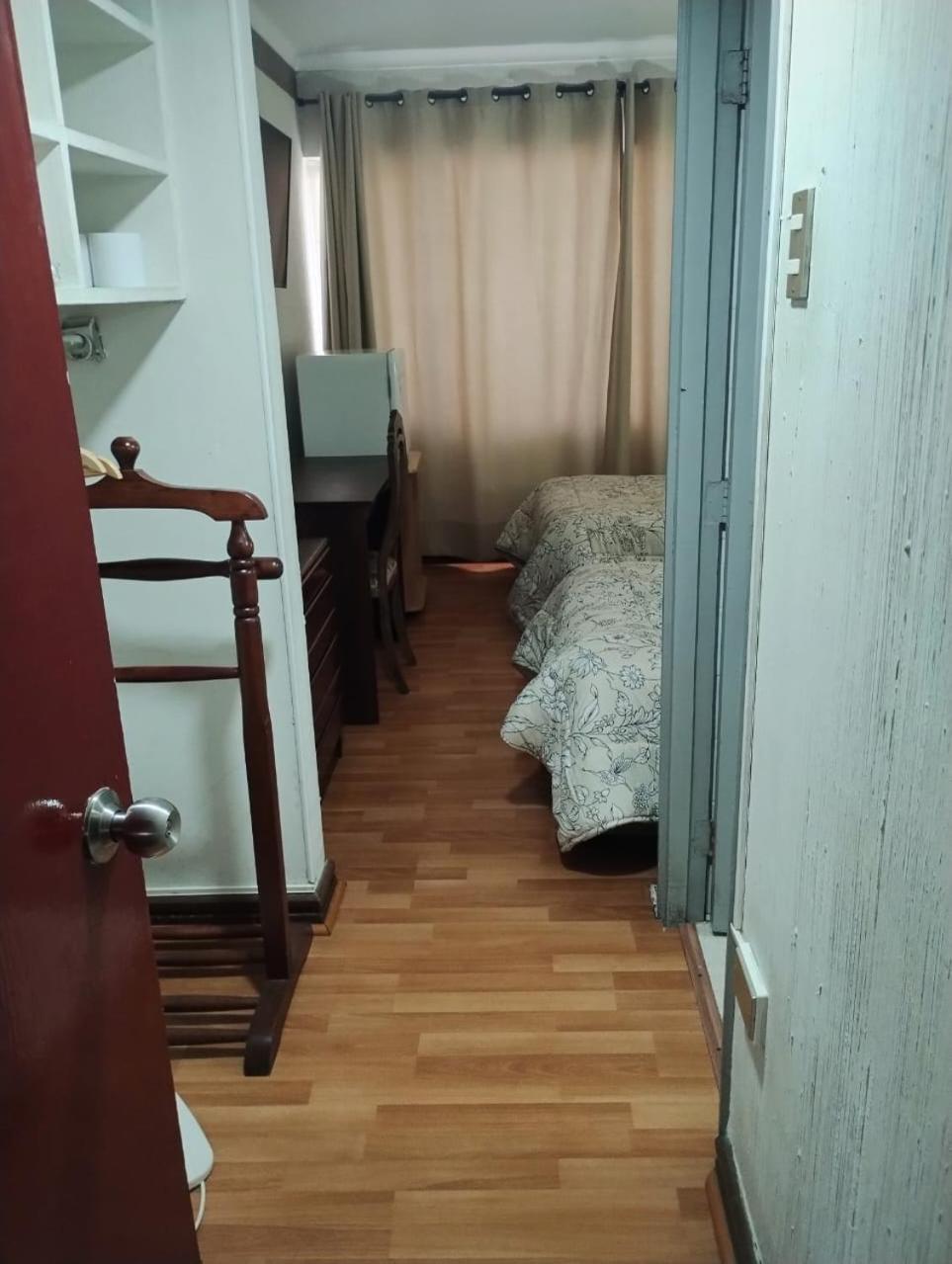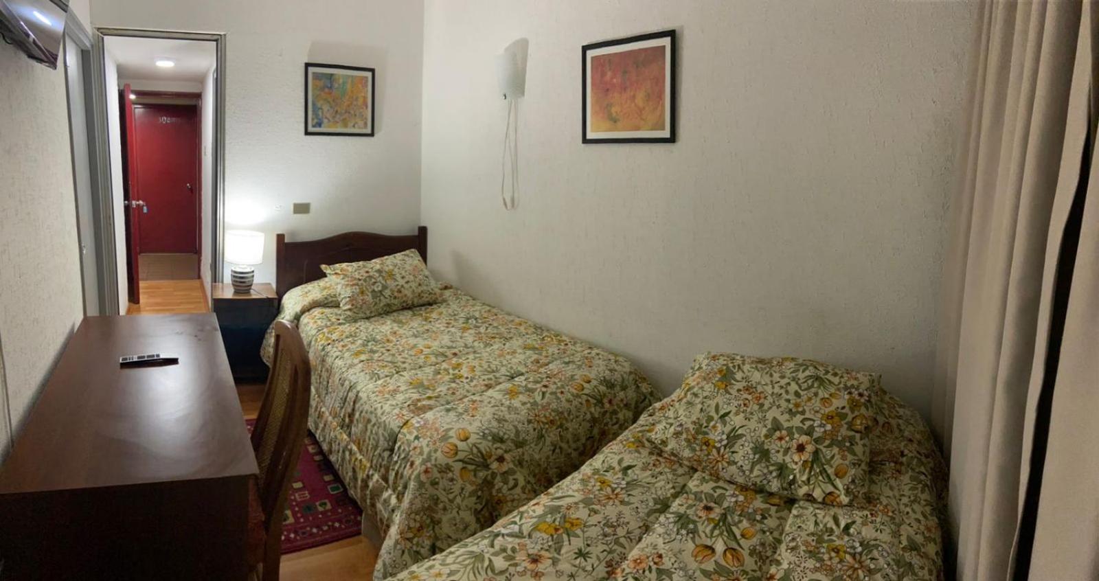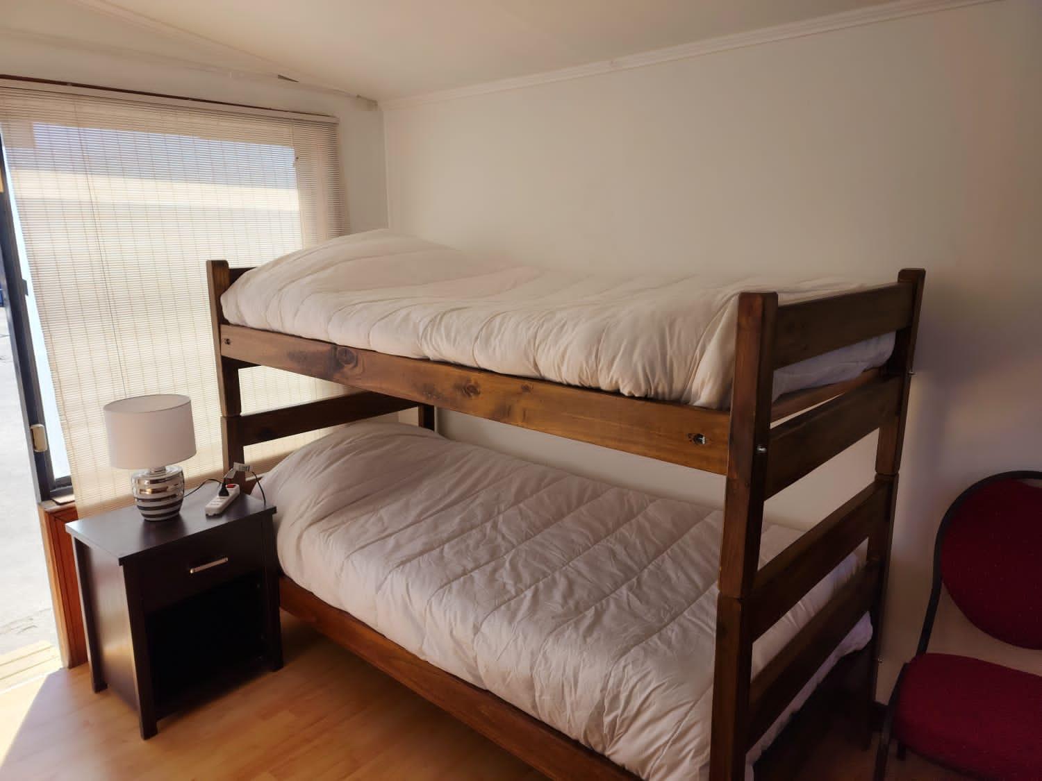 Mi habitación pequeña con dos camas siendo que solo yo me quedaría.