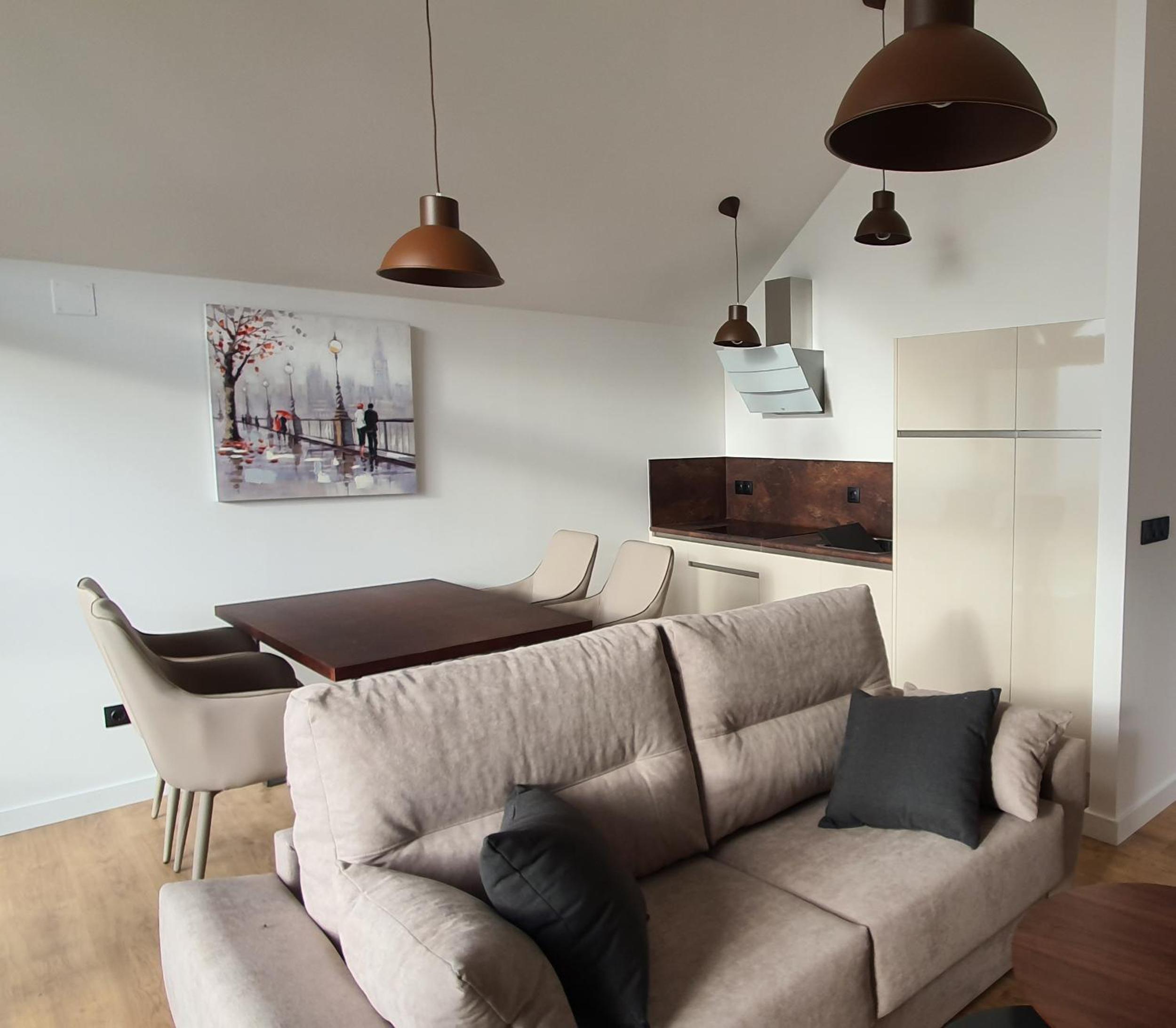 Las vistas del apartamento son impresionantes. Además, tiene todas las comodidades, cocina, salón con ventanal...