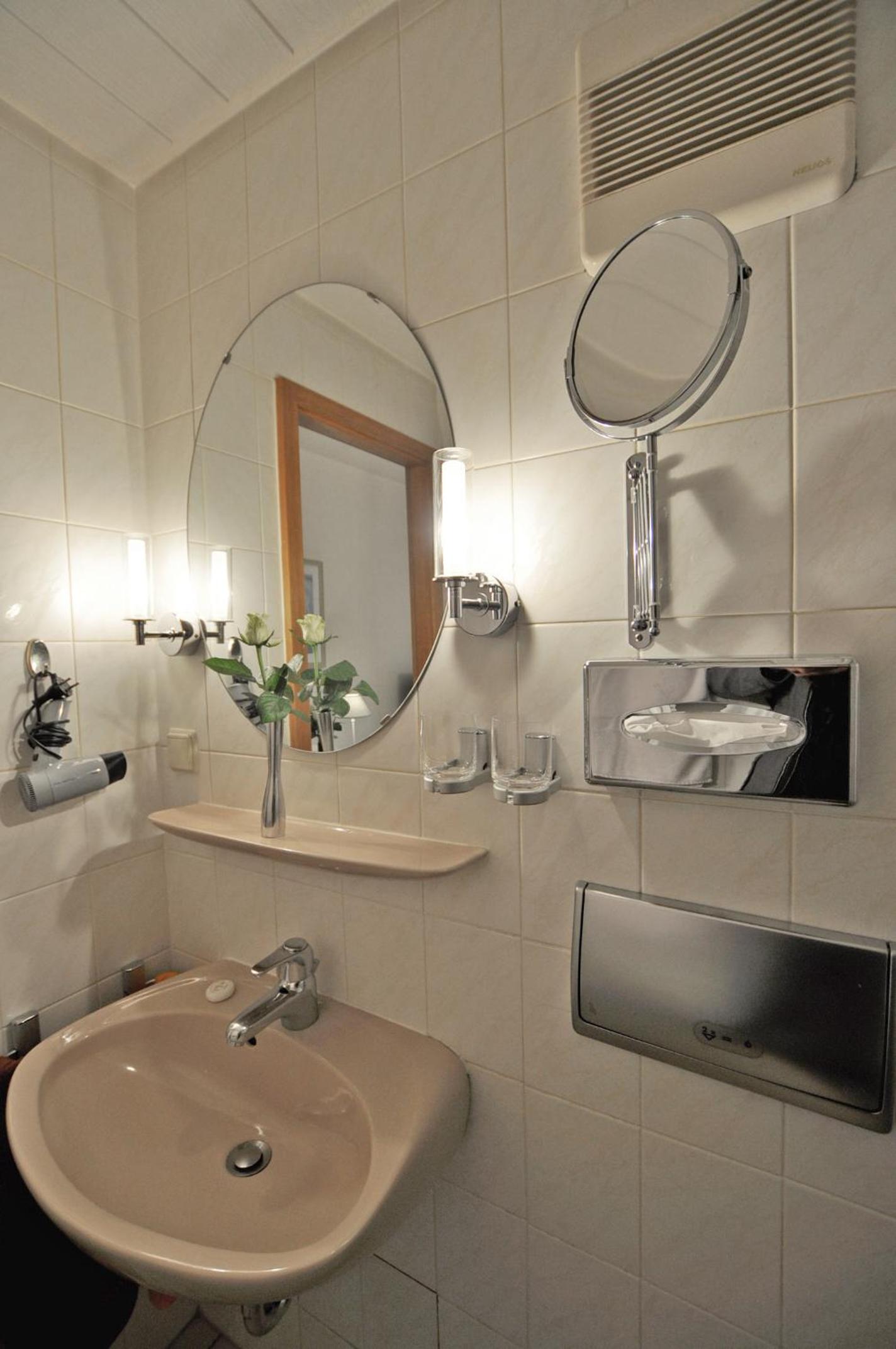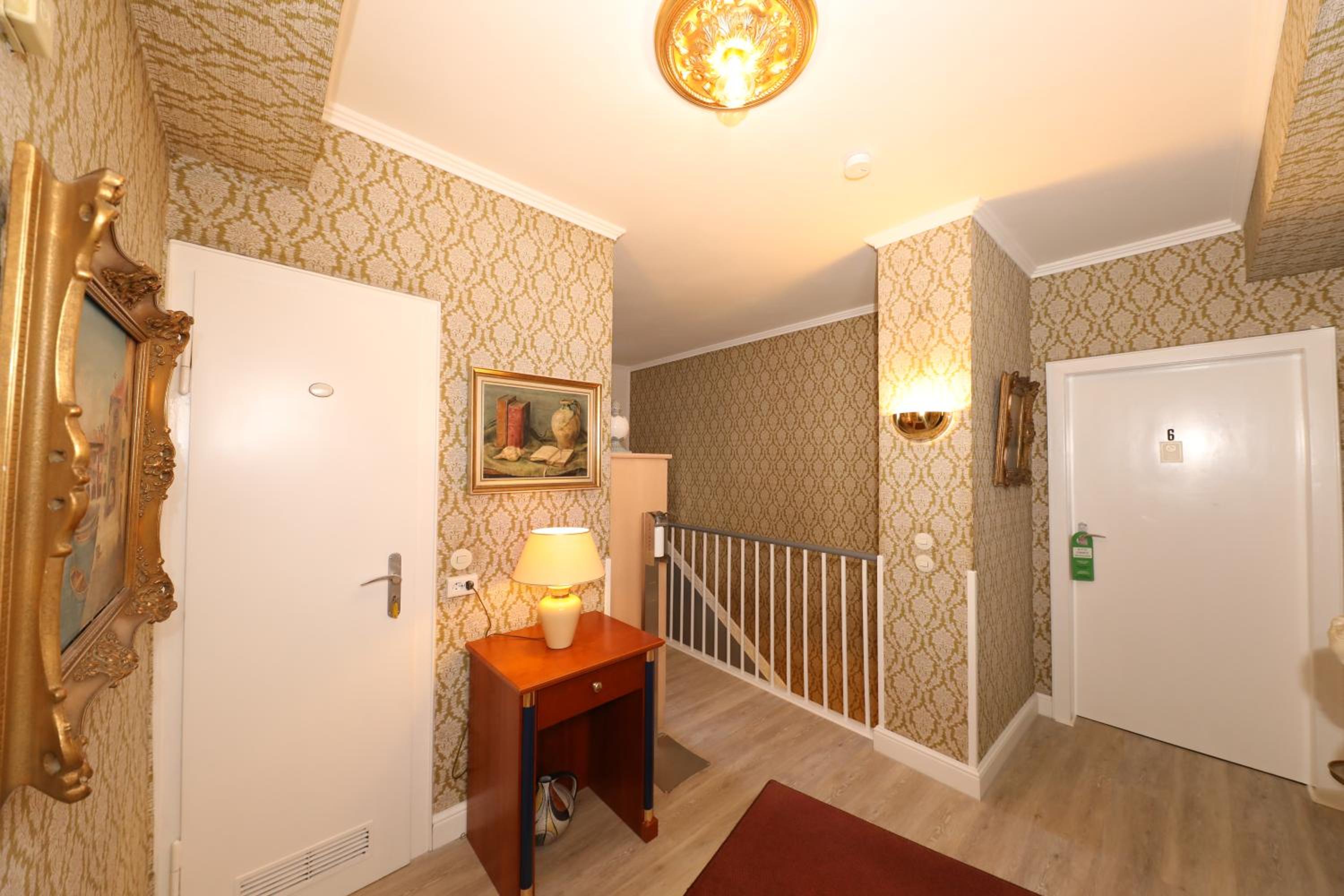 Das Hotel erscheint uns eher wie eine Pension und nicht wie ein Hotel. Das Badezimmer ist ohne Waschbecken. Das Waschbecken befindet sich im Schlafzimmer. Im Badezimmer gibt es eine große Dachluke, die stark verunreinigt war. Das Bett befindet sich an der Wand, so dass man über das Bettende aussteigen muss. Es befindet sich keine Steckdose und kein Nachtschränkchen auf der einen Bettseite. Der Zugang zum Zimmer verläuft über den Innenhof, der notdürftig begehbar ist. Die Treppen sind nicht beleuchtet und die Holzpaneel defekt. Es herrscht Sturzgefahr. Der Hinterhof ist unordentlich, verdreckt und in einem desolaten Zustand. Es liegen Tüten, Müllbeutel und allerlei Utensilien herum.