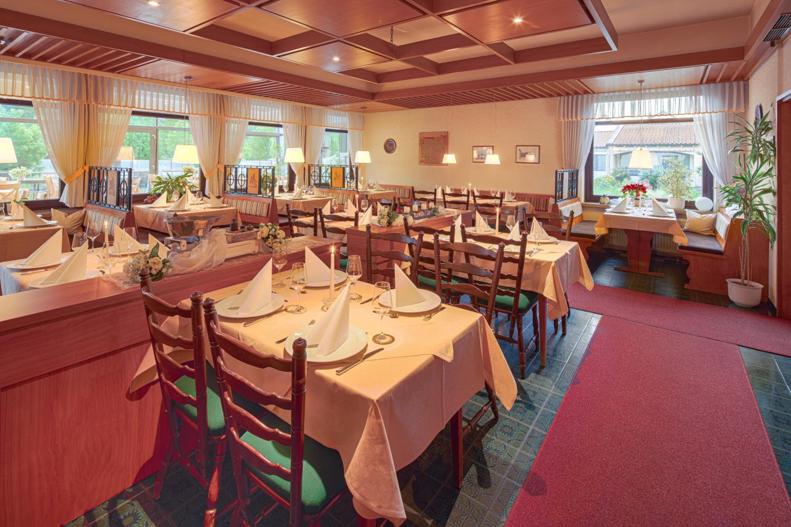 Indulge in regional delights at the on-site restaurant, specializing in venison dishes. After a satisfying meal, unwind in the garden under the shade of ancient chestnut trees or challenge your companions to a fun game at the hotel's skittle alley.
