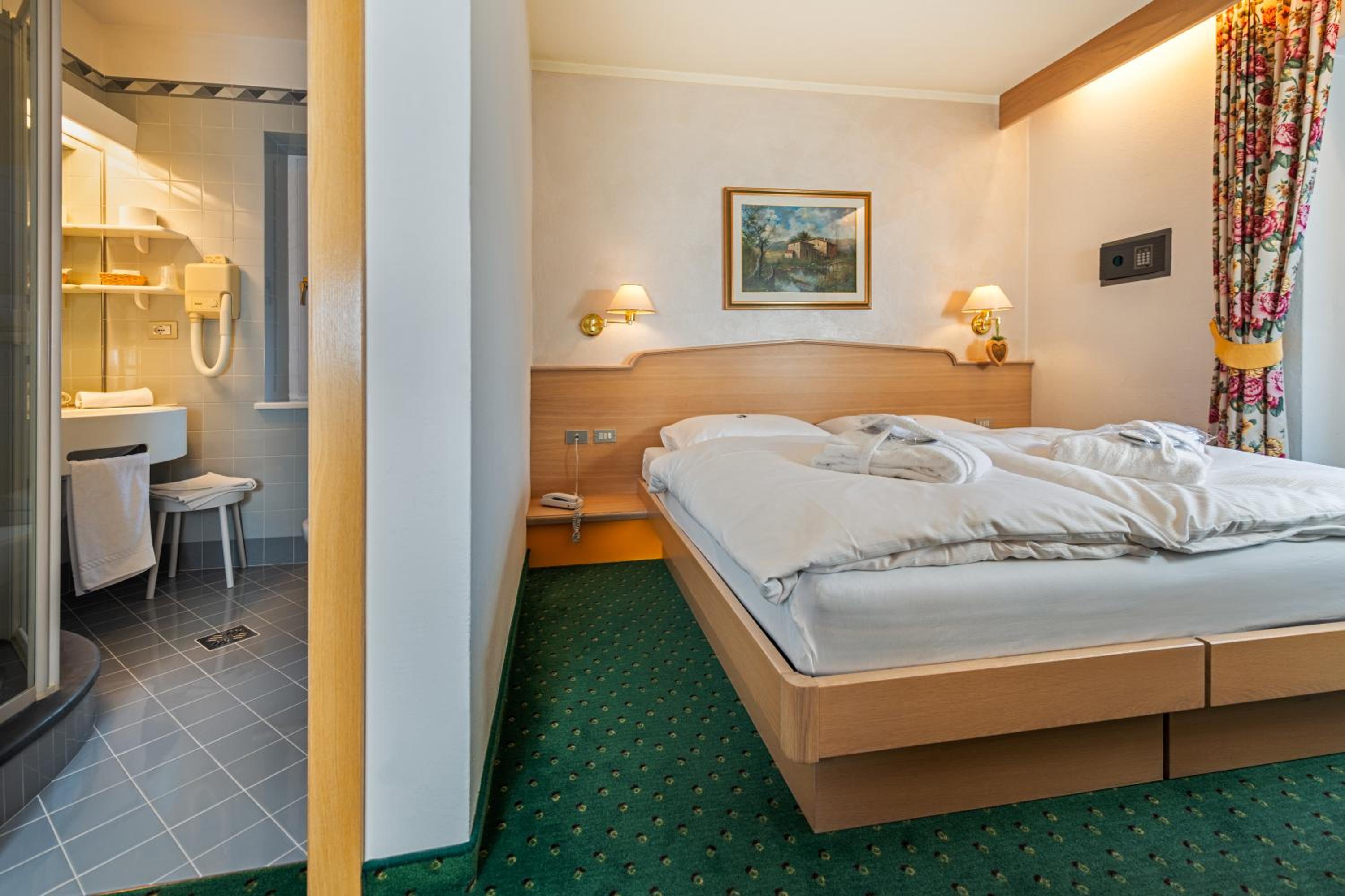 Stanza pulita e delle giuste dimensioni, personale gentile e accogliente. È presente una fermata dello skibus proprio di fronte all'hotel per chi non si vuole spostare in macchina