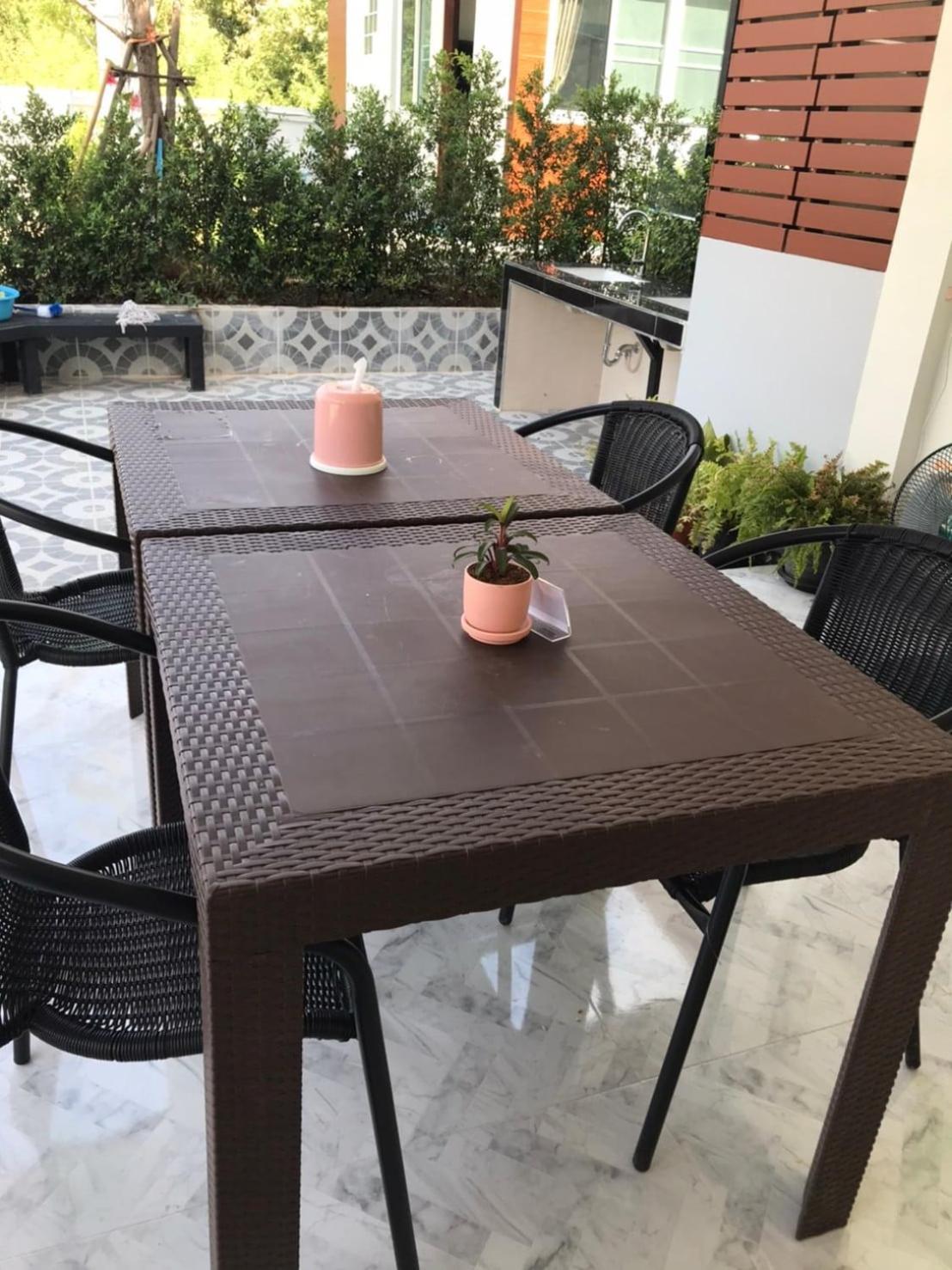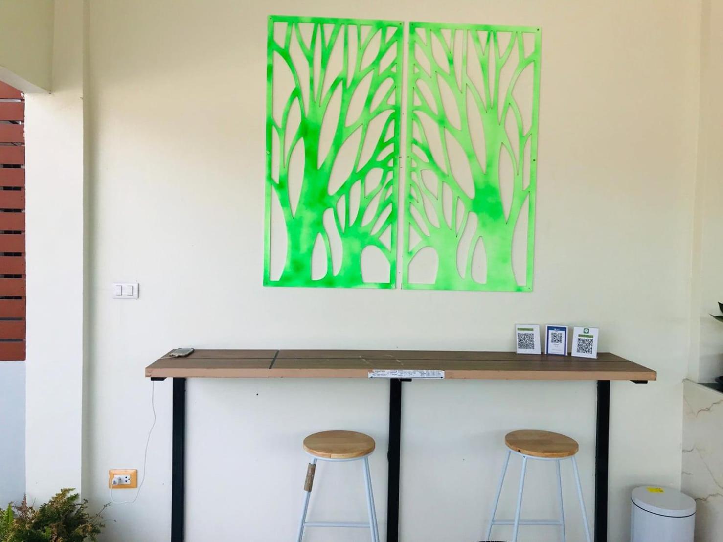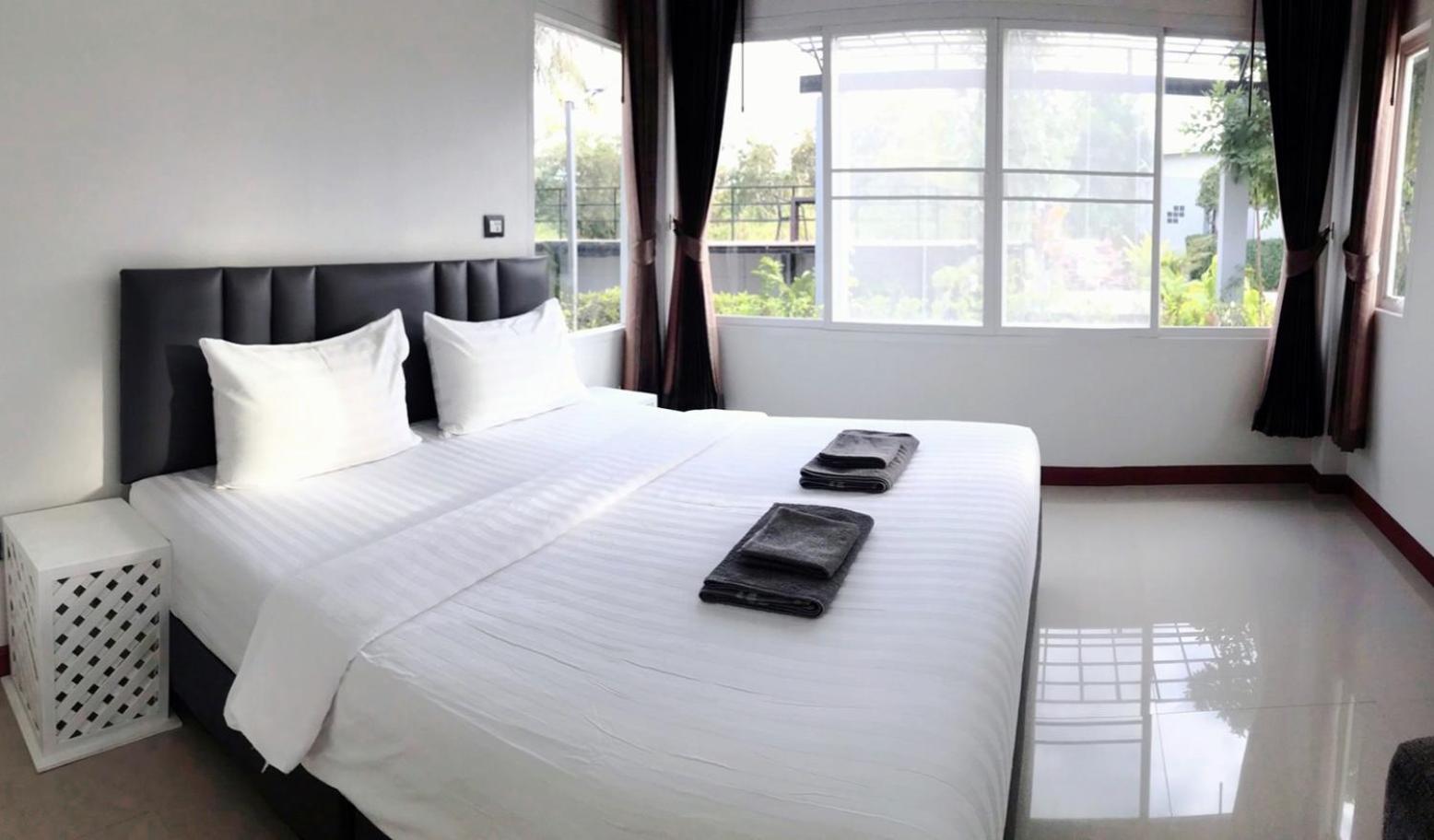 Self check in no human. The phone person told how to obtain a key to the villa to my thai wife. The person could not direct which villa location only room number which is on key. The place is fairly dark, with no signs to which villa identification number. Walk to door look with phone light to identify. Light is adequate when you turn on lights to the villa . There are umbrellas for use. The next morning, there was no hot breakfast that was to be included. There were crackers and good coffee. 1 worker we see on the floor above would not acknowledge English or thai language. Another worker bumped into us as we were going to leave the key . My wife asked why no breakfast as was advertised on Booking.com ? Response was I am new employee 1st day . They have fabulous facilities if they put up directions of use or have a person to answer questions. The other couple had the same issues. That did not use the app. Simply lack of service ruined what would be Incredibly good stay. My wife is a retired accountant and a small business owner . Intelligent enough to communicate with in English or Native Thai language. The place was very clean .comfortable facilities. It's just unpleasant with a lack of communication. Gate entrance has remote control with key . Very secure after dark. Exceeded expectations and also destroyed the pleasant environment. It is very confusing how to rate this place. So good and different
