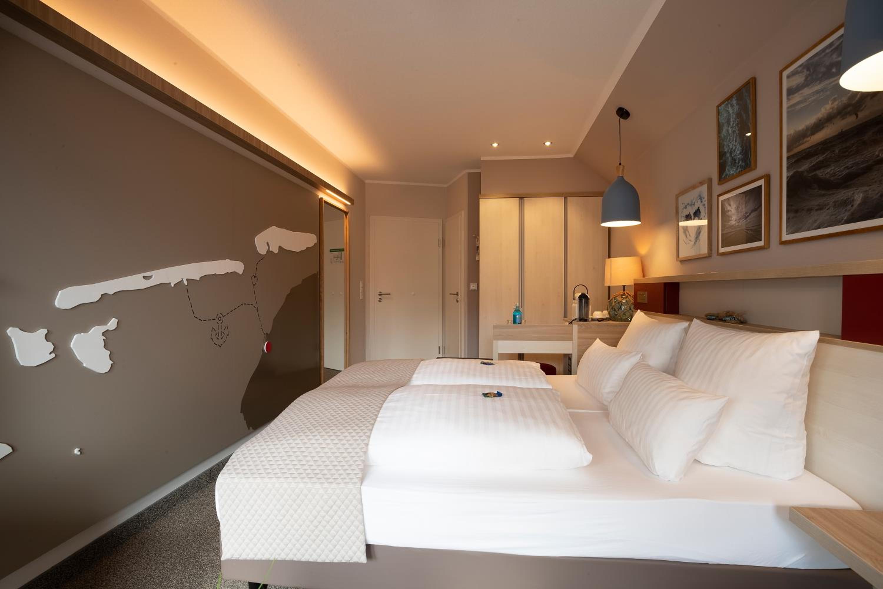 Wunderschön gelegenes Hotel direkt am Deich, mit einer Ausstattung die viel Liebe zum Detail erkennen lässt. Die Mitarbeiter sind sehr aufmerksam und unterstützend. Das Frühstücksbuffet lässt keine Wünsche offen und bietet eine sehr große Auswahl. Die Zubuchung von HP ist auch vor Ort möglich. Die Speisekarte ist raffiniert und ansprechend, mit saisonalen und regionalen Produkten. Das gebuchte Zimmer entsprach exakt den Fotos, der seitlich gelegene Balkon erlaubte einen direkten Blick auf den Deich und war mit einem Tischchen und zwei bequemen Hochlehnern ausgestattet. Der Spabereich mit Schwimmbad und Sauna lädt zum Entspannen ein, Handtücher sind dort vorhanden. Kurzum, es war ein schöner und angenehmer Aufenthalt!