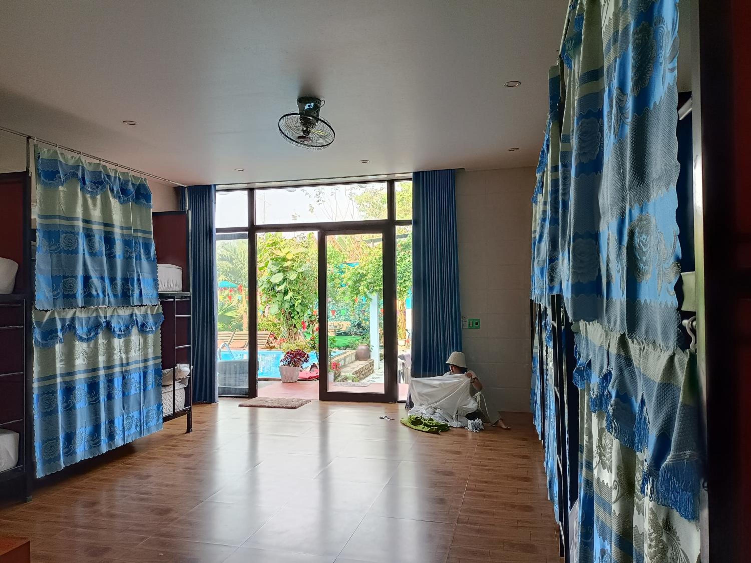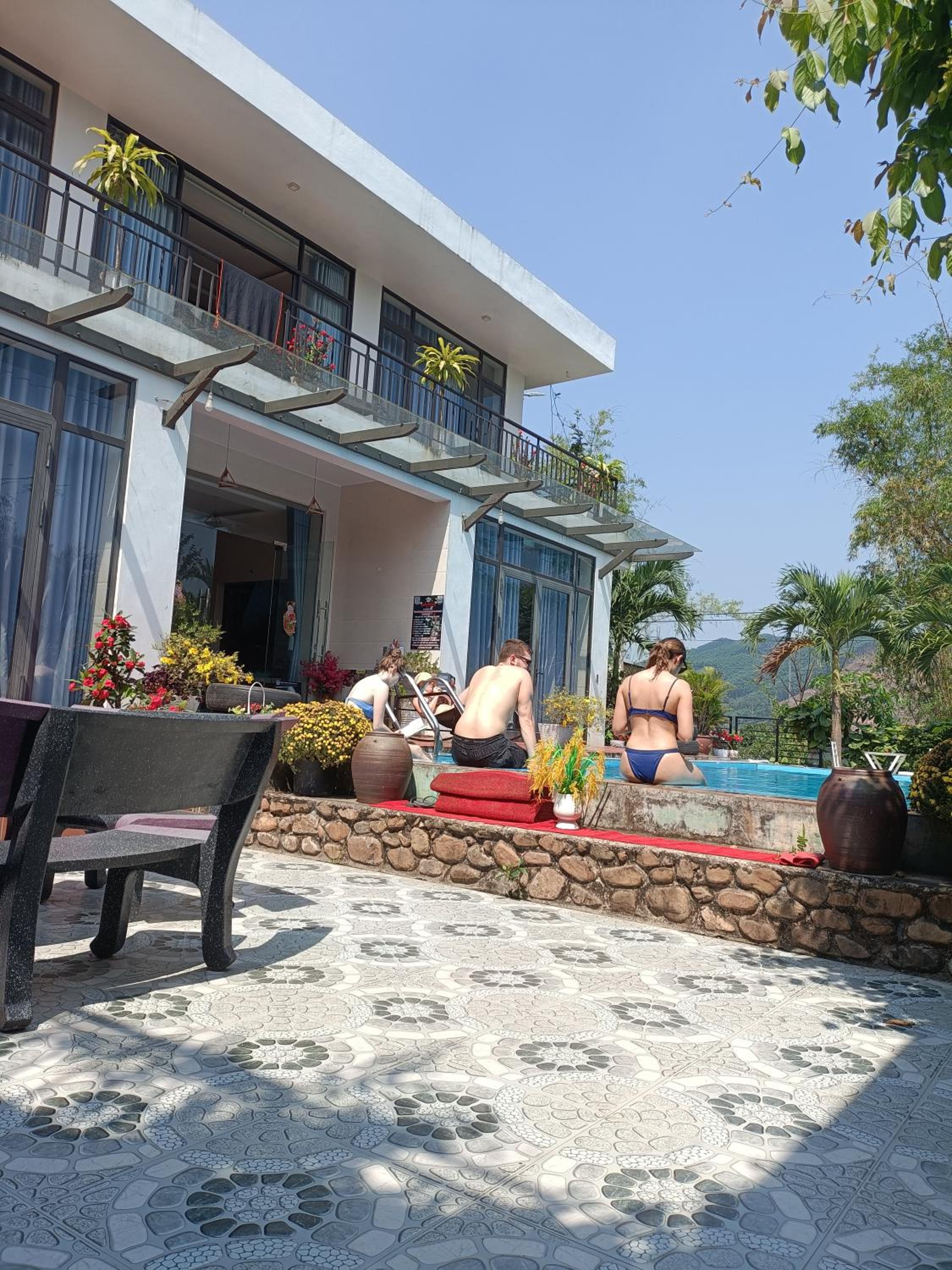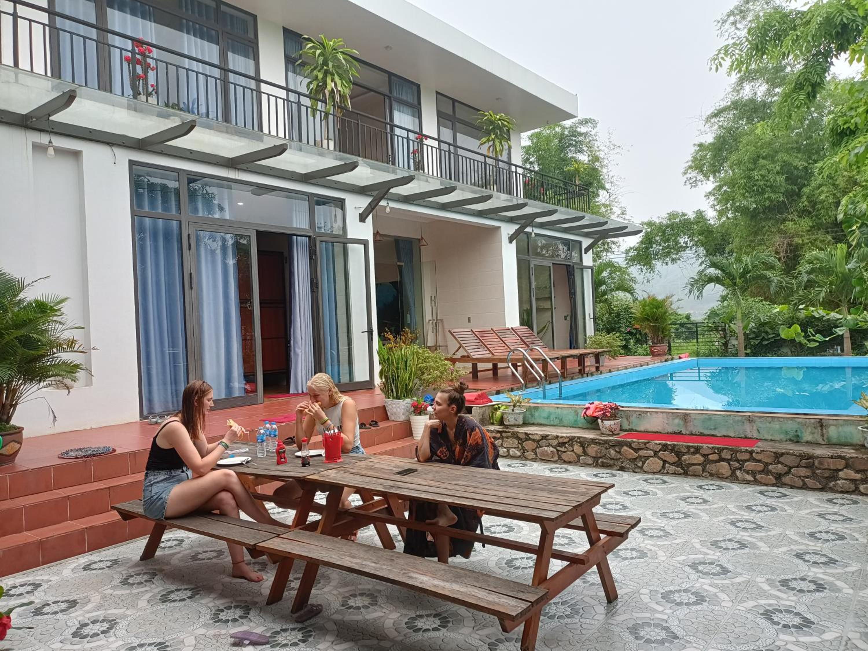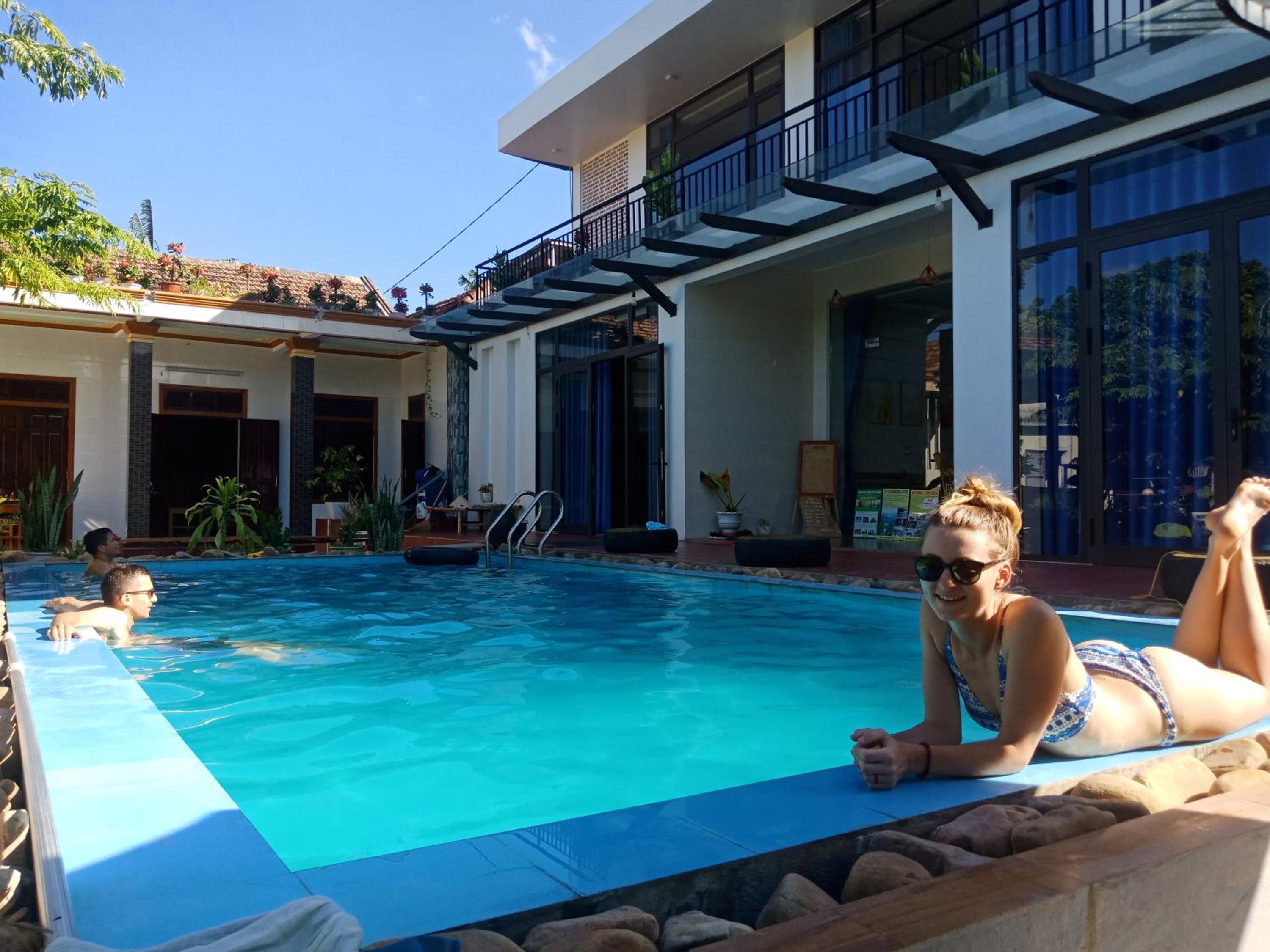 The host and his family were so lovely! We were the only guests in the homestay as it was Luna new year and usually he would close but we booked in advance so it was just us and we were so welcomed! We had beer with the host and his family some traditional Vietnamese foods and sat and chatted with them and watched the fireworks at midnight! The room was large and clean and good value for money beautiful pool area with lots of places to chill!