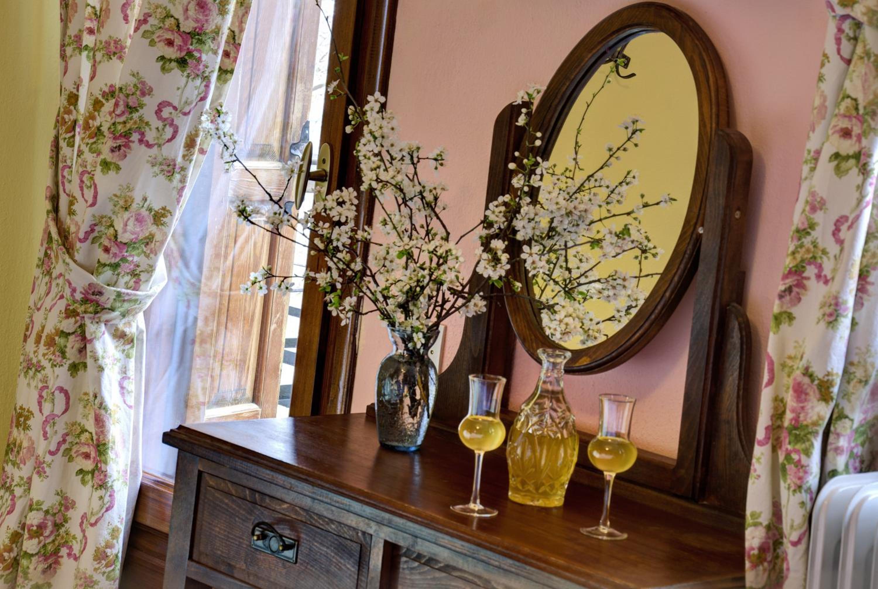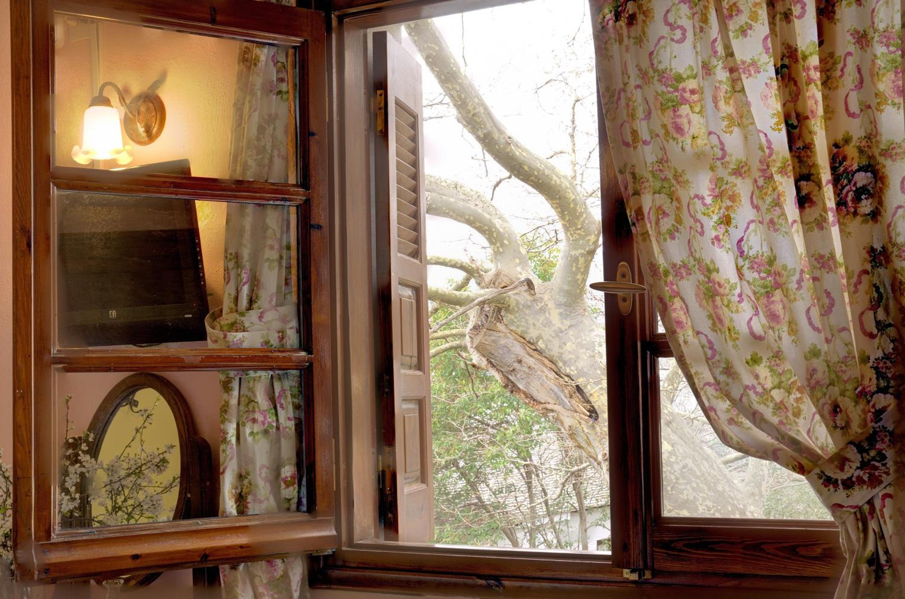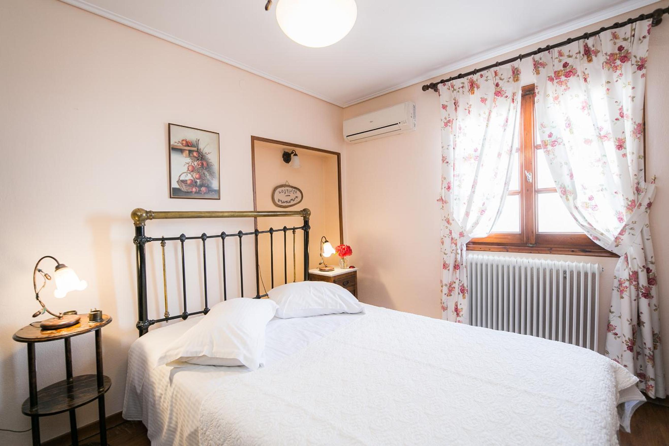 Όμορφο,παραδοσιακό,κλασσικό δωμάτιο με τζάκι και θέα στην κεντρική πλατειά του χωριού.