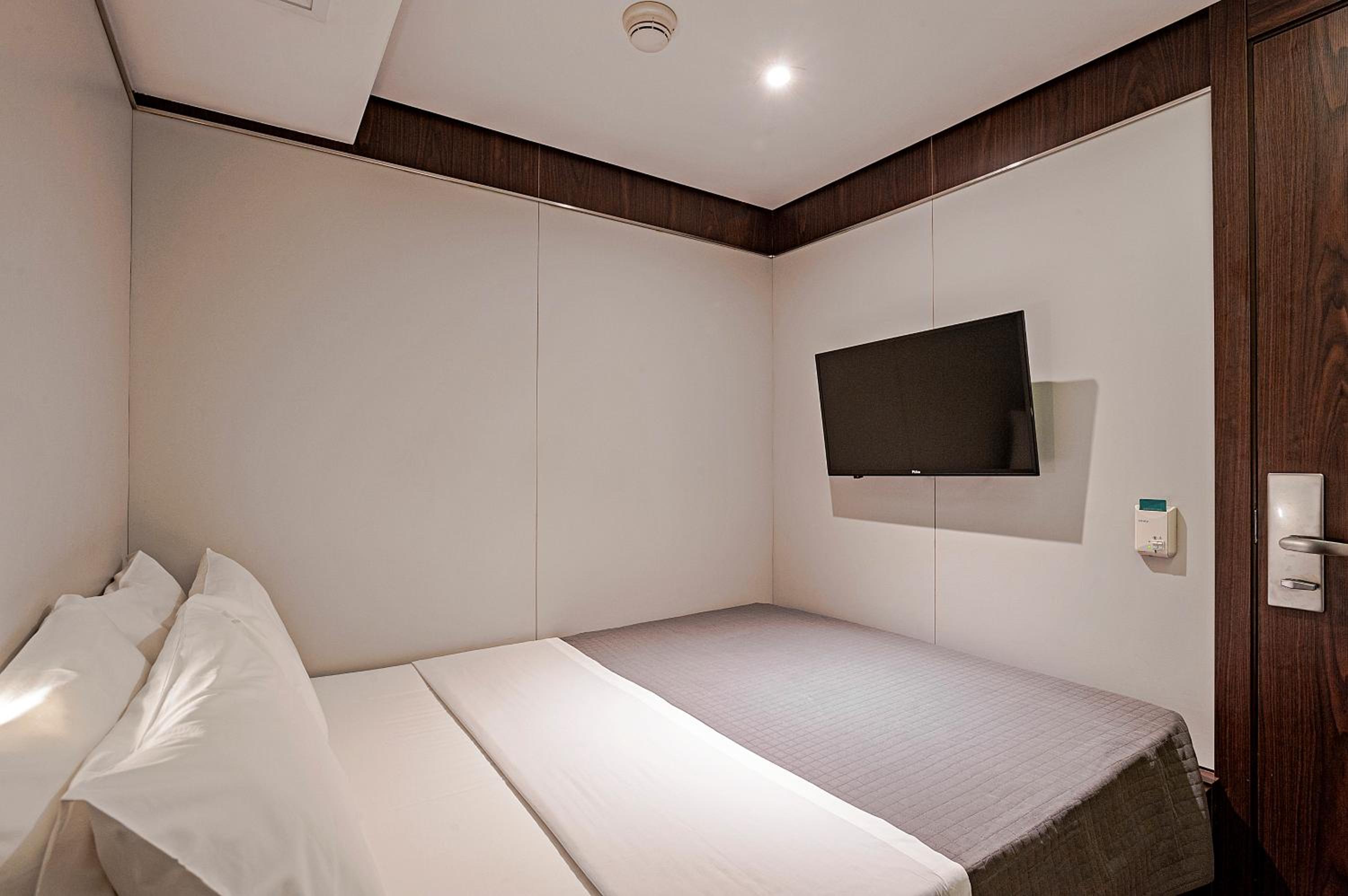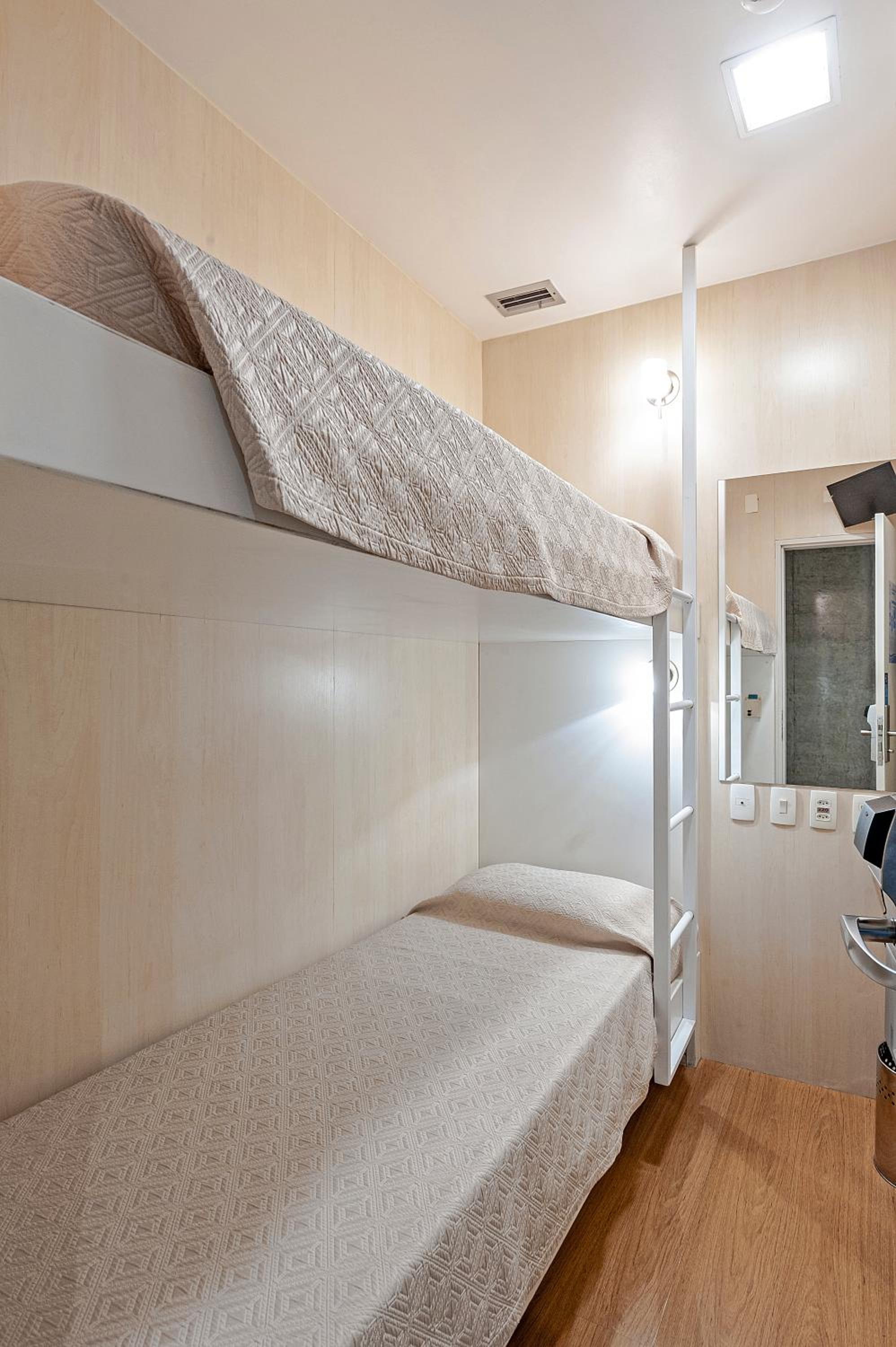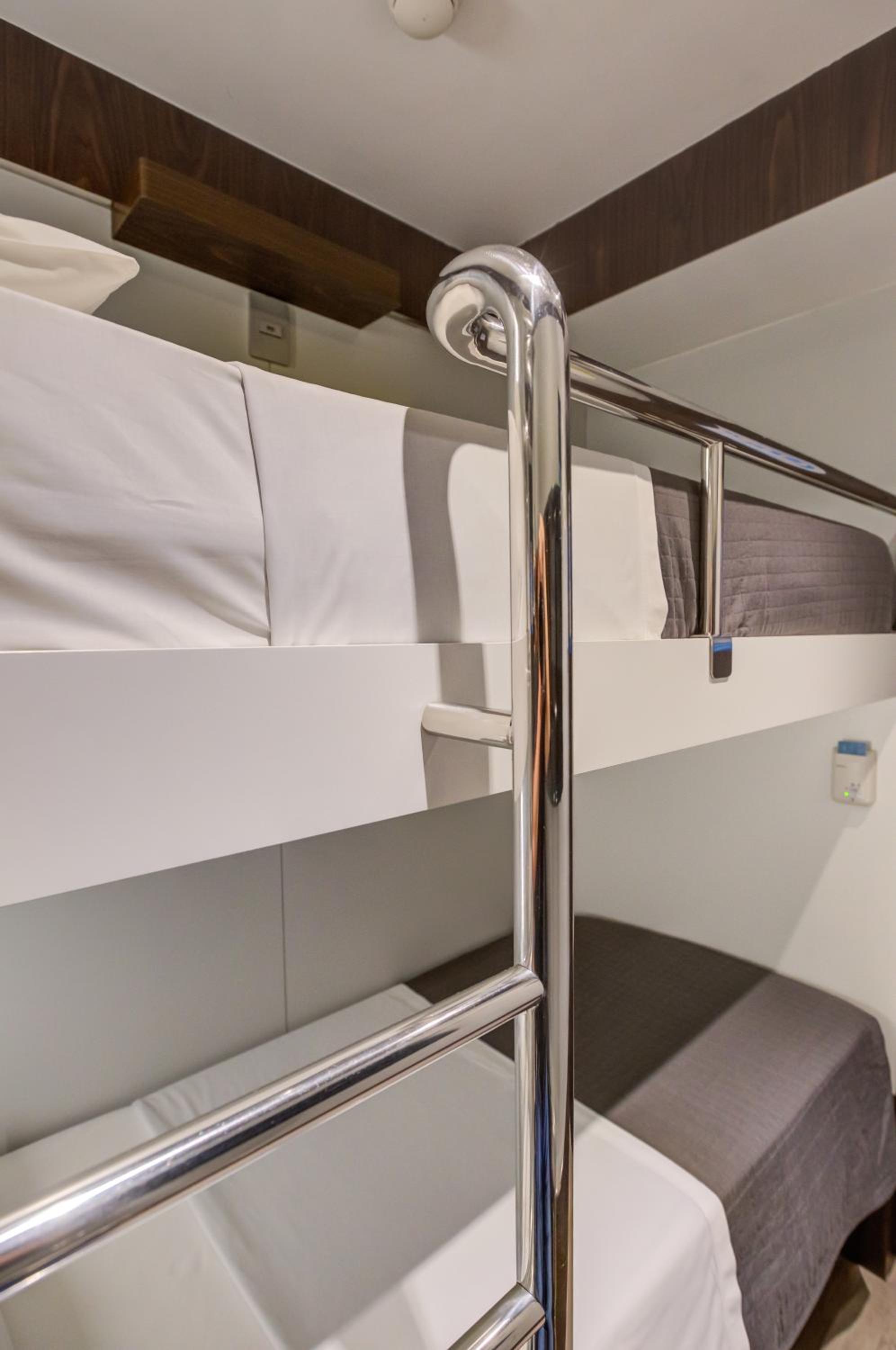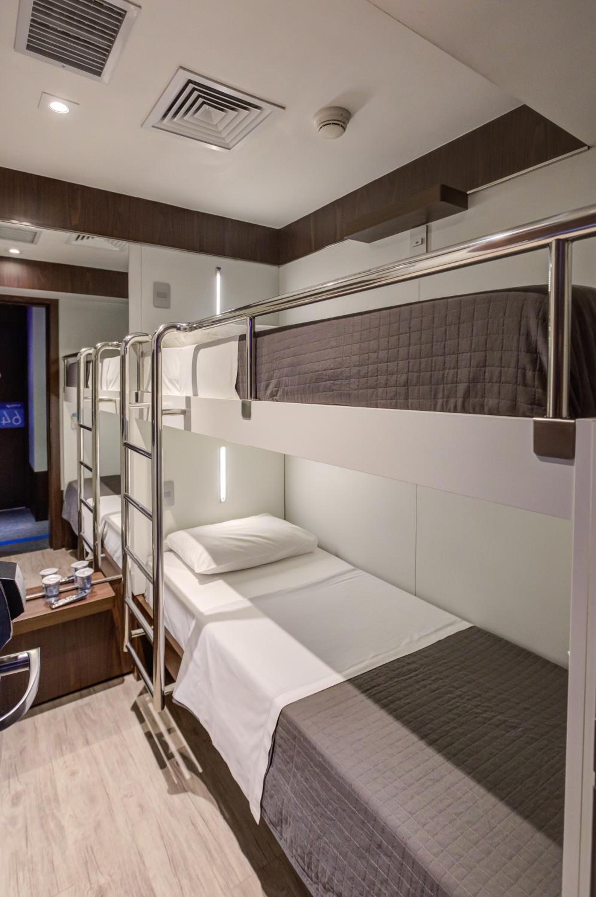 The hotel provides cozy rooms with bunk beds, ideal for a short and comfortable stay. Each room, approximately 4 m² in size, is equipped with air conditioning, telephone, and free internet connection. Guests can also enjoy the convenience of a shared bathroom, cleaned after every use.
