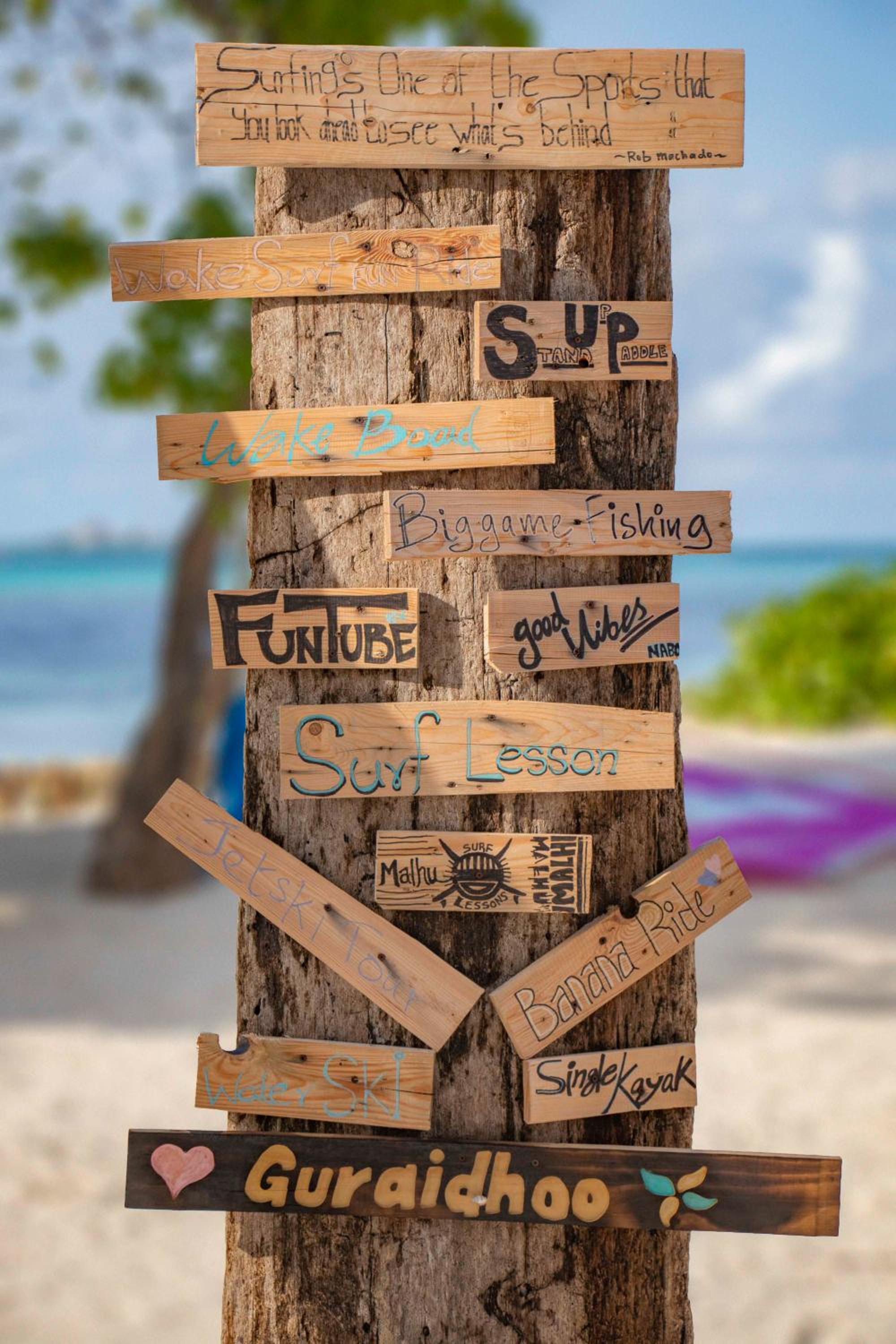 Explore the vibrant surroundings with free bike rentals or relax at the terrace overlooking the scenic views. For leisure, engage in a game of billiards or windsurf at Guraidhoo Beach just steps away.