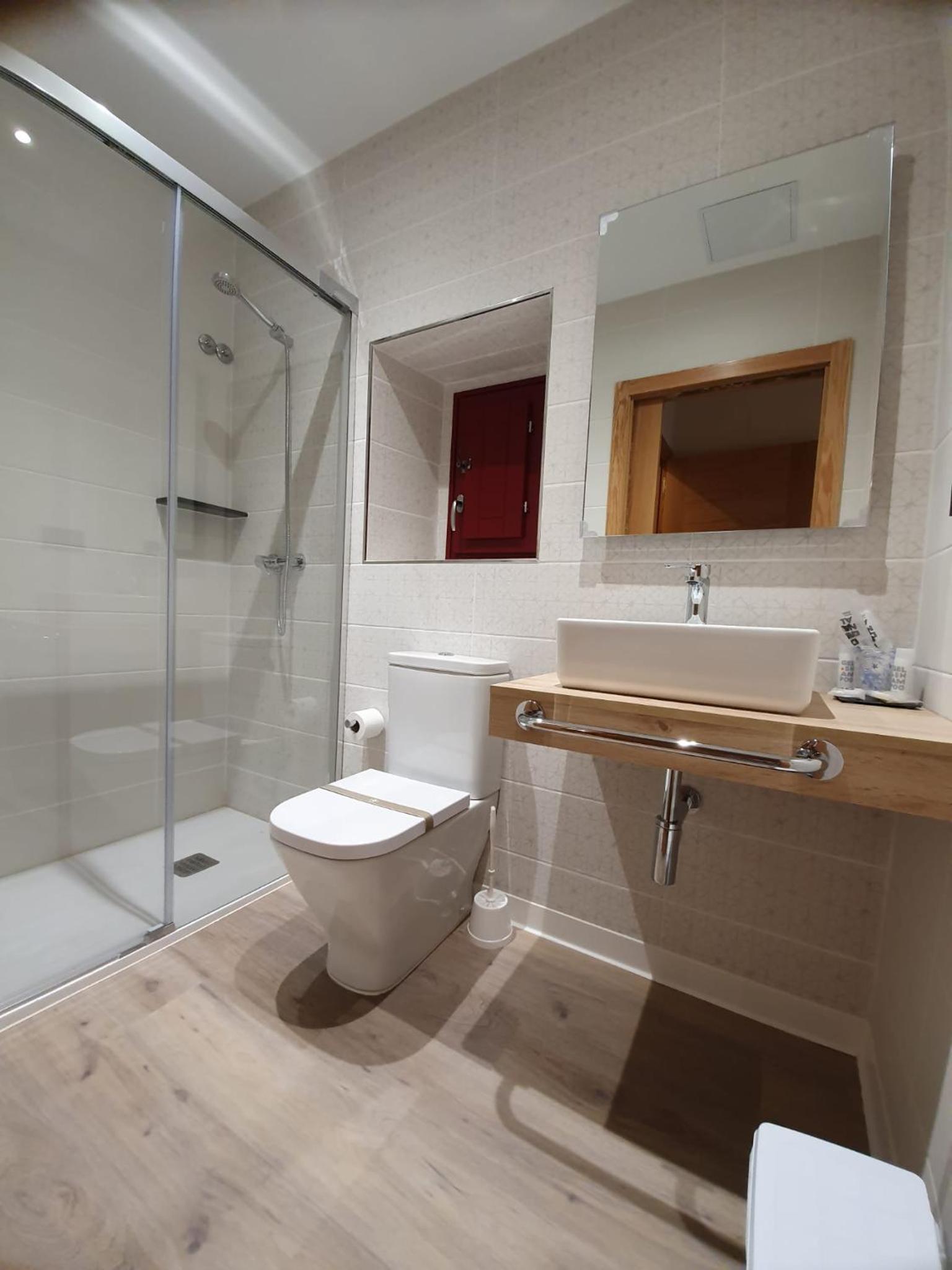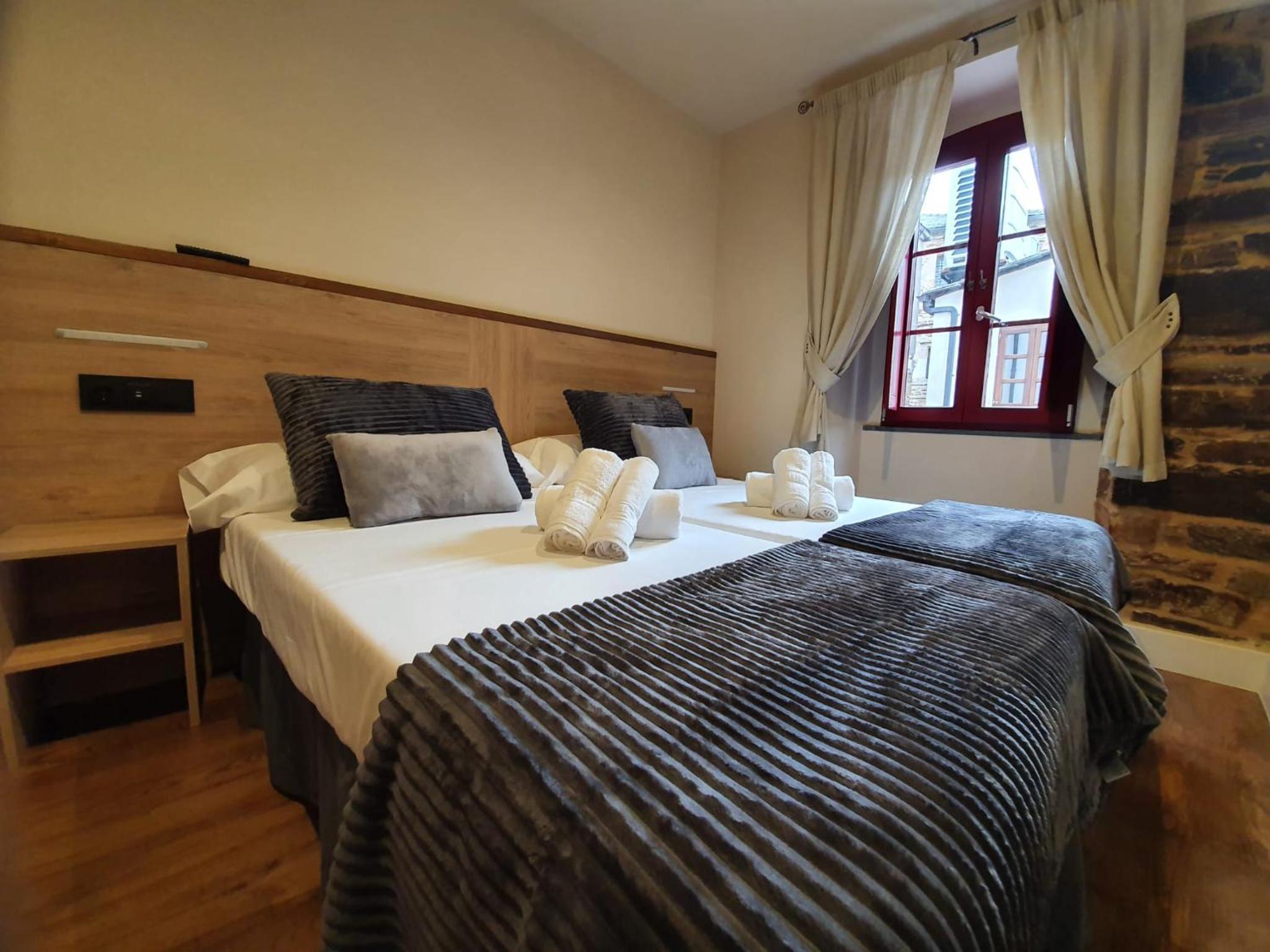 El hostal es una opción muy recomendable para alojarse en la zona. Está cuidadosamente remodelado, conservando elementos antiguos que le aportan mucho encanto, pero con todas las comodidades actuales. Las habitaciones están prácticamente nuevas, muy limpias y decoradas con un estilo elegante y acogedor. Las camas son especialmente cómodas, lo que garantiza un buen descanso, y el baño, amplio, reformado y también impecable, suma muchos puntos a la estancia. En nuestro caso, cumplía perfectamente con todo lo que necesitábamos y con una relación calidad-precio excelente.