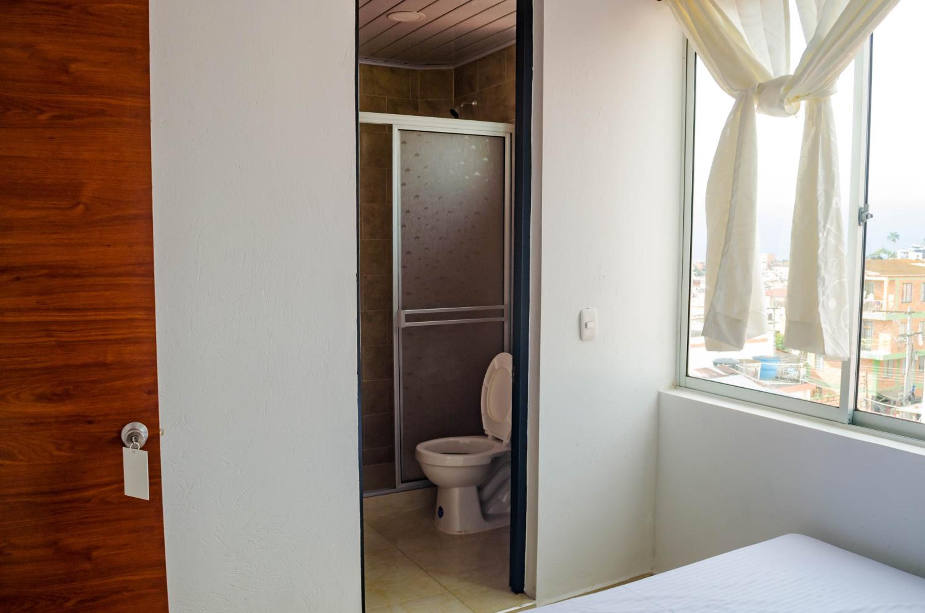 Luxurious Accommodation: Hotel Central Fusa in Fusagasuga offers elegant rooms with modern amenities including a flat-screen TV, private bathroom, and a city view patio.