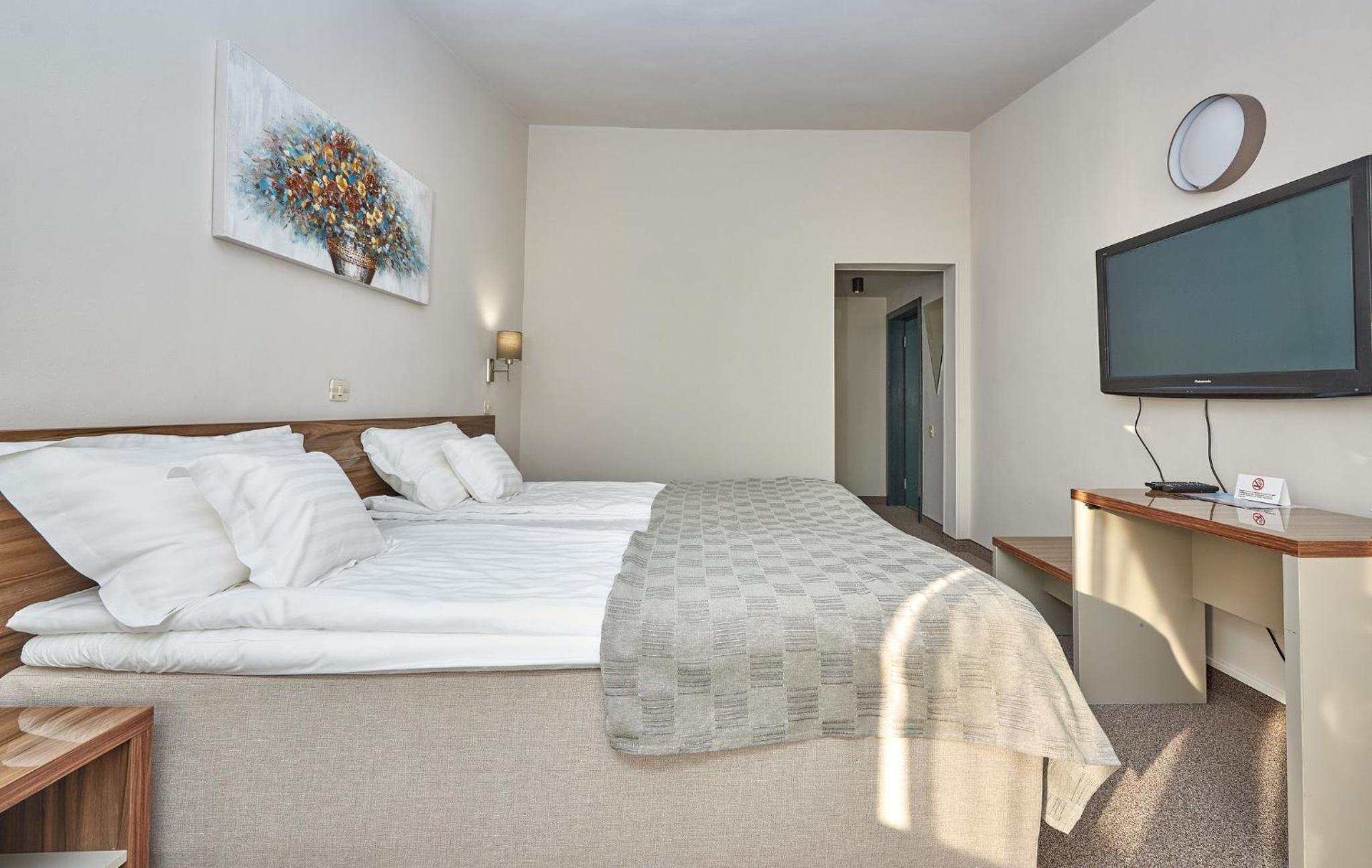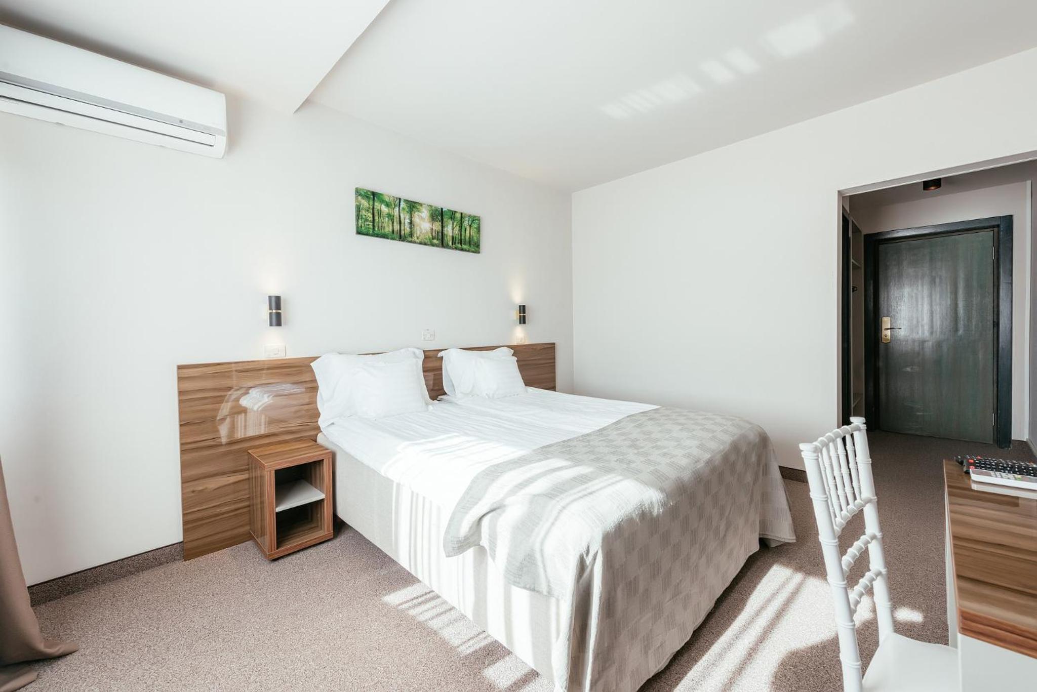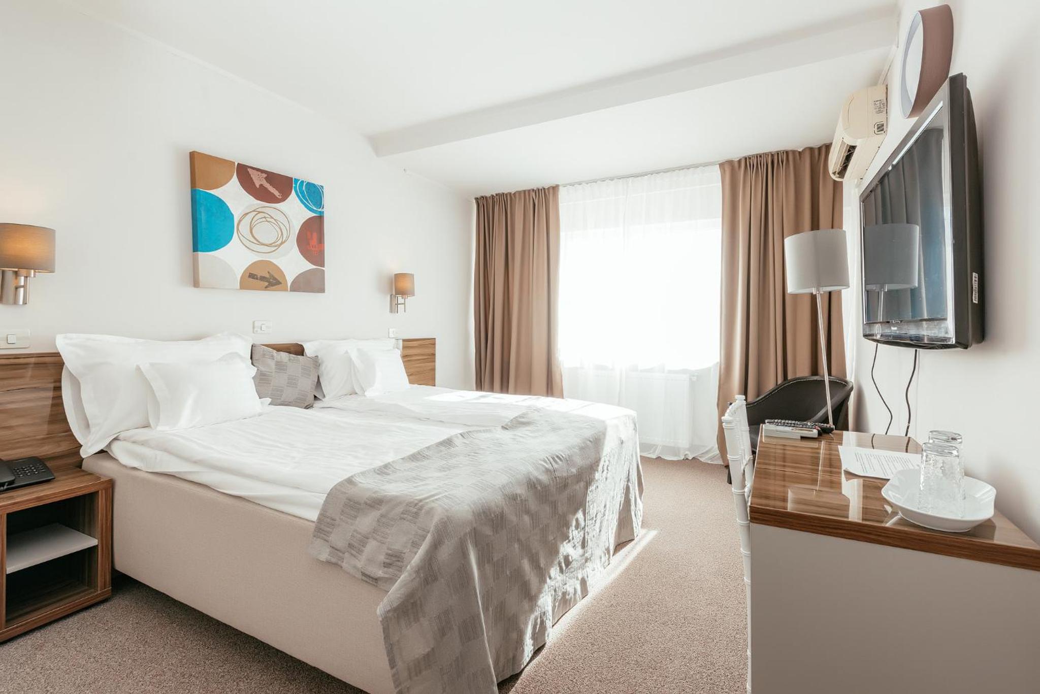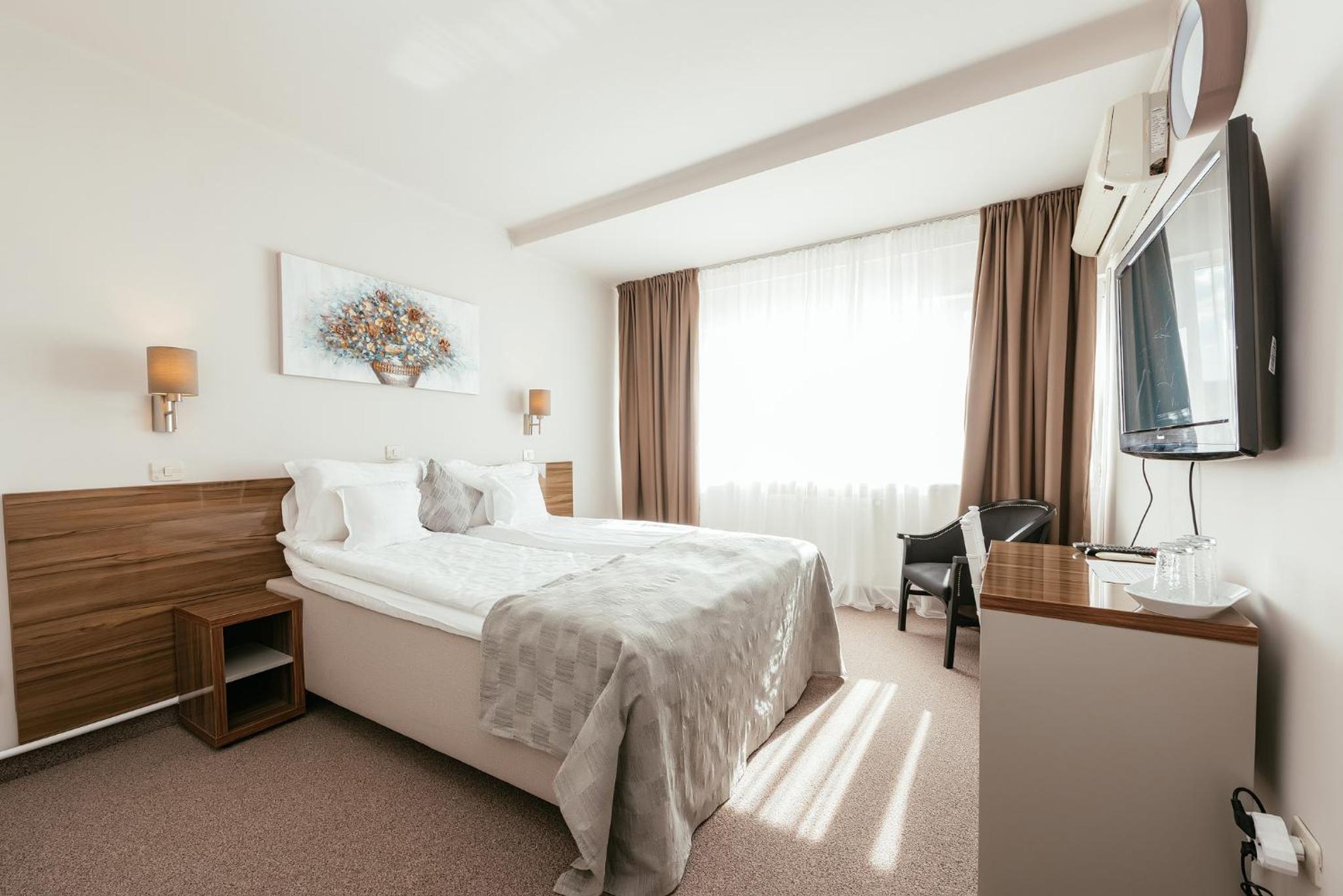 Am revenit la acest hotel dupa cativa ani si am fost surprinsi placut, au fost aduse imbunatatiri, amplasarea hotelului este excelenta, gradina si piscina frumoase, bine intretinute, camerele spatioase si confortabile, parcarea mare, accesul foarte usor.