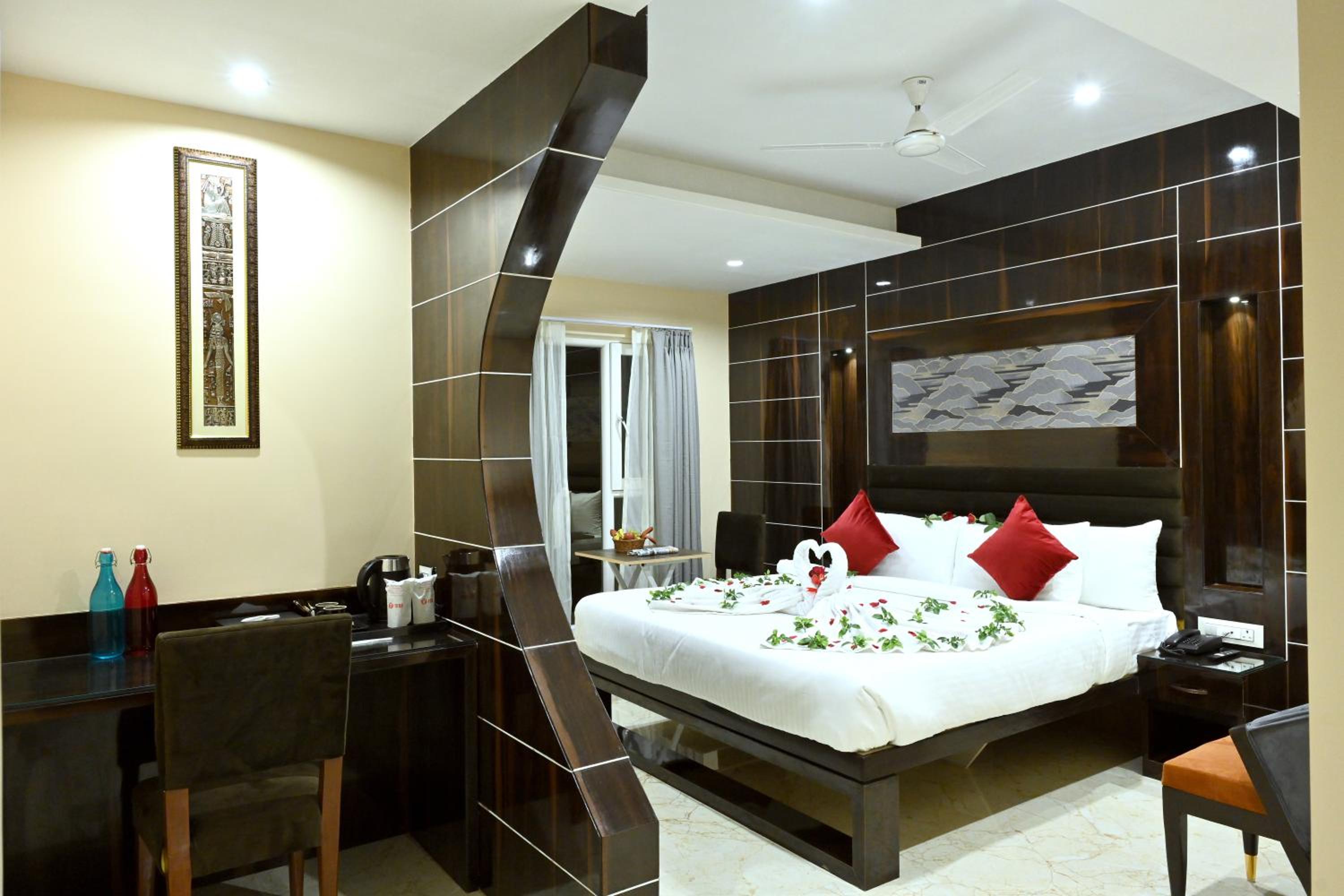 Enjoy the convenience of complimentary breakfast with a variety of buffet, continental, and vegetarian options. Benefit from free WiFi, room service, and secure parking during your stay.