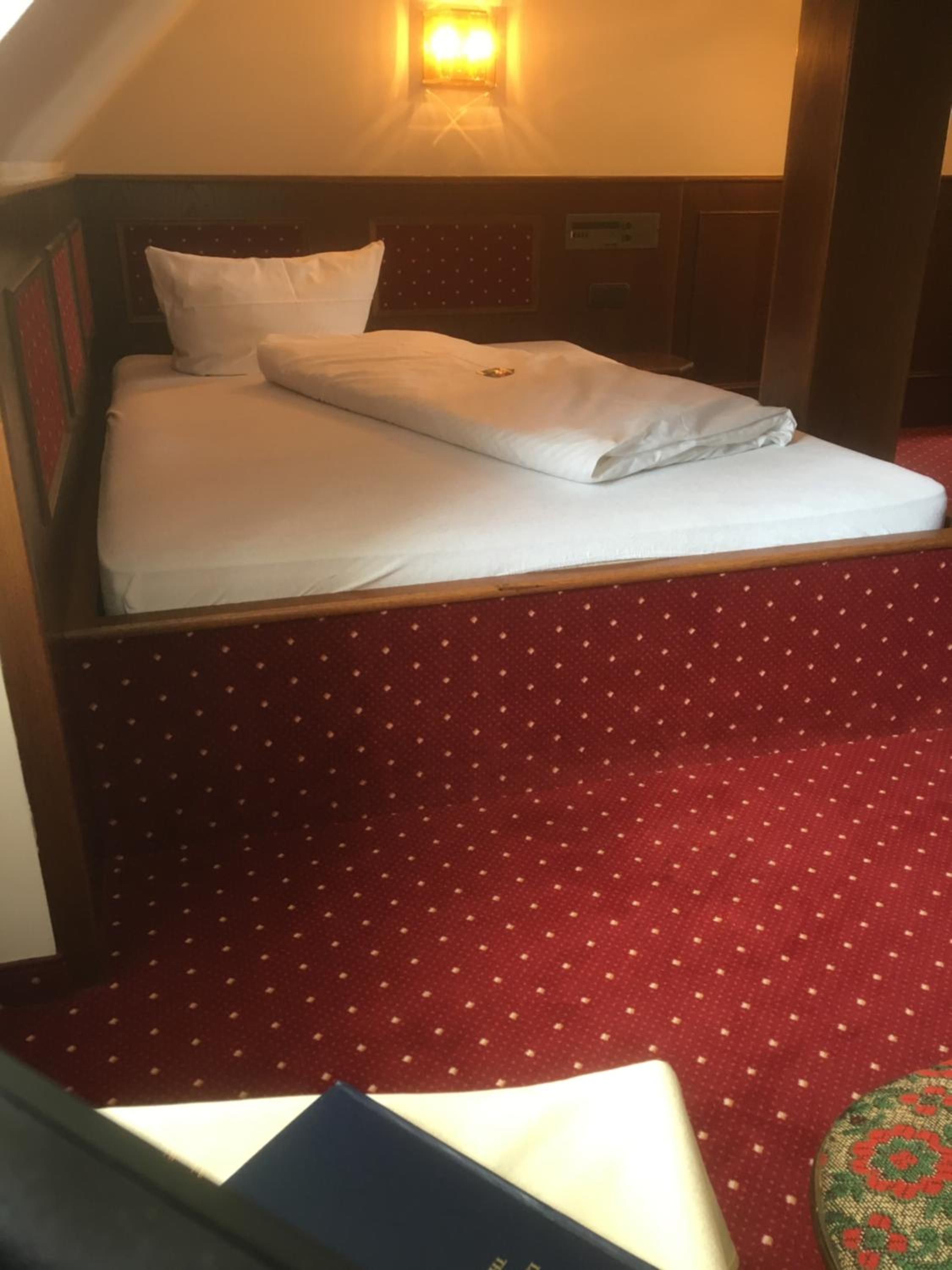 Die Zimmer sind extrem klein. Man musste aus dem Bett krabbeln, weil eine Seite an einer Wand. Für eine Person geeignet, aber als DZ? Dann hatten unsere Freunde ein Zimmer über der Metzgerei und hatten mit der Geruchsbelästigung zu kämpfen. Ein Frühstück wurde nicht angeboten, aber okay. Die Dusche in unserem Zimmer war über Stufen zu erreichen und war für ältere Personen ein Unding. Das Niveau war ein ein wenig wie in einer JH. Der Gasthof war am Wochenende nicht in Betrieb. Einziger Lichtblick: In der Nähe ein gutes Lokal.