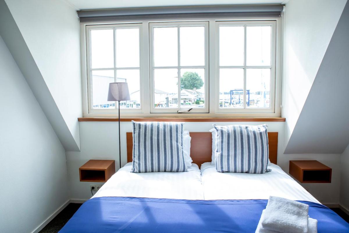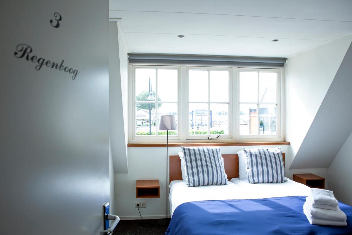 De kamer (nummer 5) was bedoeld voor kinderen. Die kun je niet verhuren aan 2 volwassen mensen. Bed in de hoek. Gedatteerd wasmeubeltje in de kamer. Geen kast en nergens haakjes om je jas op te hangen helaas. Toch een kleine moeite. Geen uitzicht op de Loosdrechtse plassen, maar bij de buren naar binnen kijken.