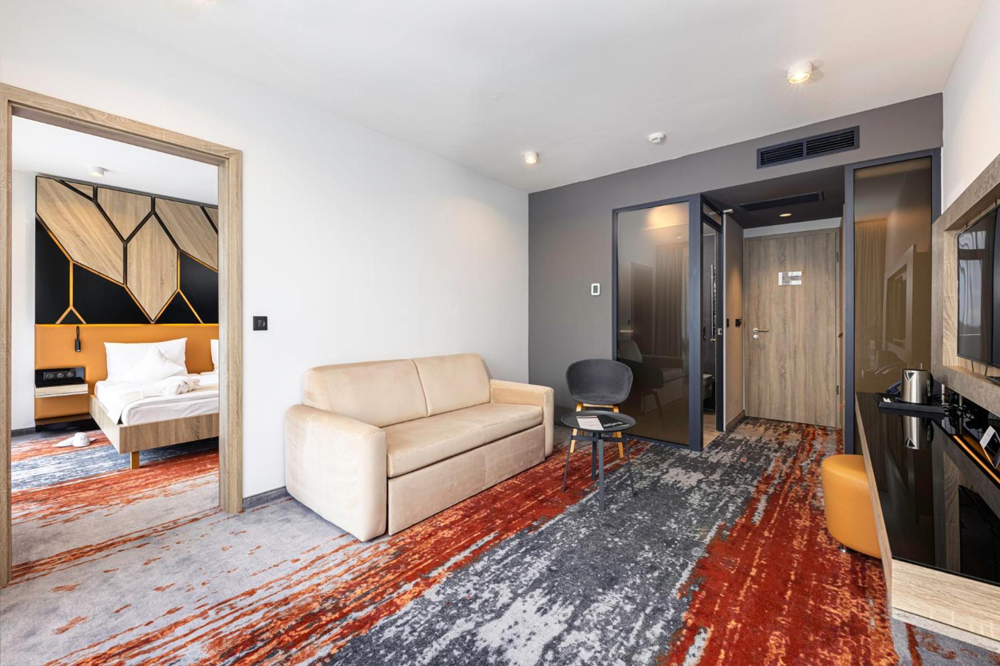 Unwind in style at the hotel's wellness center with a hot tub, saunas, and a children's pool. Stay active at the modern fitness center or take a refreshing dip in the seasonal outdoor pool with a sun terrace, perfect for leisurely days under the sun.