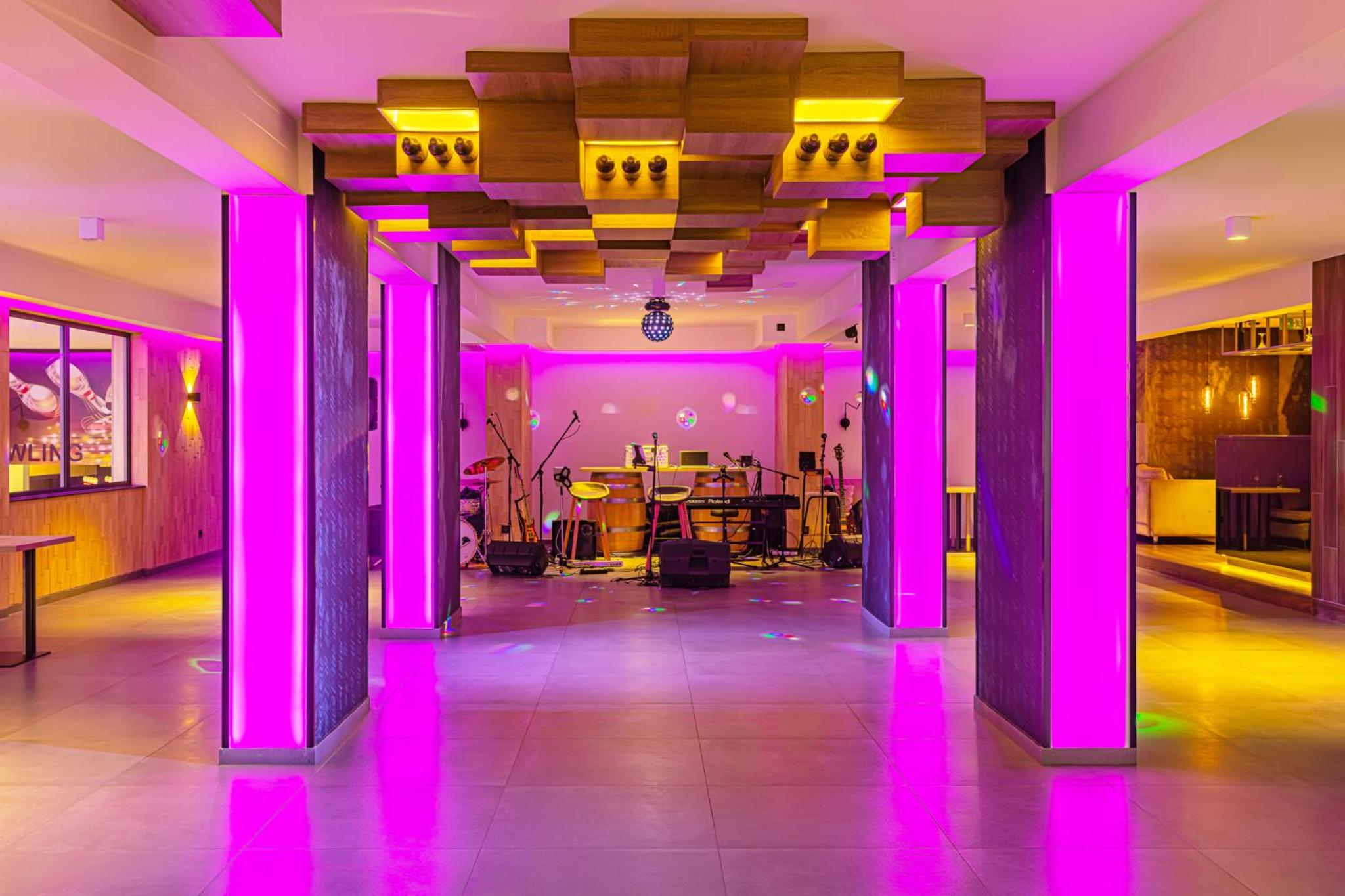 Indulge in a culinary journey at the on-site restaurant serving a fusion of international and local delicacies paired with an extensive wine selection. For a lively evening, head to the Bowling and wine bar for wine tasting, dance nights, and modern entertainment.