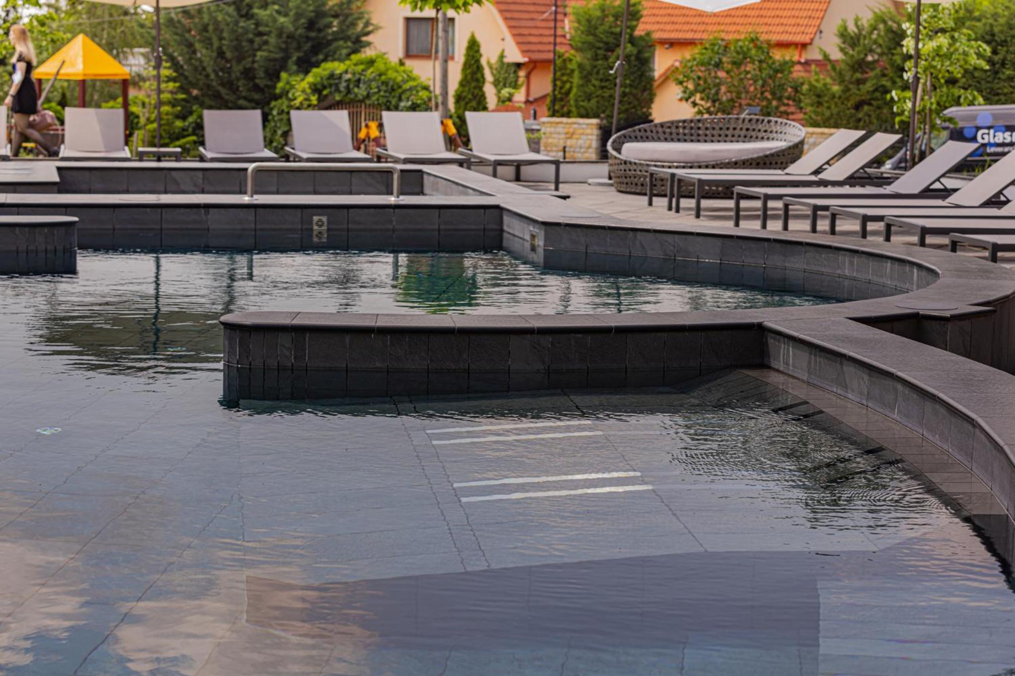 A belső medence hőmérséklete túl meleg volt, úszásra kevésbé alkalmas. Javasolt hőmérséklet: 28 C fok.
