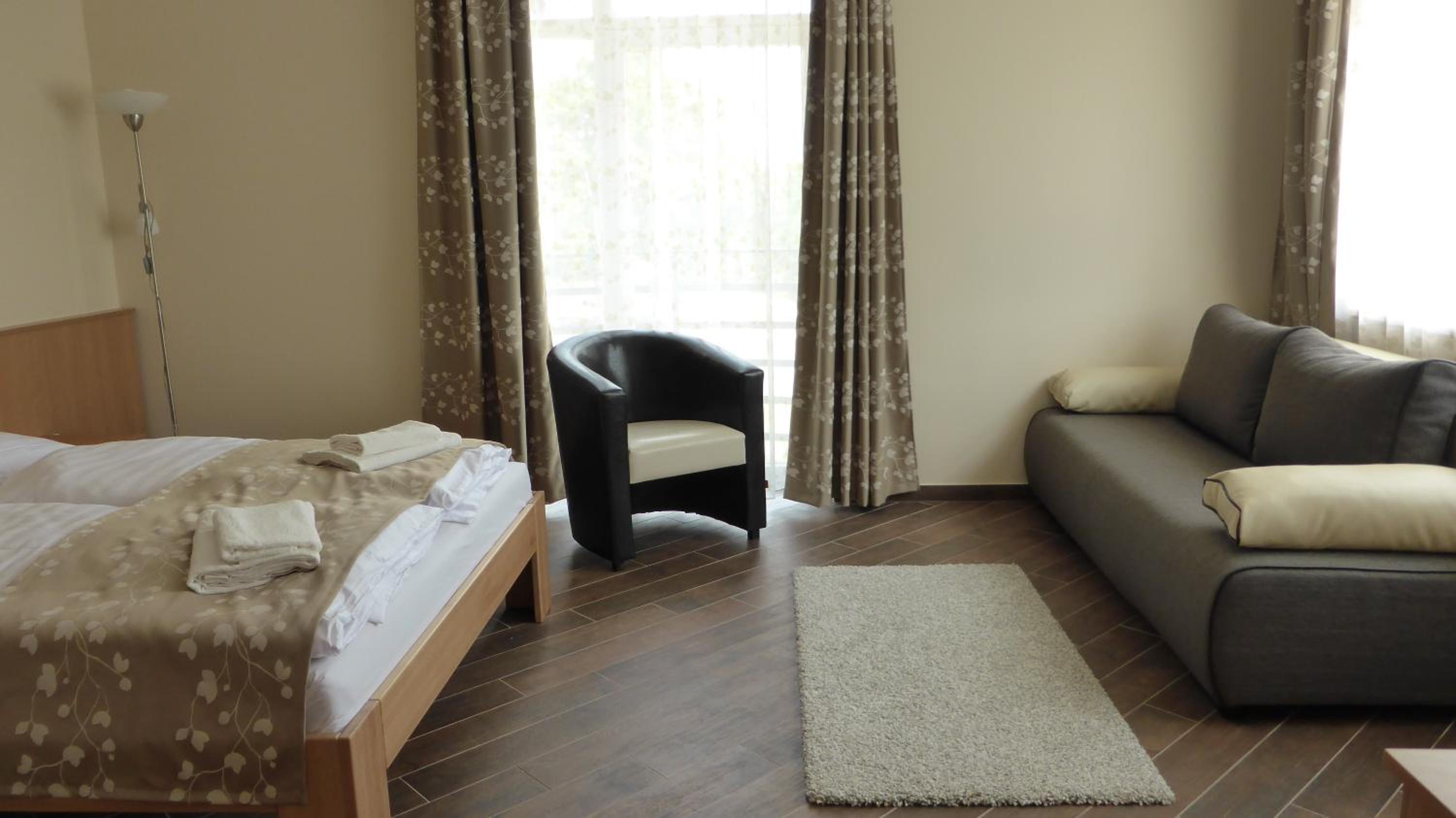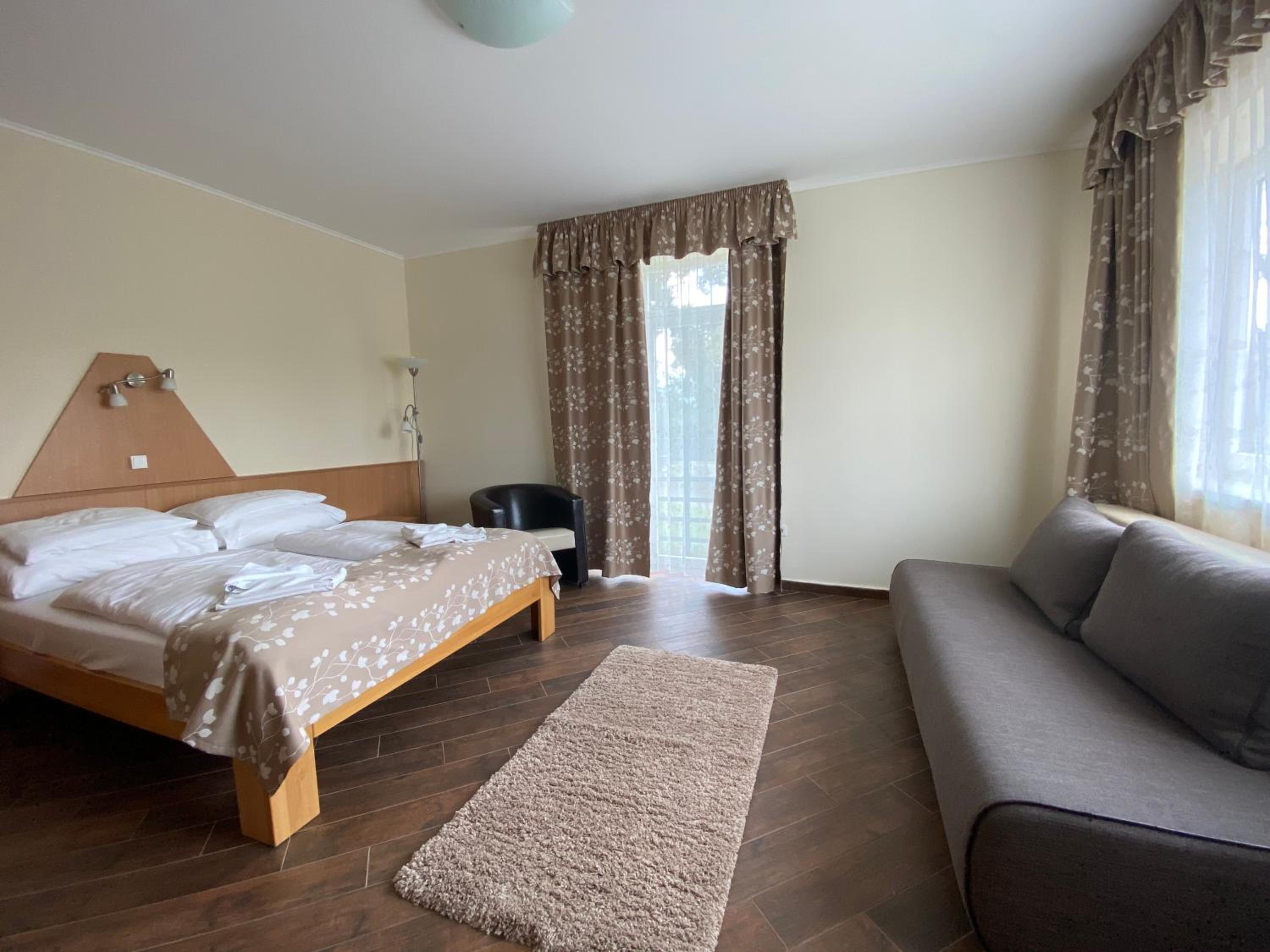 Sástó Hotel offers modern rooms equipped with top-notch amenities including air conditioning, flat-screen TVs, and comfortable sofa beds.