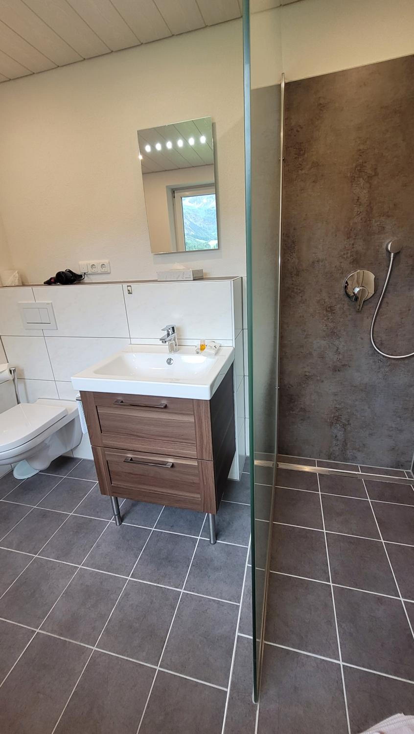 Ruime kamer met een goed bed en prima badkamer. Alles is super schoon. Het ontbijtbuffet is uitgebreid en zeer verzorgd. Vanuit de ontbijtruimte heb je een mooi uitzicht op het dorp en dal. De eigenaren zijn zeer vriendelijk en gastvrij. Absoluut aan te bevelen!