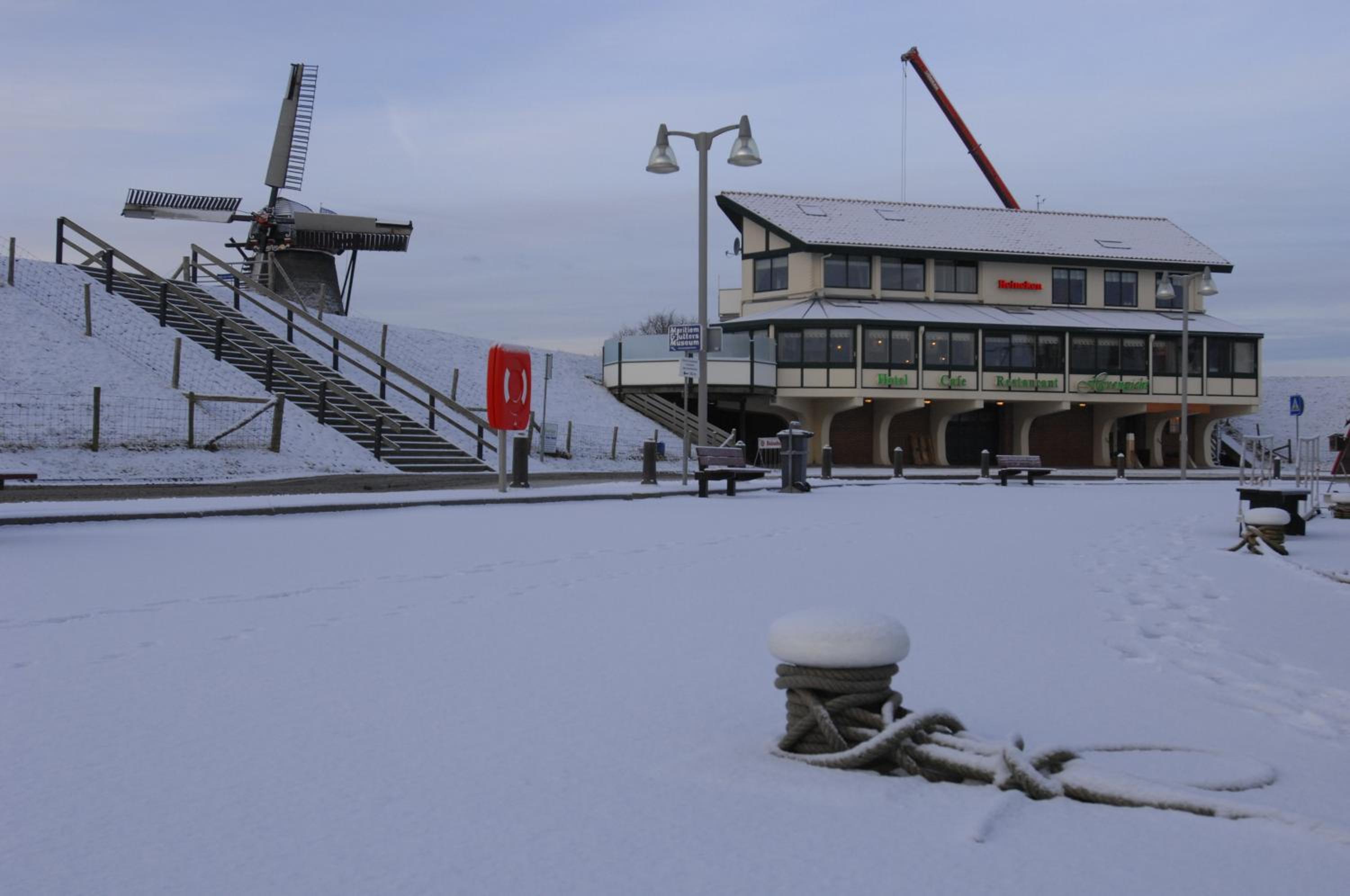 The location is perfect for fans of sailing ships - every day a new two or three-master showed up, which made for very interesting views from the room. And on the other side, where the balcony is, you can see the large windmill of the maritime museum, and on some days the mill is even in operation.
