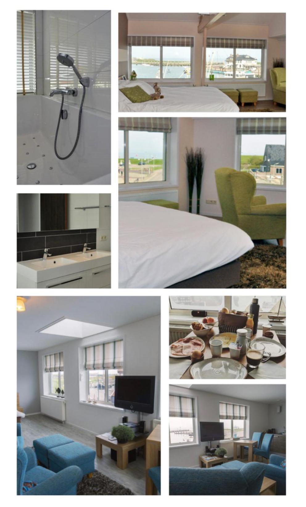 We had a perfect stay at Hotel Havenzicht. The room was more of an apartment, with hallway, separate toilet and bathroom and studio with the most comfortable bed. The studio had everything one could ask for with sitting area and relax area with tv, fridge and even a balcony with beautiful view over the dykes and local windmill. It also had nice windows going all around so with 180 views of the area, from the harbor, to the sea and local village.Breakfast was served in the room and brought up each morning and it had everything one could wish for, fresh fruit, yoghurt, bread rolls, ham and cheese and even a egg dish (different on our two mornings) and a sweet treat.