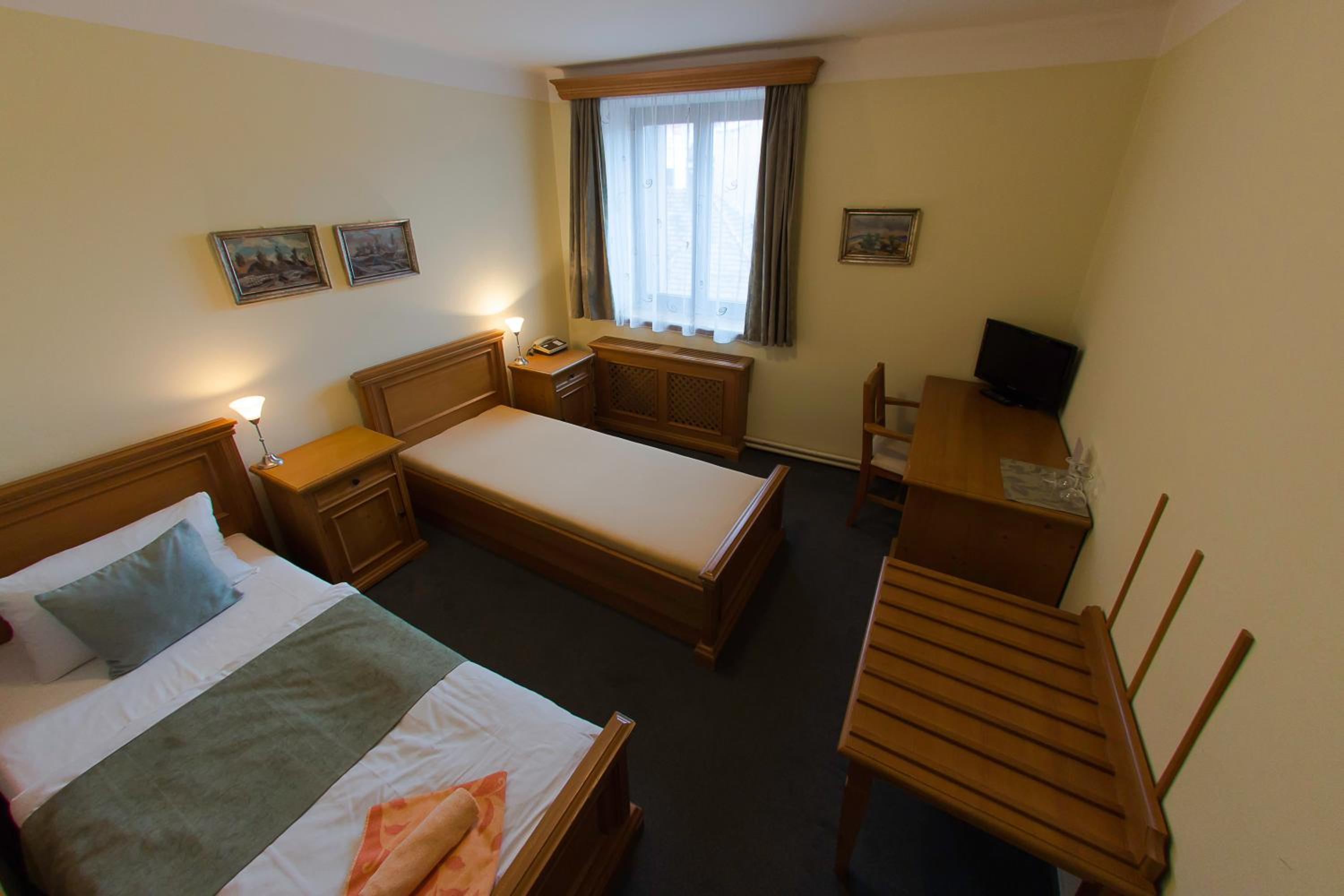 Ubytování je na rušné silnici, kde není ani o víkendu klid, vyvětrat si můžete tak akorát výpary z aut a na chodbu otevřít je ještě horší, protože tam všude smrdí výpary z kuchyně restaurace v přízemi, smrděli jsme jako hranolky.