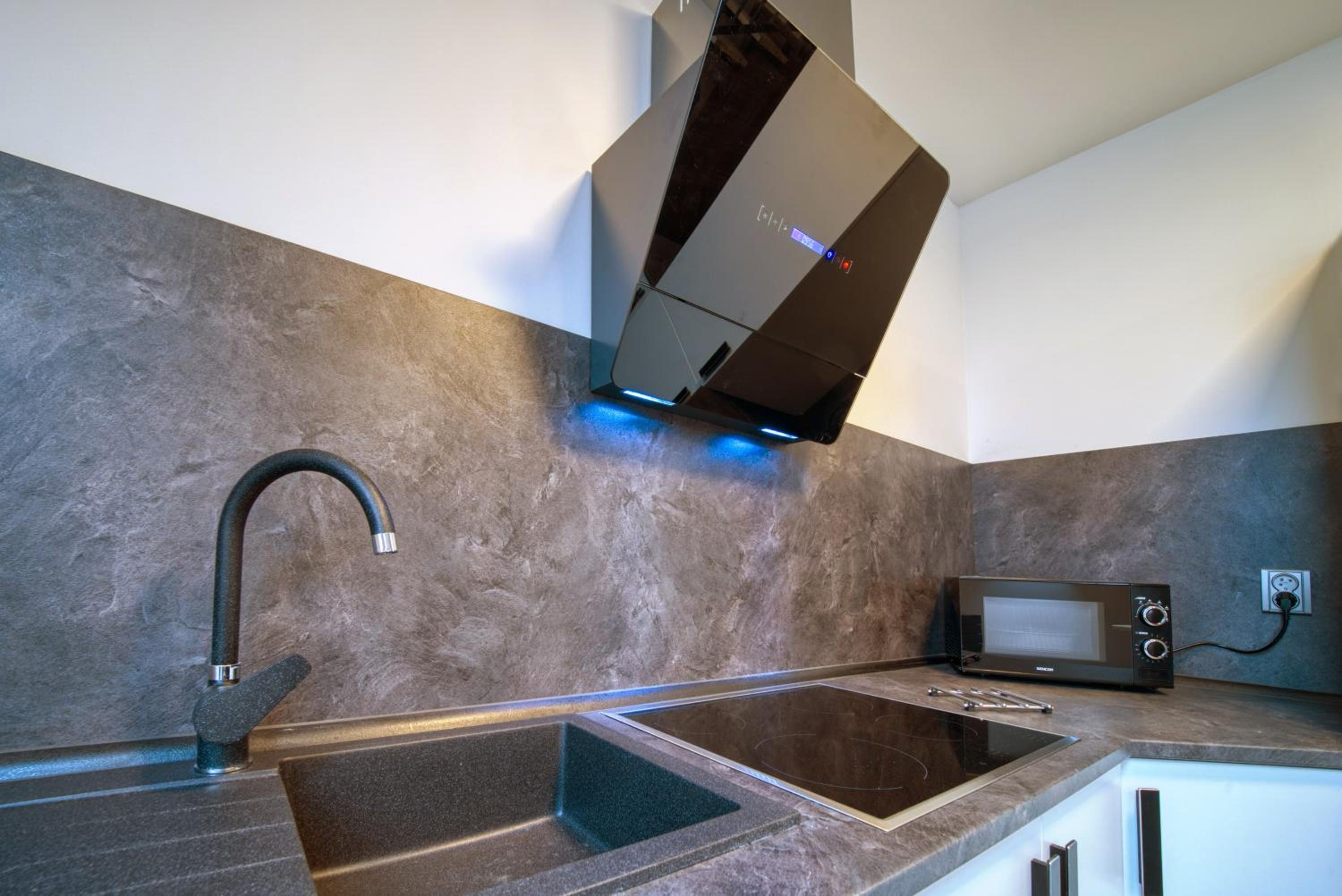V apartmánu (pro 4 lidi) bylo neskutečně vrzající schodiště a rozkládací pohovka byla trochu nestabilní (pro děti vyhovující, pro dospělé už méně). A pro 4 dospělé lidi na tři dny byl v kuchyňce v zásobách pouze 1čaj, 2x káva a 2xcukr. To nás trochu zamrzelo, že hotel na takové úrovni a s takovým vybavením šetří na takto malých položkách.