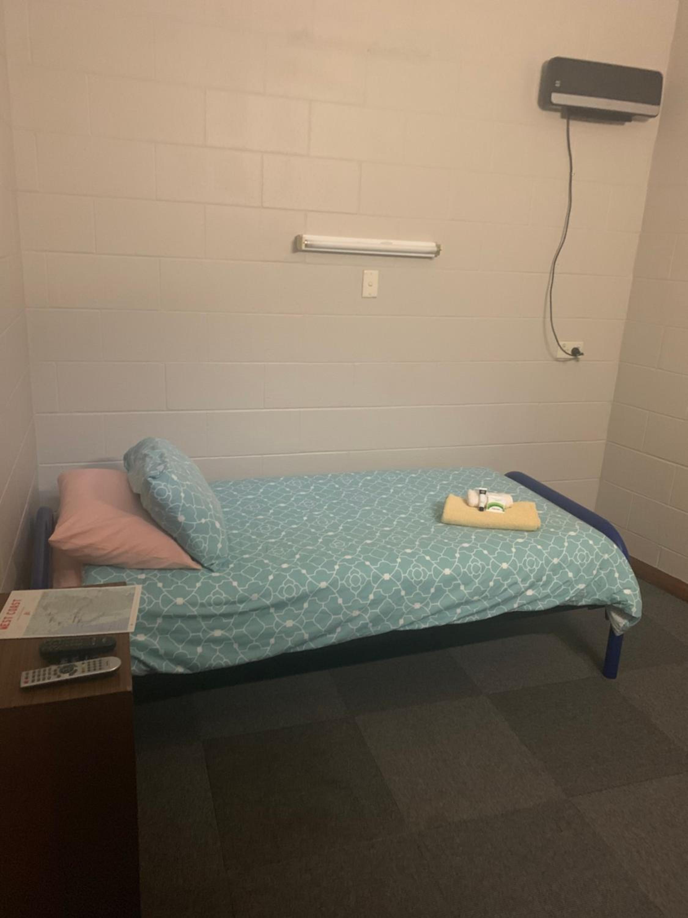 Les photos du site ne correspondent pas à la réalité : c'est une chambre minuscule, style pénitentiaire, avec un lit minuscule, un petit lavabo et frigo, ni table, ni chaise Pas de fenêtre à l'extérieur, sinon des fenêtres en haut de la chambre qui donnent sur le couloir intern. Donc autant la nuit que le matin il y a la lumière qui dérange pour dormir. Chambre du style à faire froid dans le dos, aucun envie de s'attarder dedans. J'avais demandé une chambre calme, on m'a donné la chambre à côté des douches !