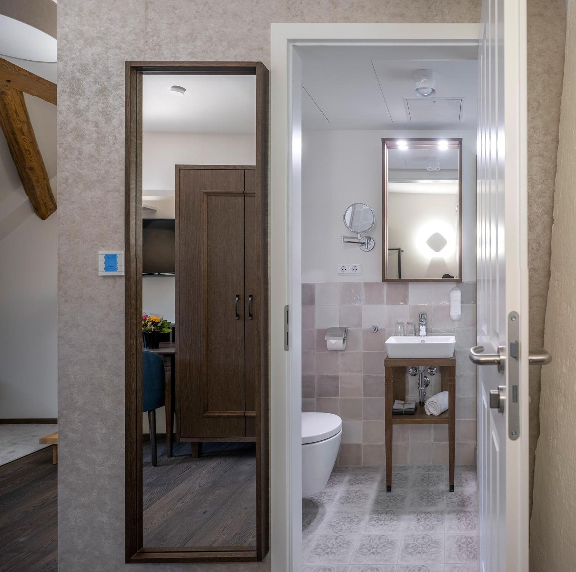 Lage mitten in der Altstadt, allerdings muss man von den verfügbaren Parkhäusern aus ein ganzes Stück weit laufen. Das haus ist außergewöhnlich, das Zimmer war sehr groß und schön, das Personal super nett und das Frühstück morgens auch richtig gut. Wir haben uns sehr wohl gefühlt.