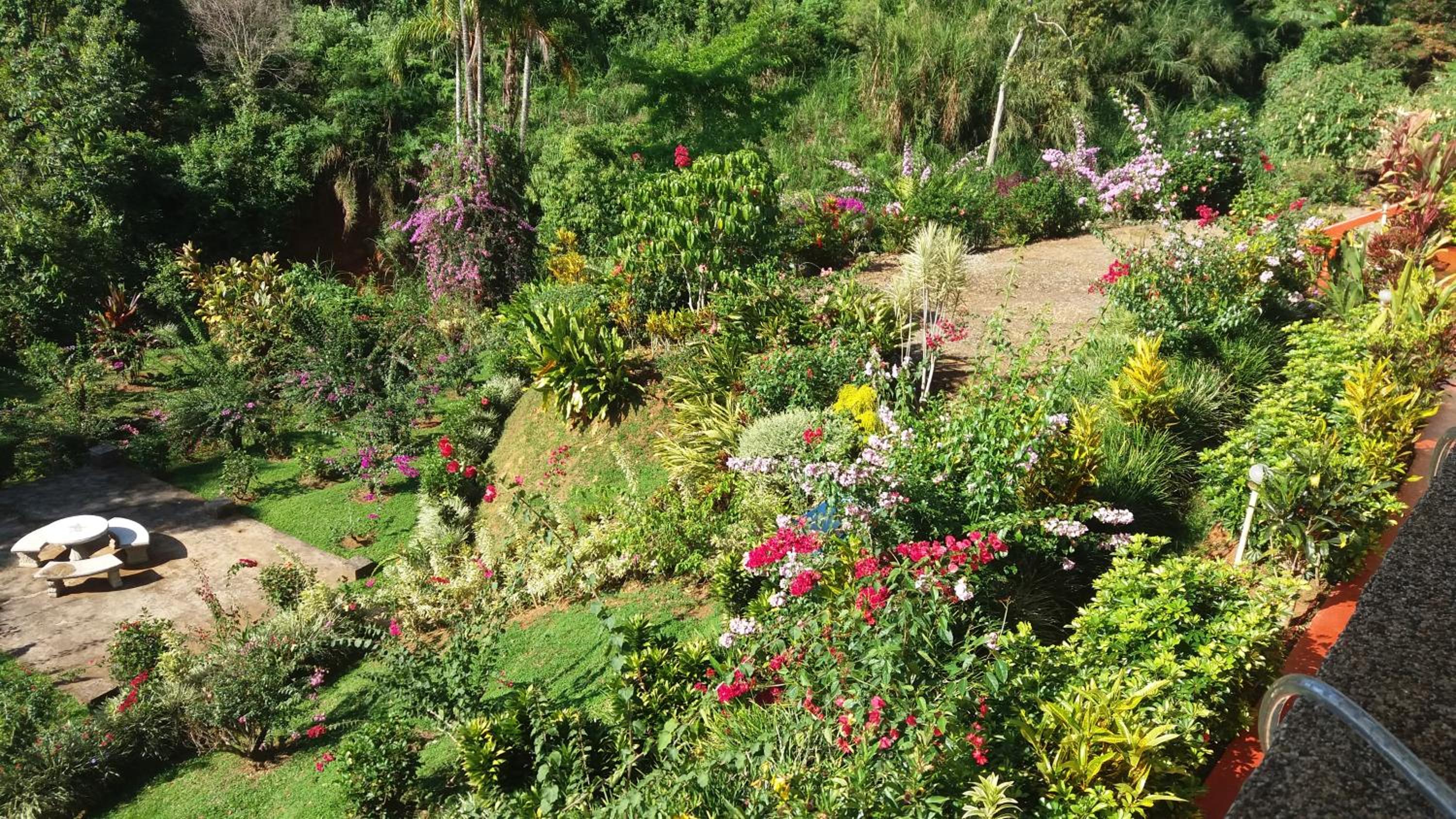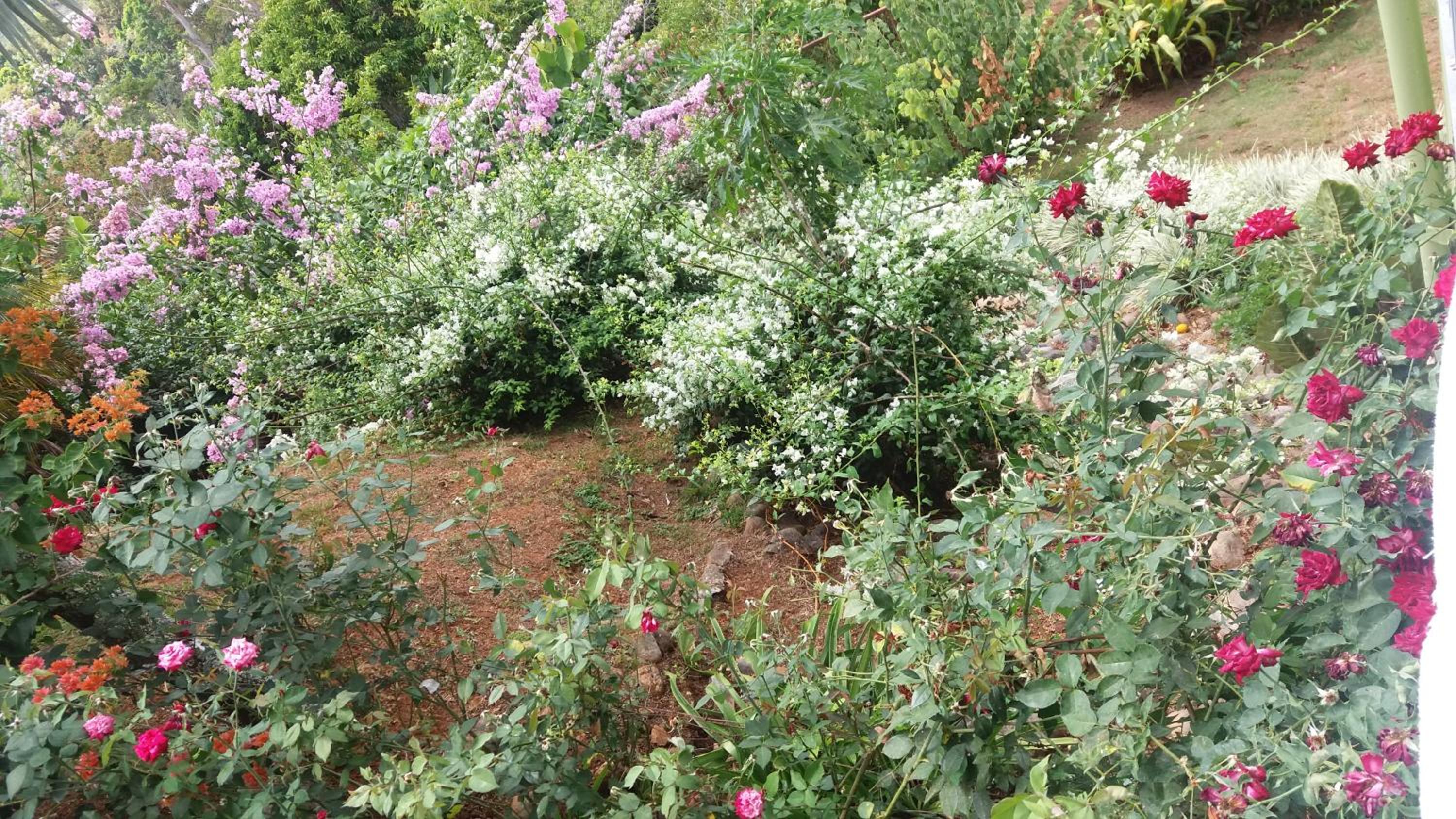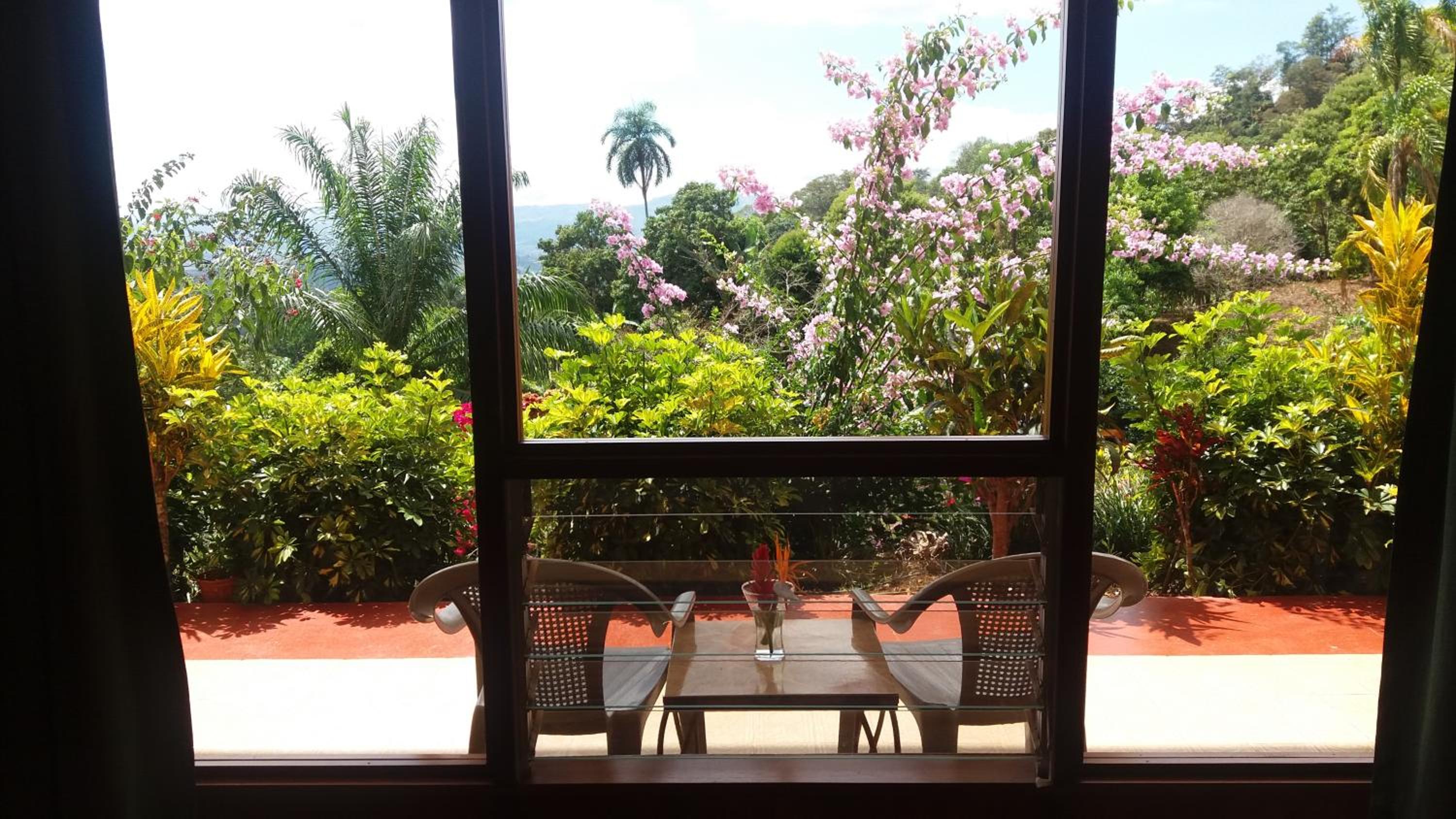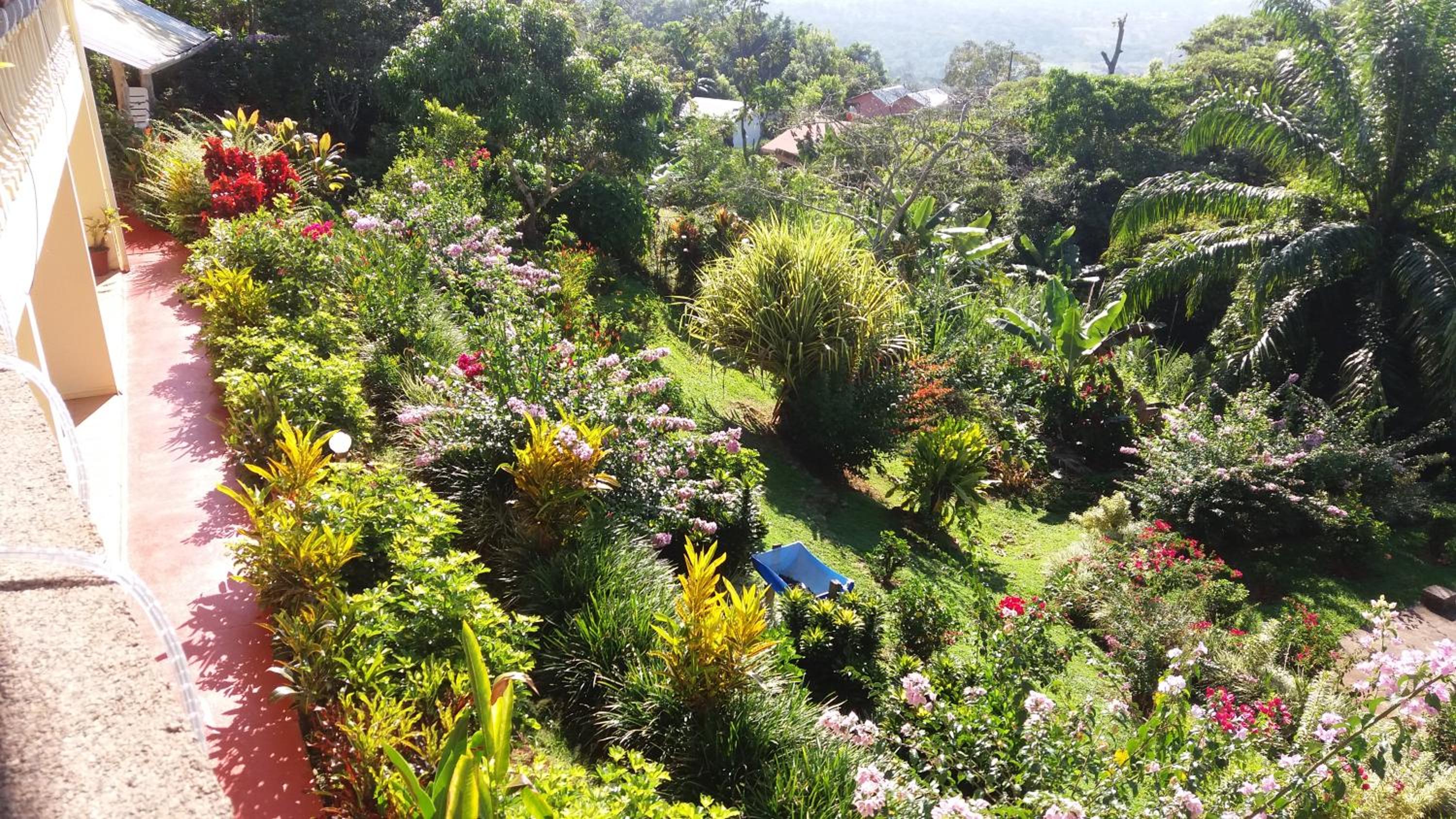 La superbe vue de notre chambre et le magnifique jardin. Les propriétaires très courtois. Le bon petit déjeuner complet.