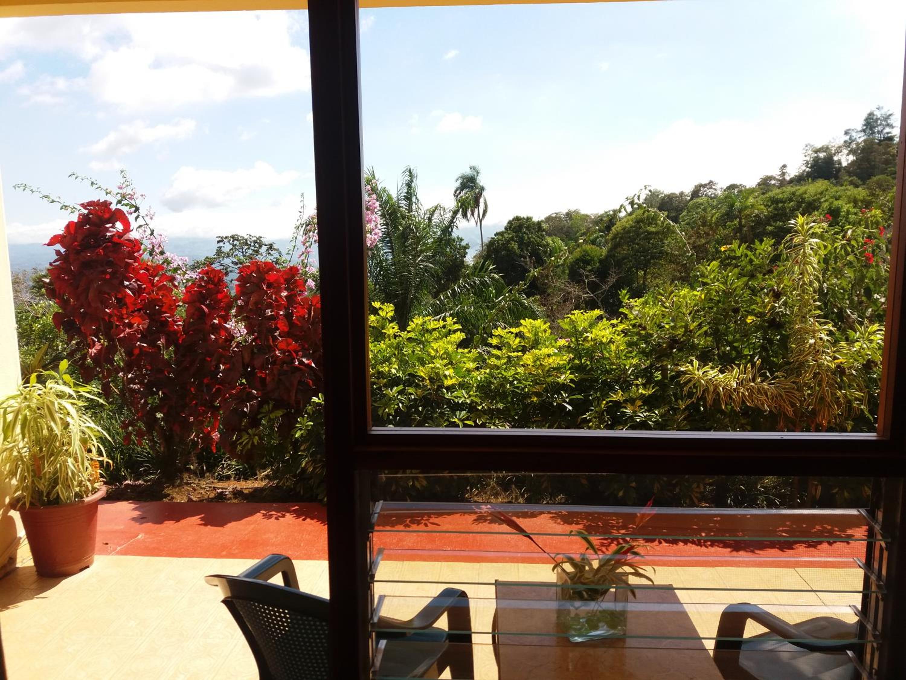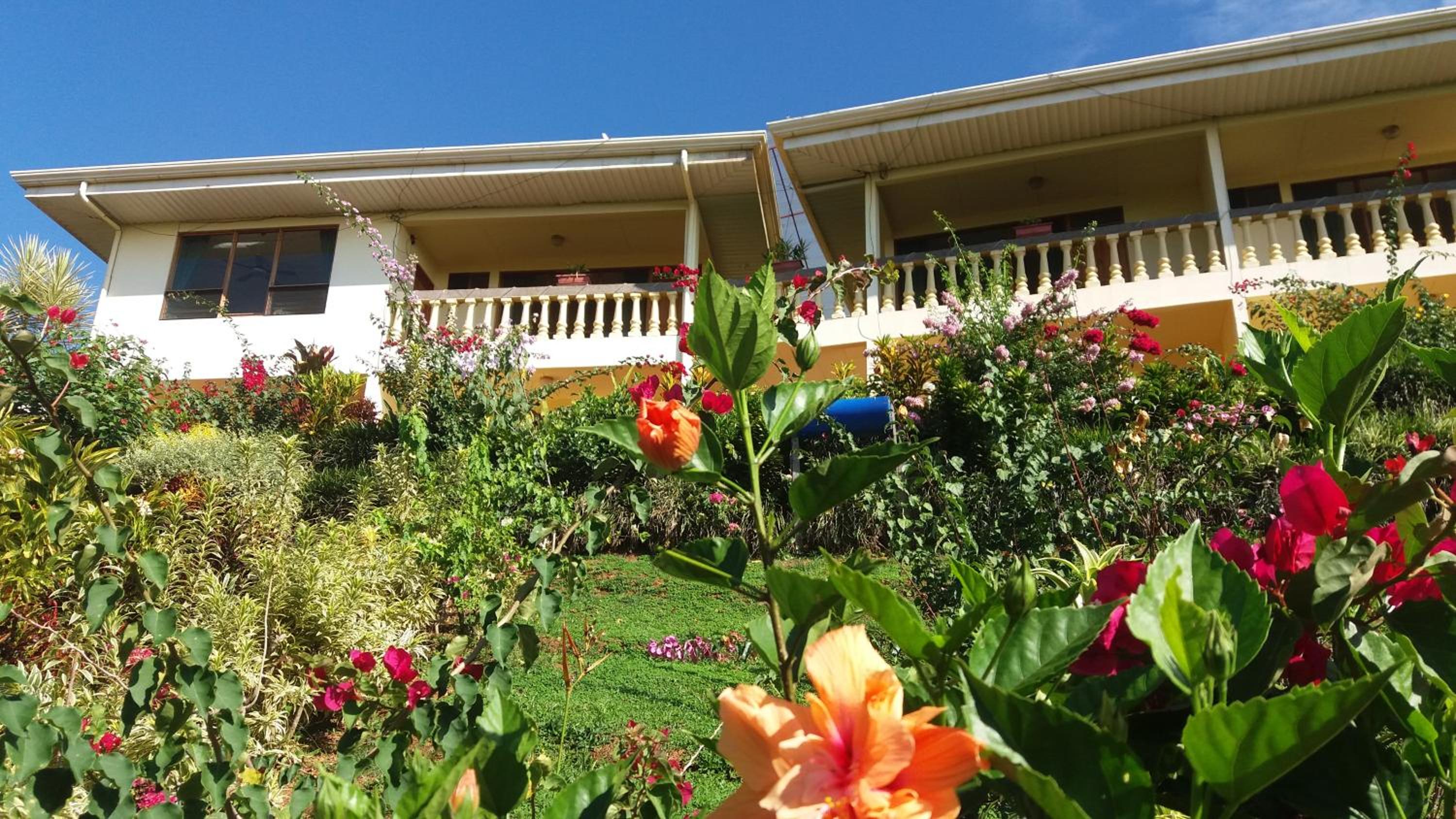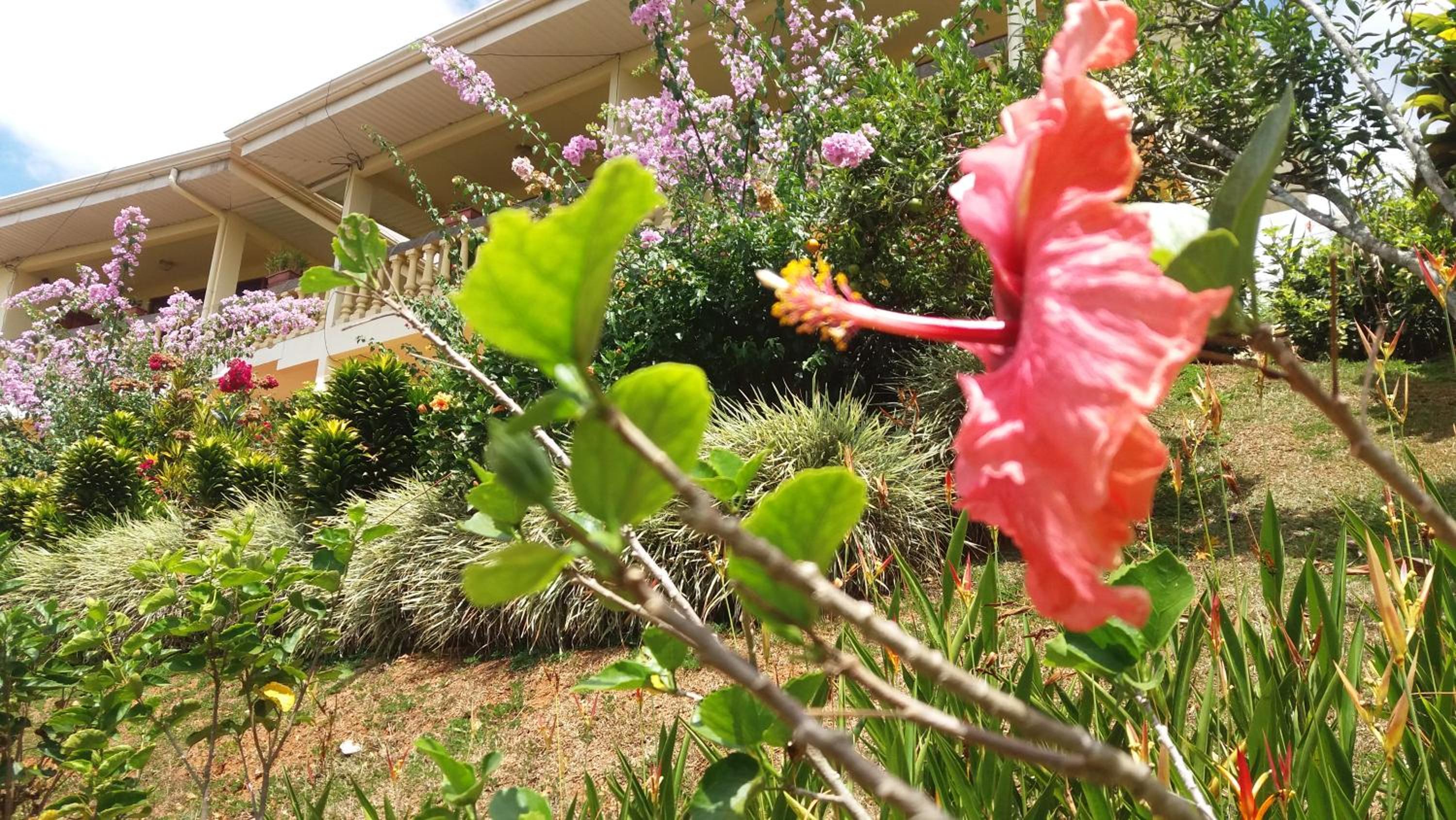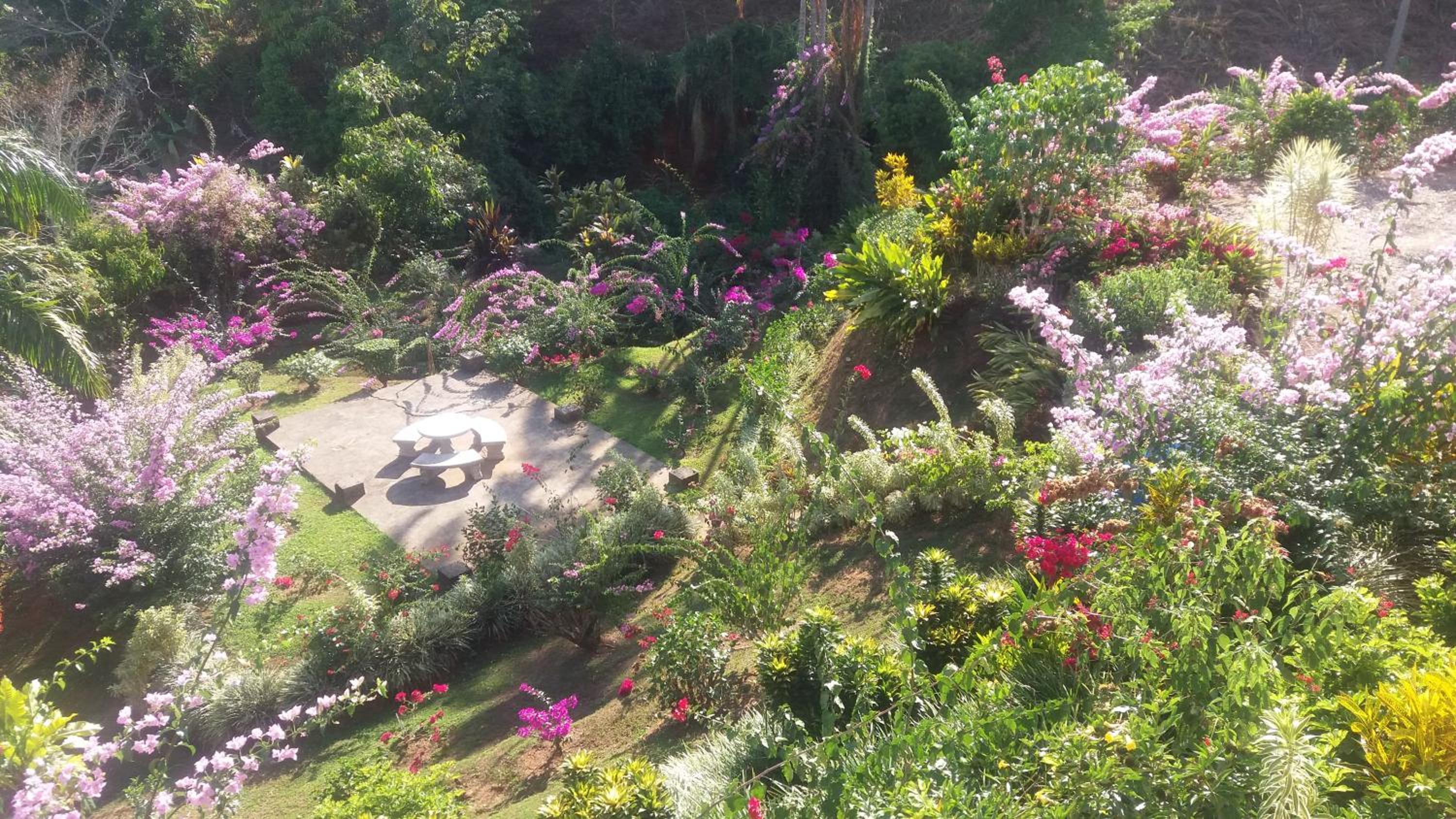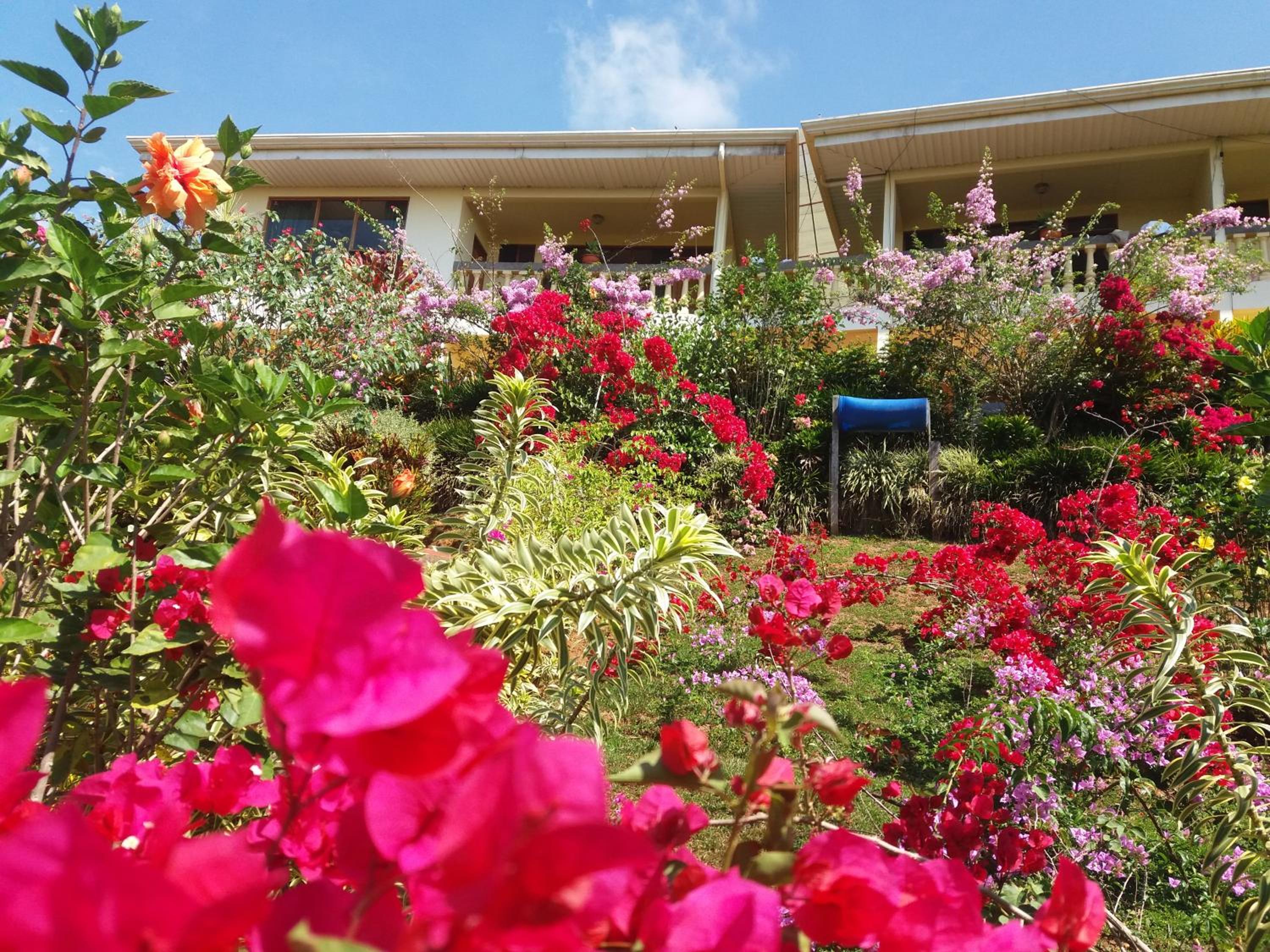La superbe vue de notre chambre et le magnifique jardin. Les propriétaires très courtois. Le bon petit déjeuner complet.
