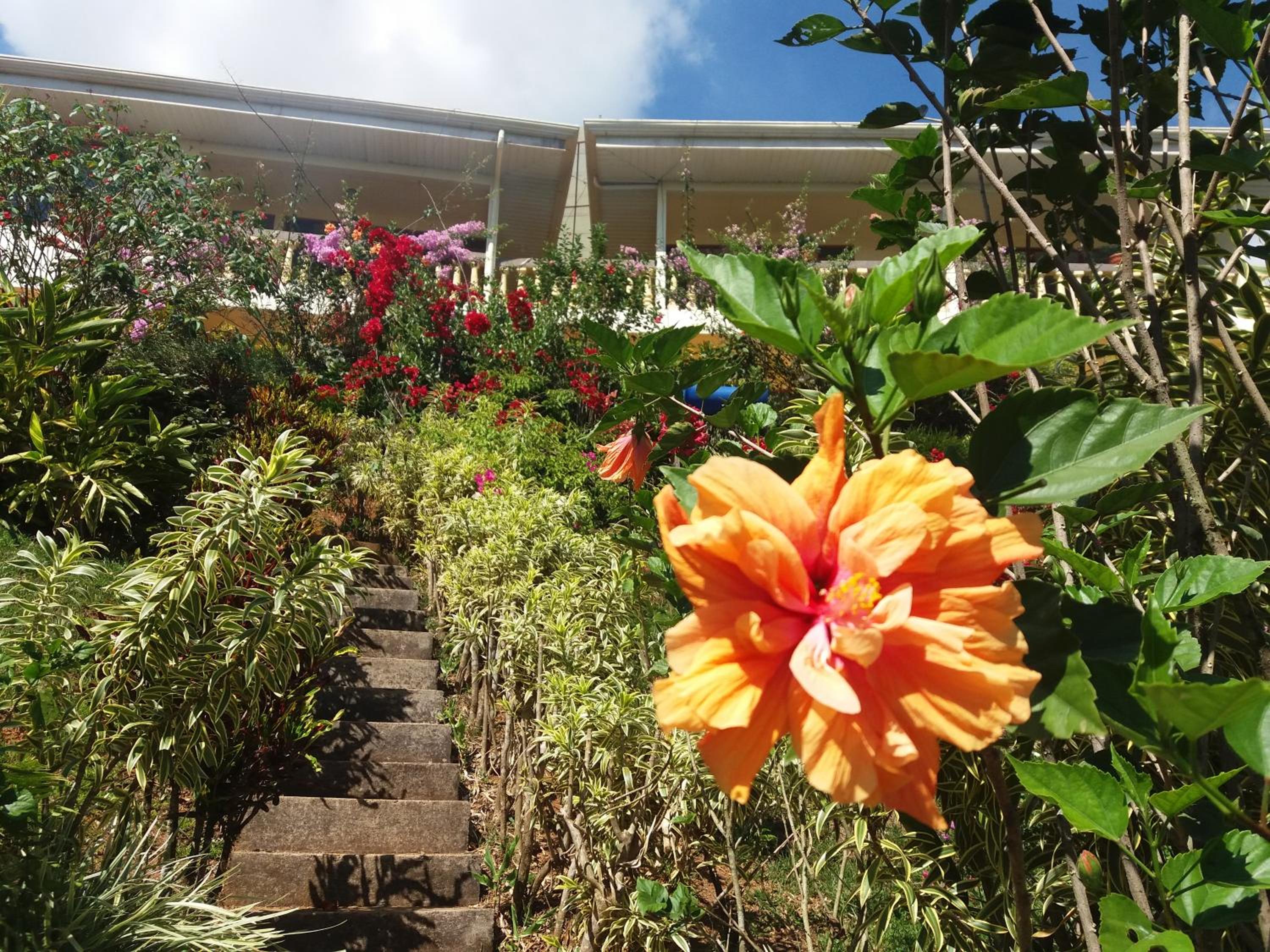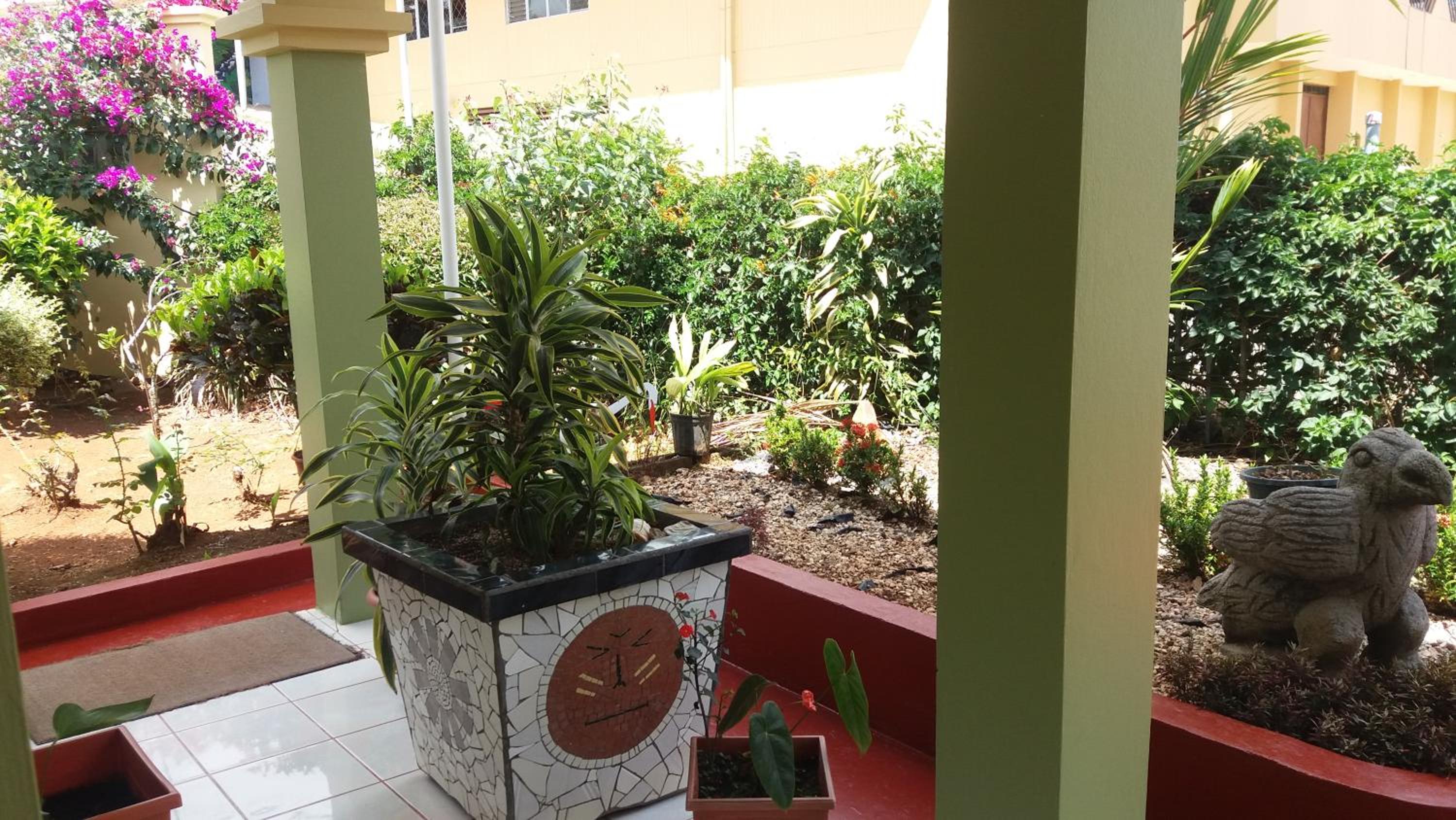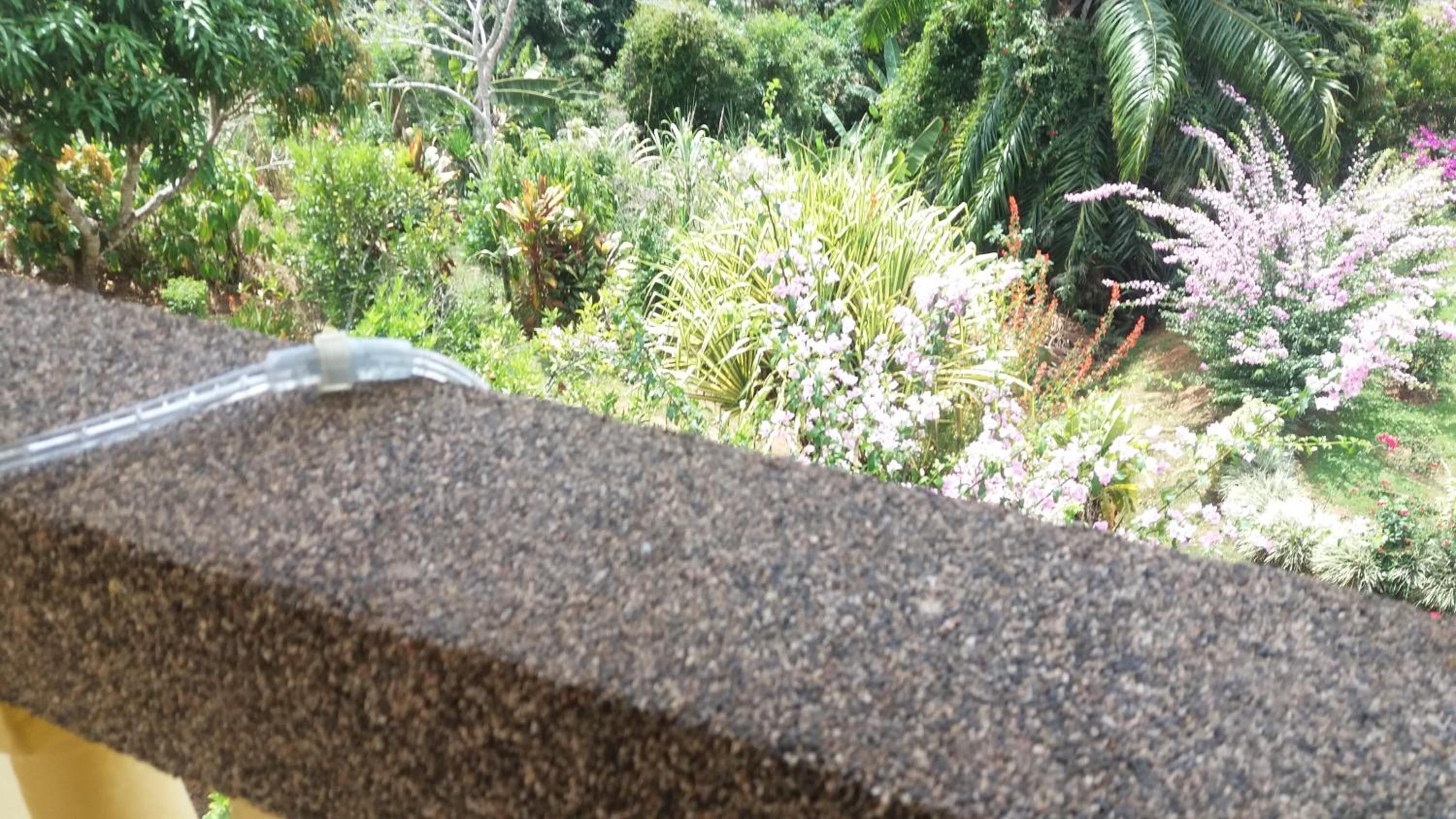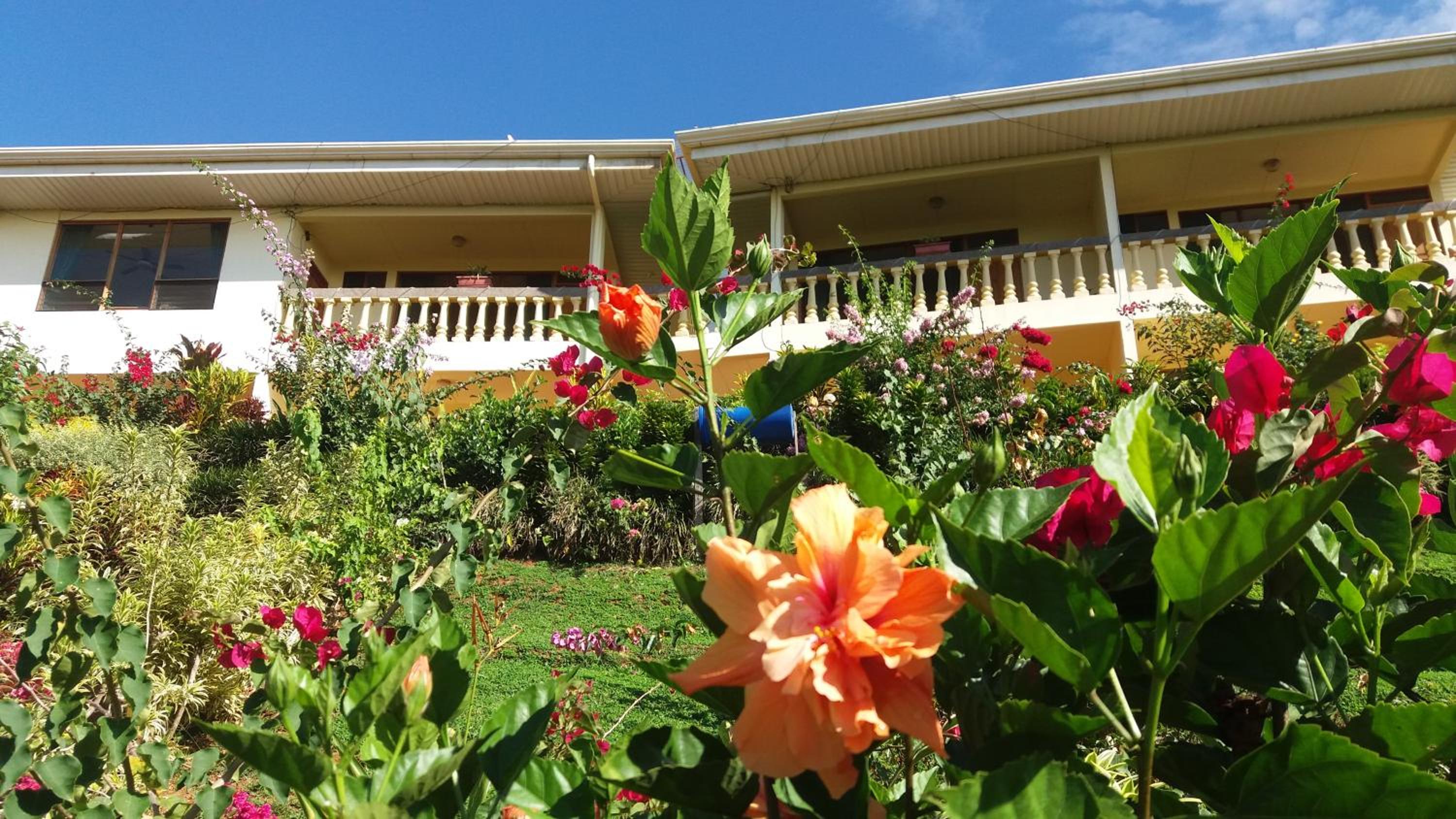 La superbe vue de notre chambre et le magnifique jardin. Les propriétaires très courtois. Le bon petit déjeuner complet.