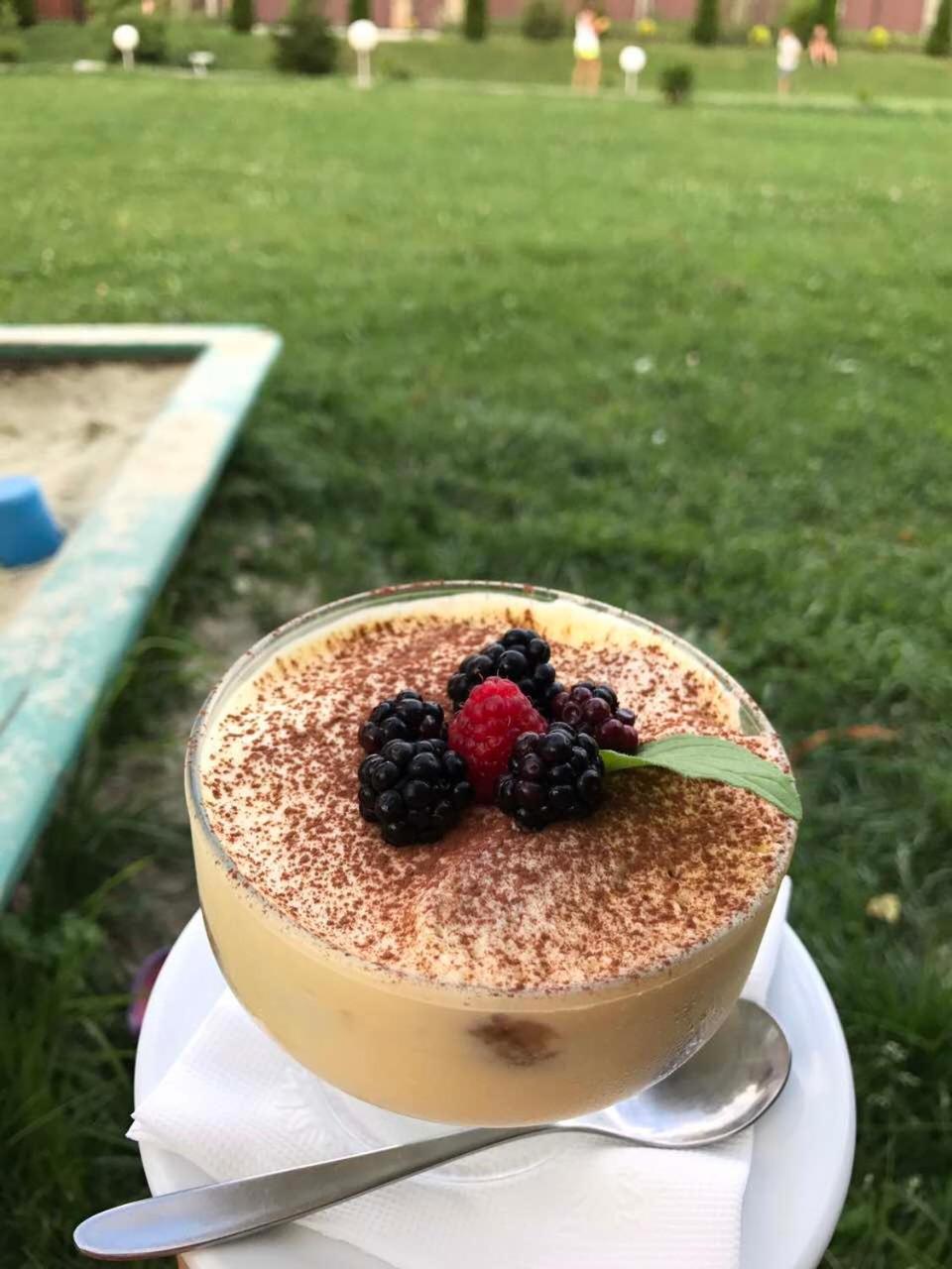 Немає закладу, що працює по меню, ані в самому готелі, ані поруч, тільки виходити в центр, не дуже прикольно в дощ, а готельні комплекси на обід та вечерю підійдуть не всім, як за наповненням, так і в часі