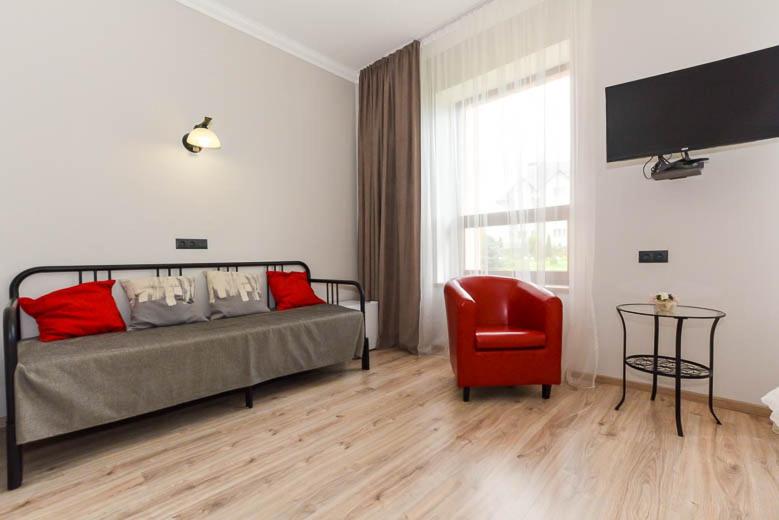 Із мінусів (але вони взагалі не псують загальне враження про готель): це вузькуваті кроваті (140 см) - але нас про це попередили заздалегідь. І те що вілла знаходиться трохи на горі (від центру Східниці йти пішки нагору десь 15 хв).