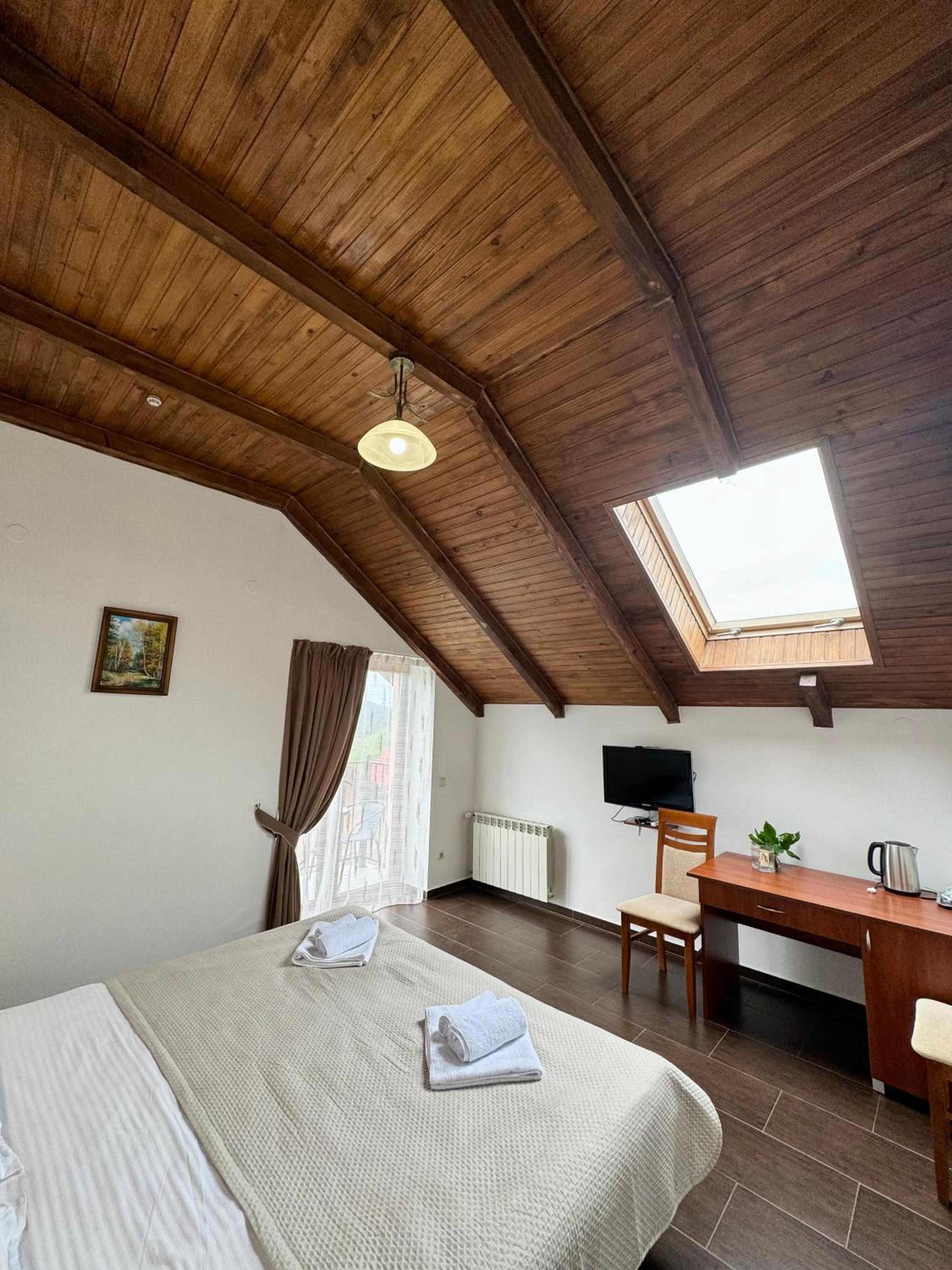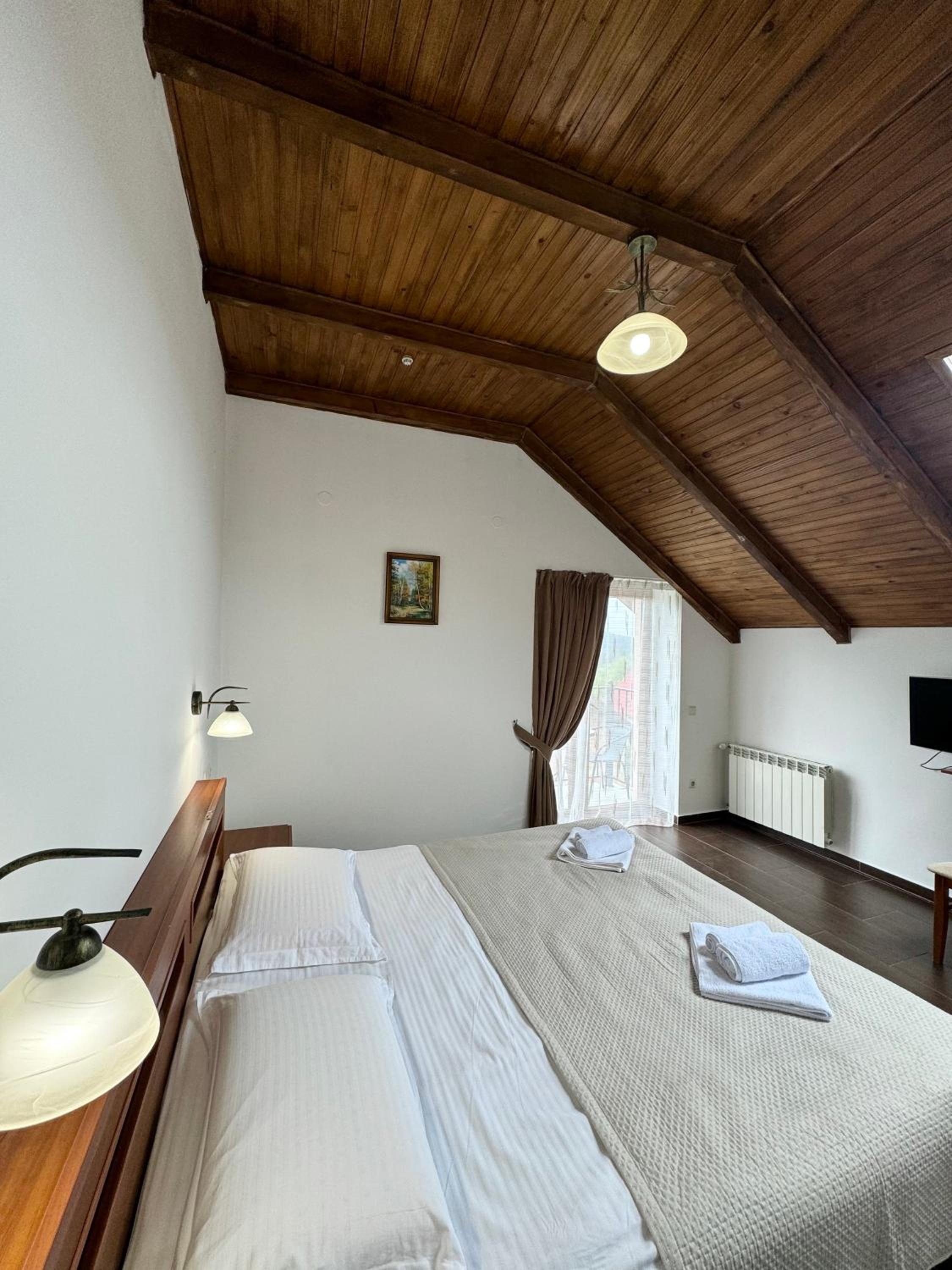 Дуже приємний персонал. Прямо бусічки) і на кухні всі жіночки дуже привітні, уважні, давали абсолютно все необхідне. Ми брали двічі мангал, щоб посмажити шашлики, то на кухні нам видавали і шампури, і тарілки, і бокали, і серветки, і все необхідне. Прибирають у номері кожного дня.
