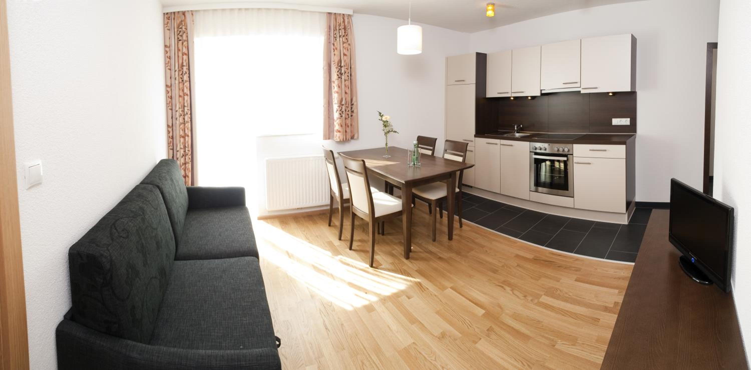 O quarto é maravilhoso..vista linda pra neve..atendimento dos donos é perfeito. Simpaticos, prestativos..Banheiro ótimo, camas ótimas, silêncio. Teleférico para neve a 5 min e outros picos a 29 minutos. Insbruck a 25min de ônibus, vc pega o ônibus na frente do hotel e de graça.