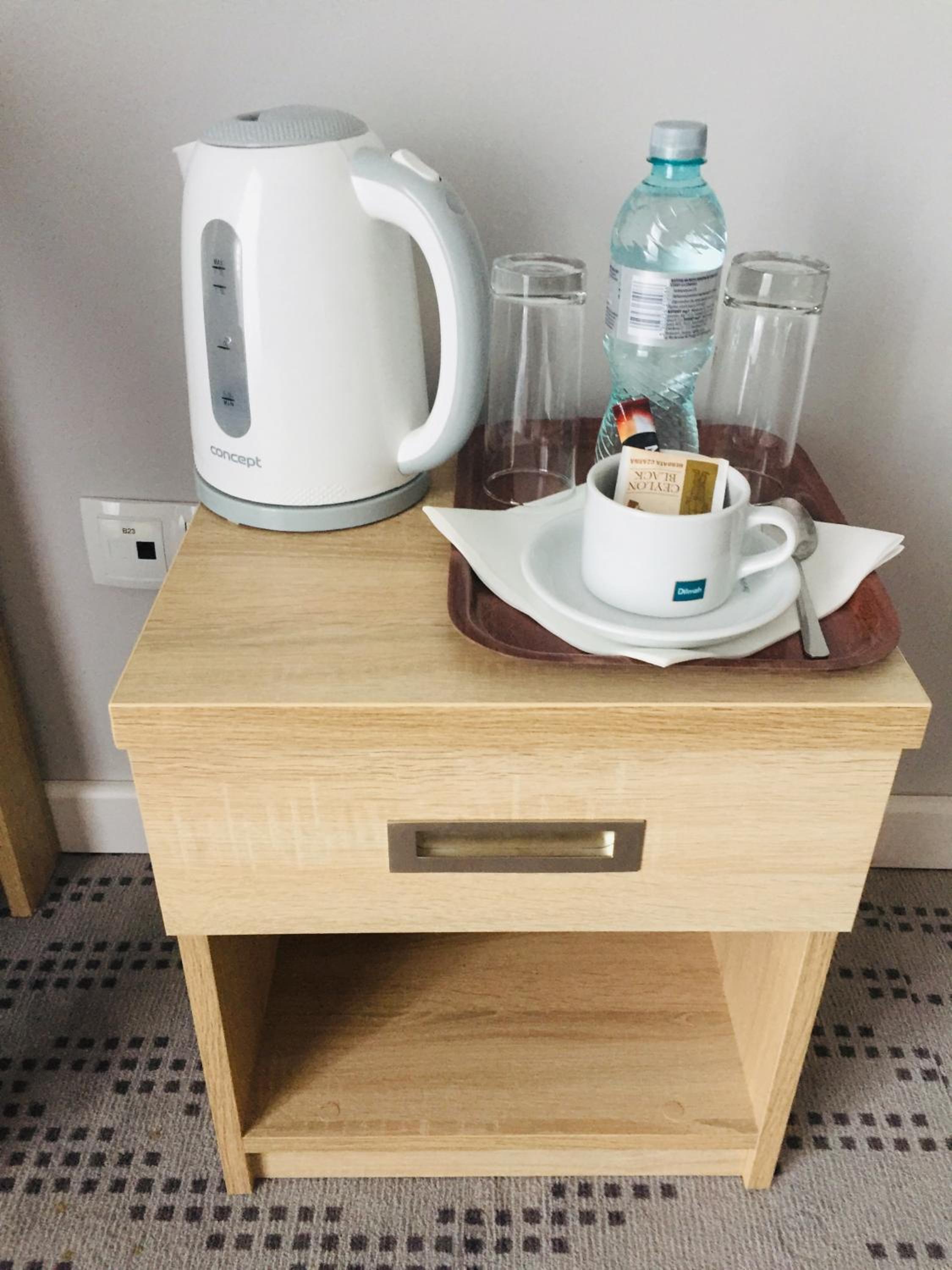 W pokojach czajnik, kawa, herbata;
