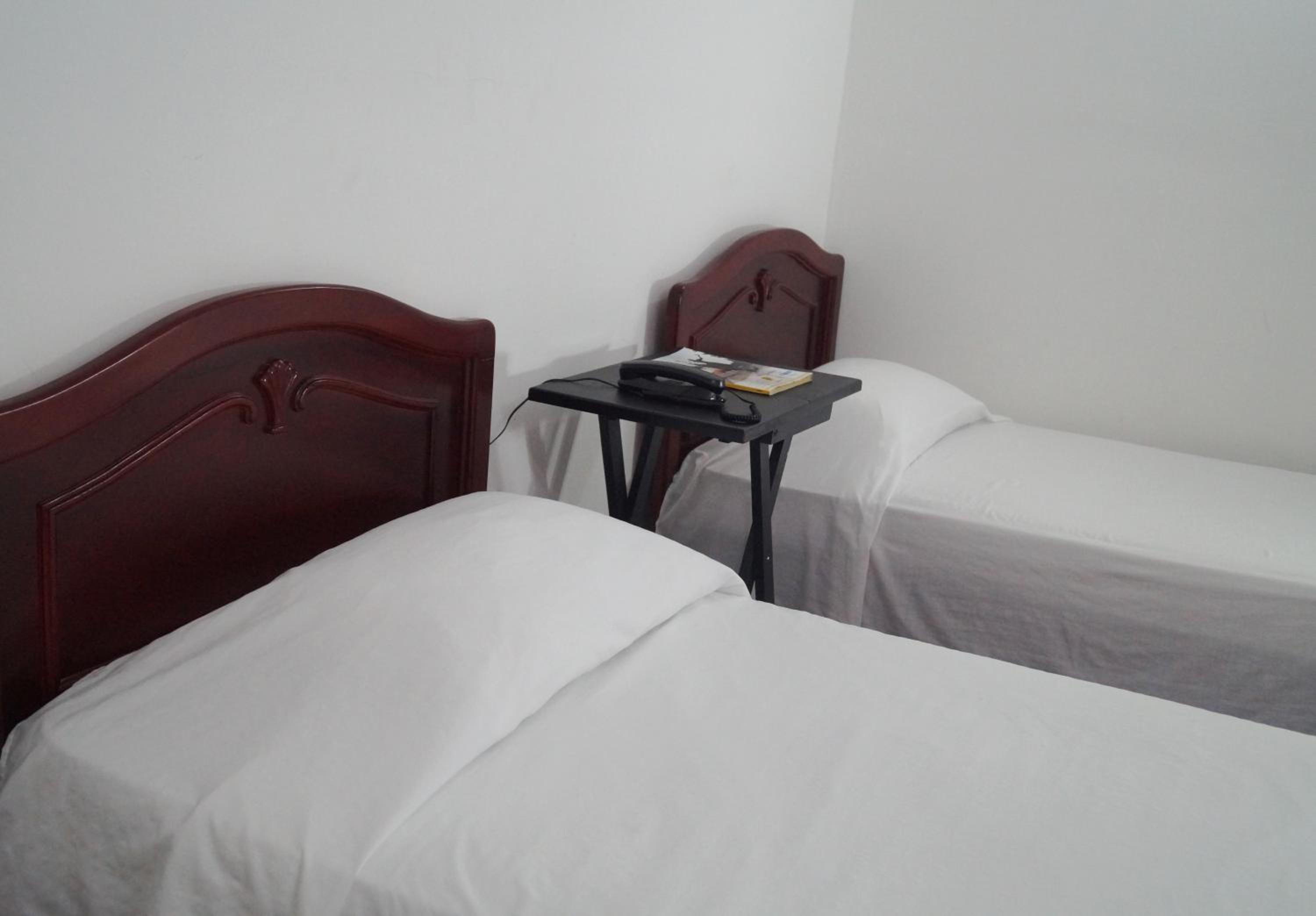 Each room at Hotel Comercial is thoughtfully equipped with modern conveniences such as a flat-screen TV, air conditioning, and cozy bed linens.