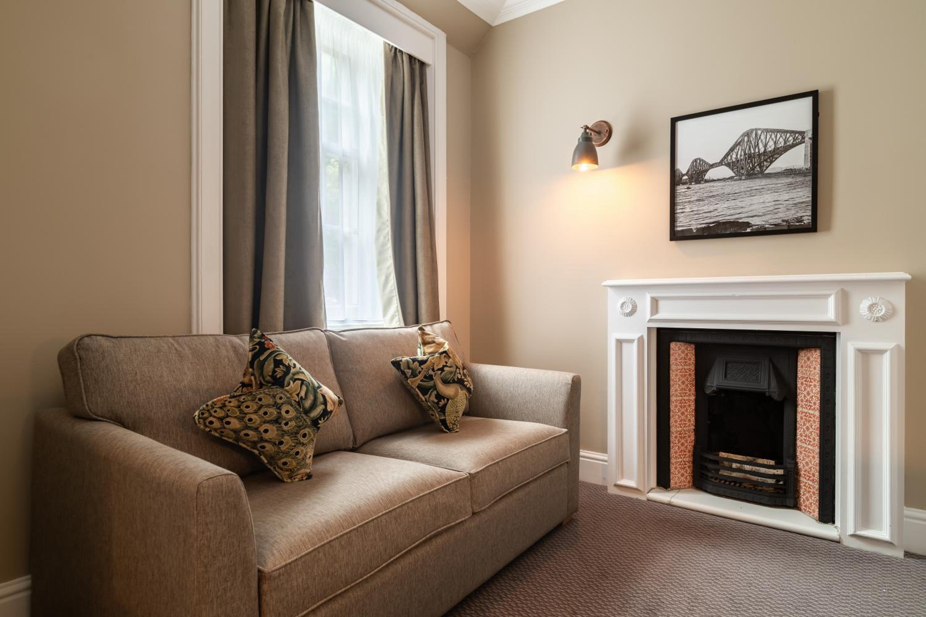 Overlooking the iconic Firth of Forth railway bridge, The Hawes Inn offers a picturesque stay just a short drive from Edinburgh's city centre. Many rooms provide stunning views of the river and Forth Road Bridge, along with modern amenities like flat-screen TVs and en-suite bathrooms.