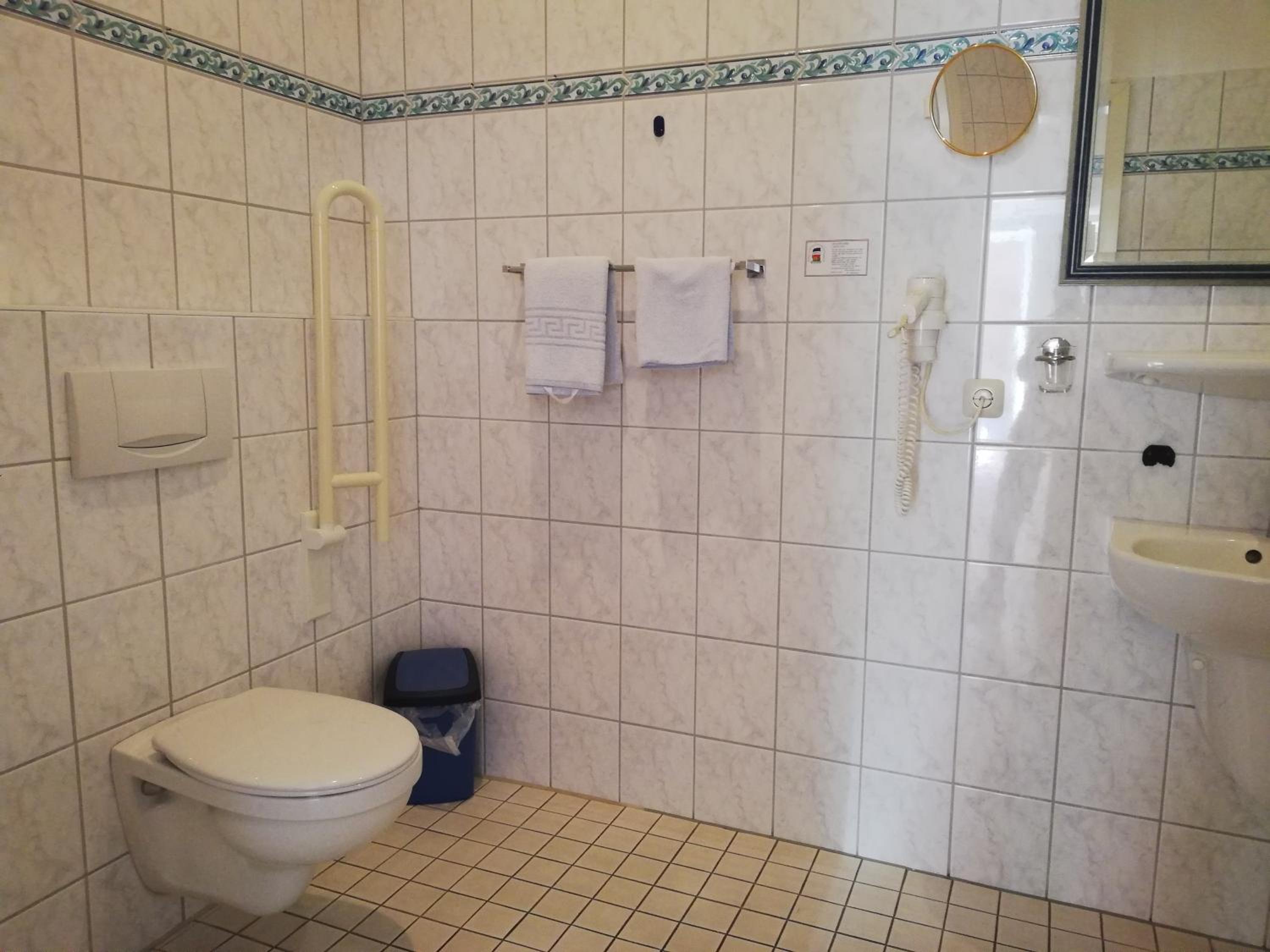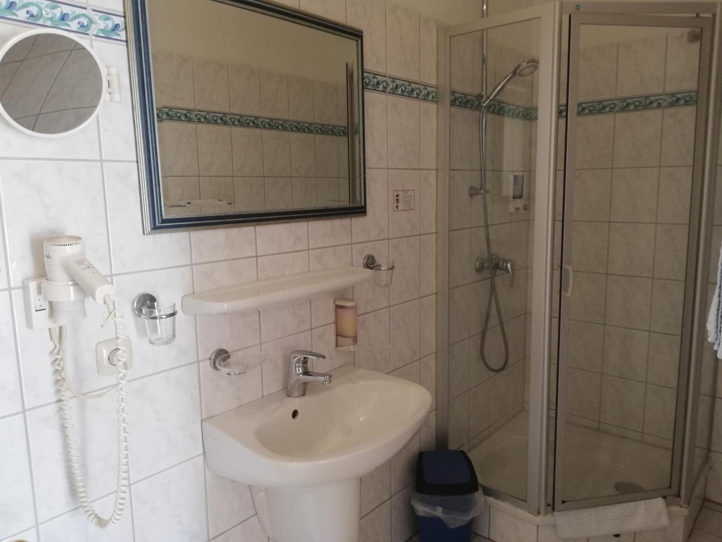 Ruime kamer. Goede douche. Ontbijt met verse Duitse broodjes.