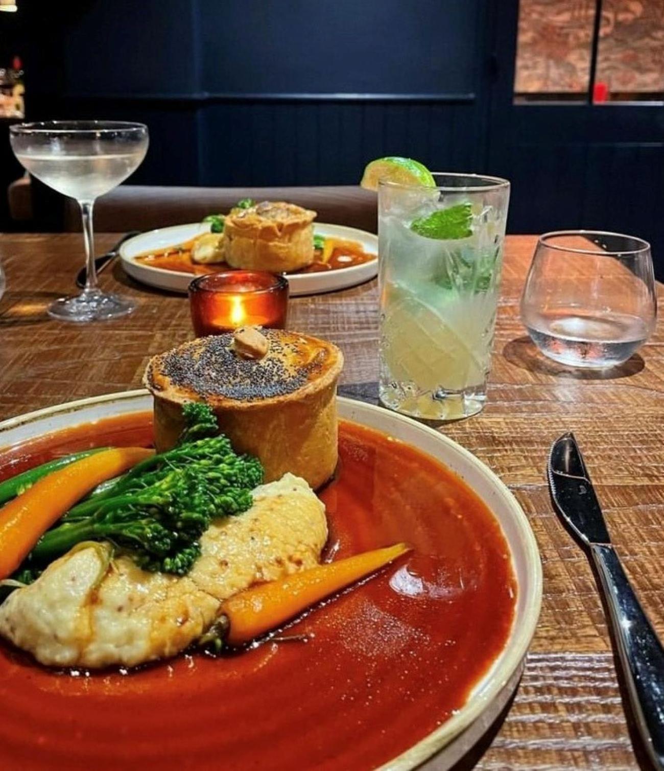 Food was amazing. Decor lush. Nice pub. Large, comfy, stylish, quality bedroom. Bathroom and shower lovely. Delicious breakfast.