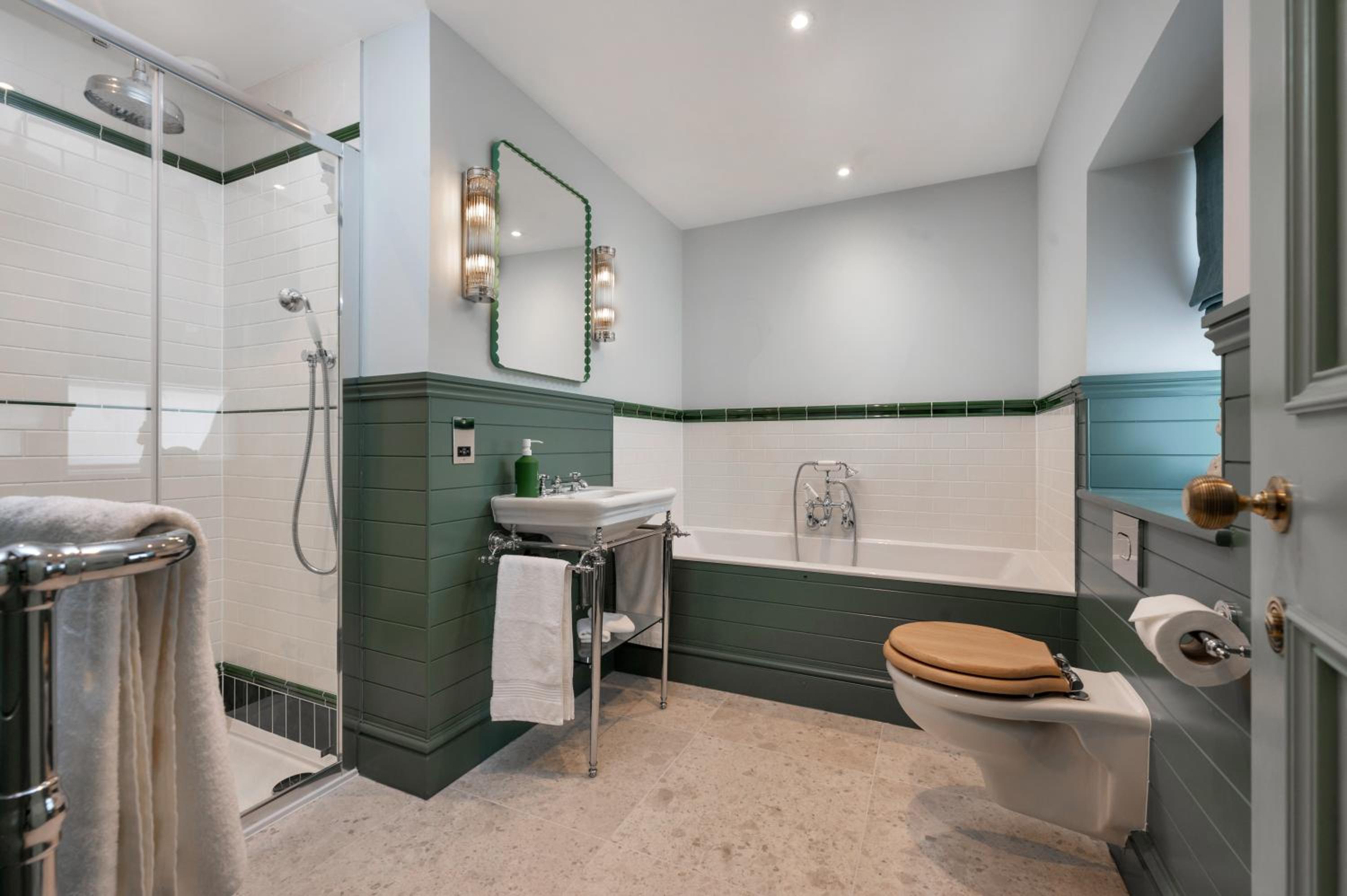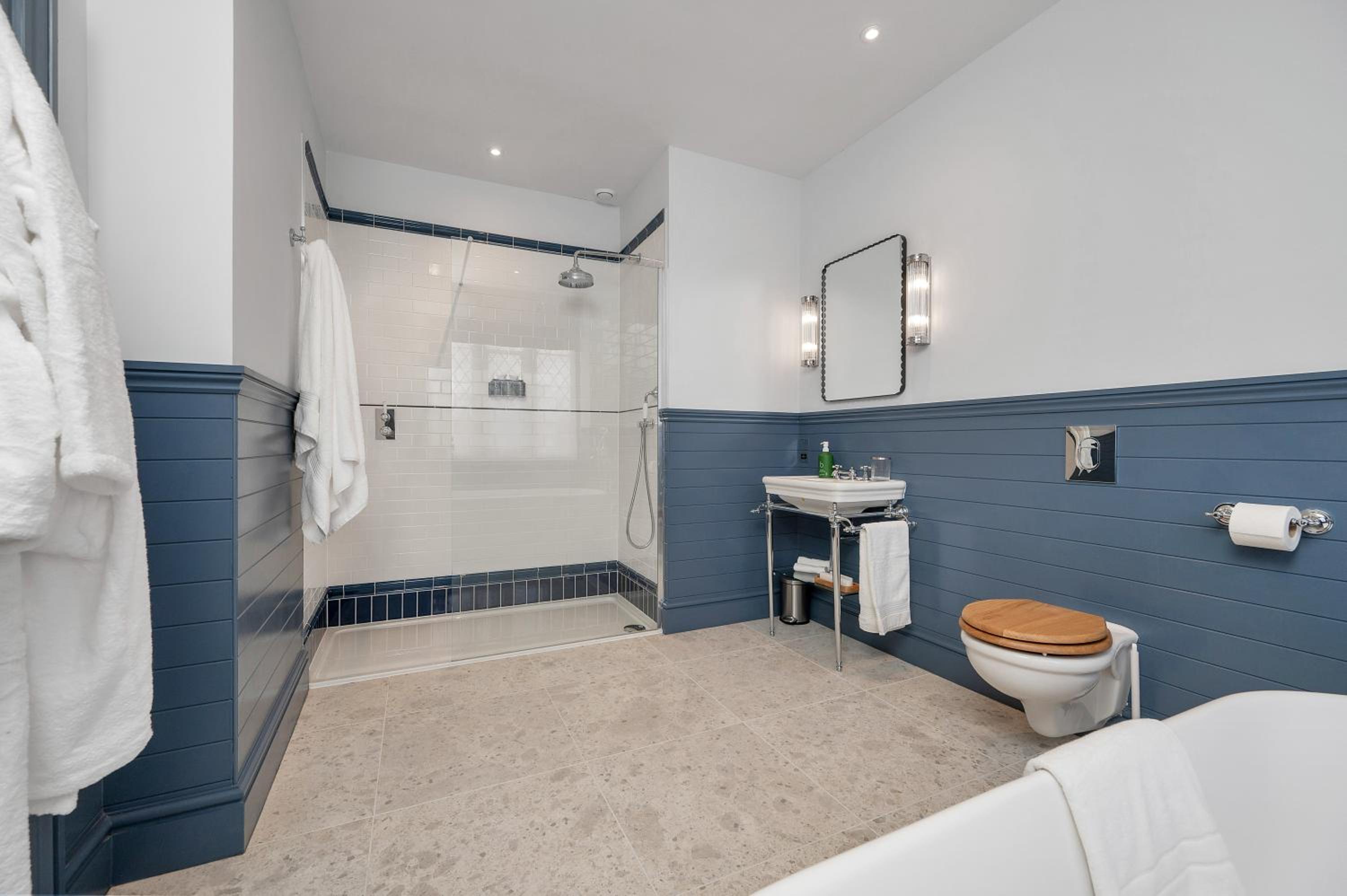 Complimentary upgrade to a beautiful big bedroom (with the biggest bathroom I've ever seen!). Very comfortable and clean.Nestled in a stunning little village by a babbling river, with lots of scenic walks locally.