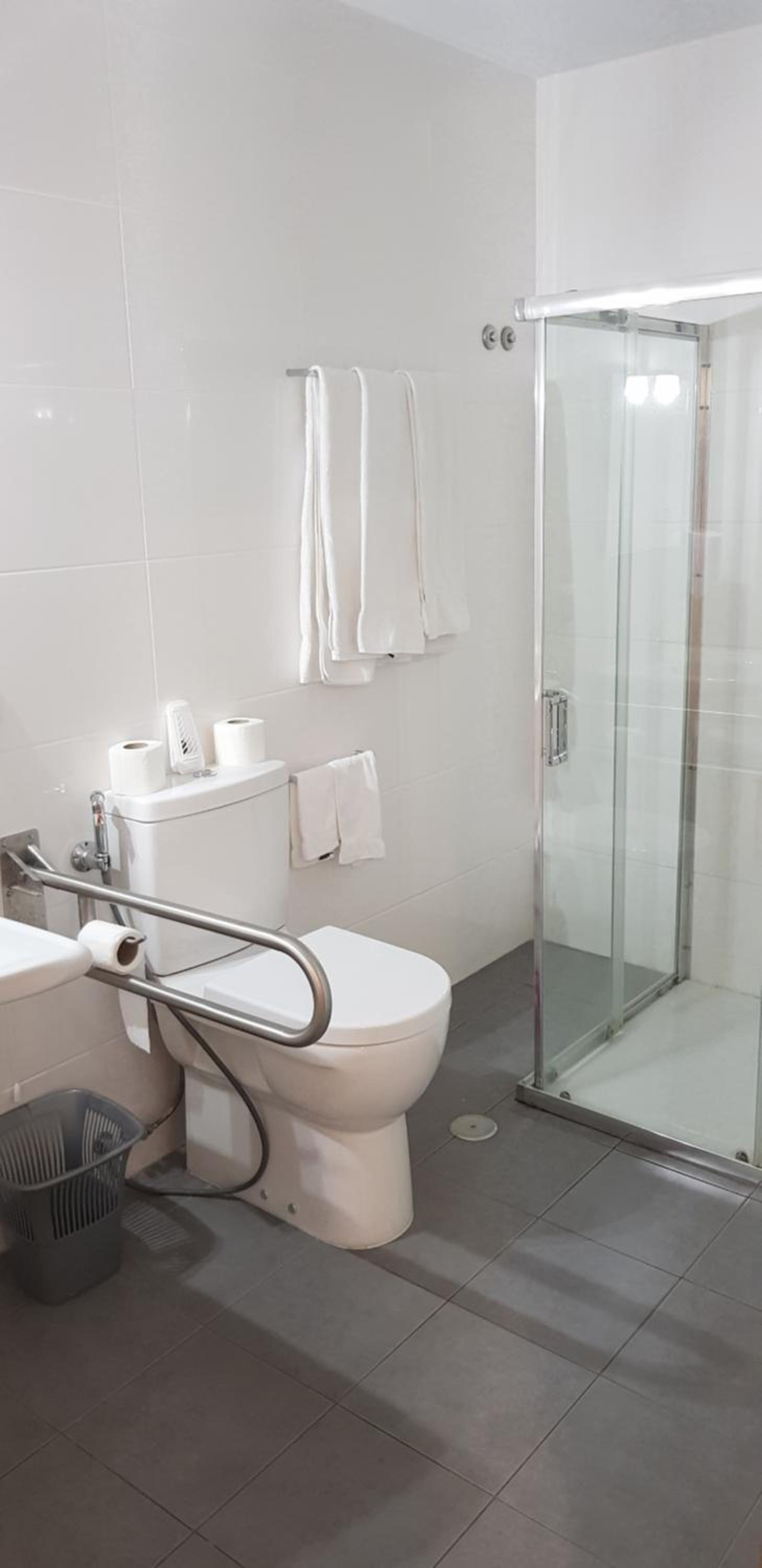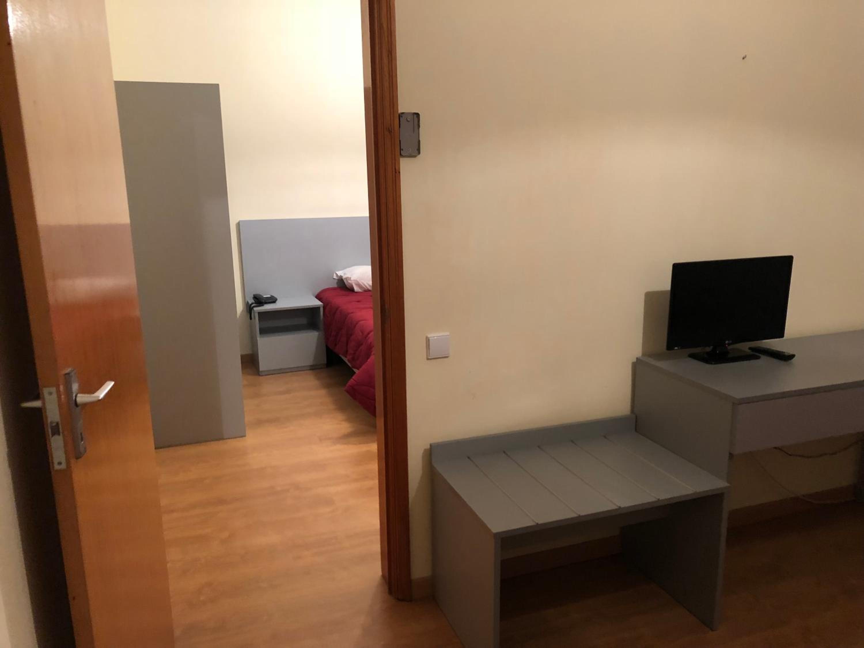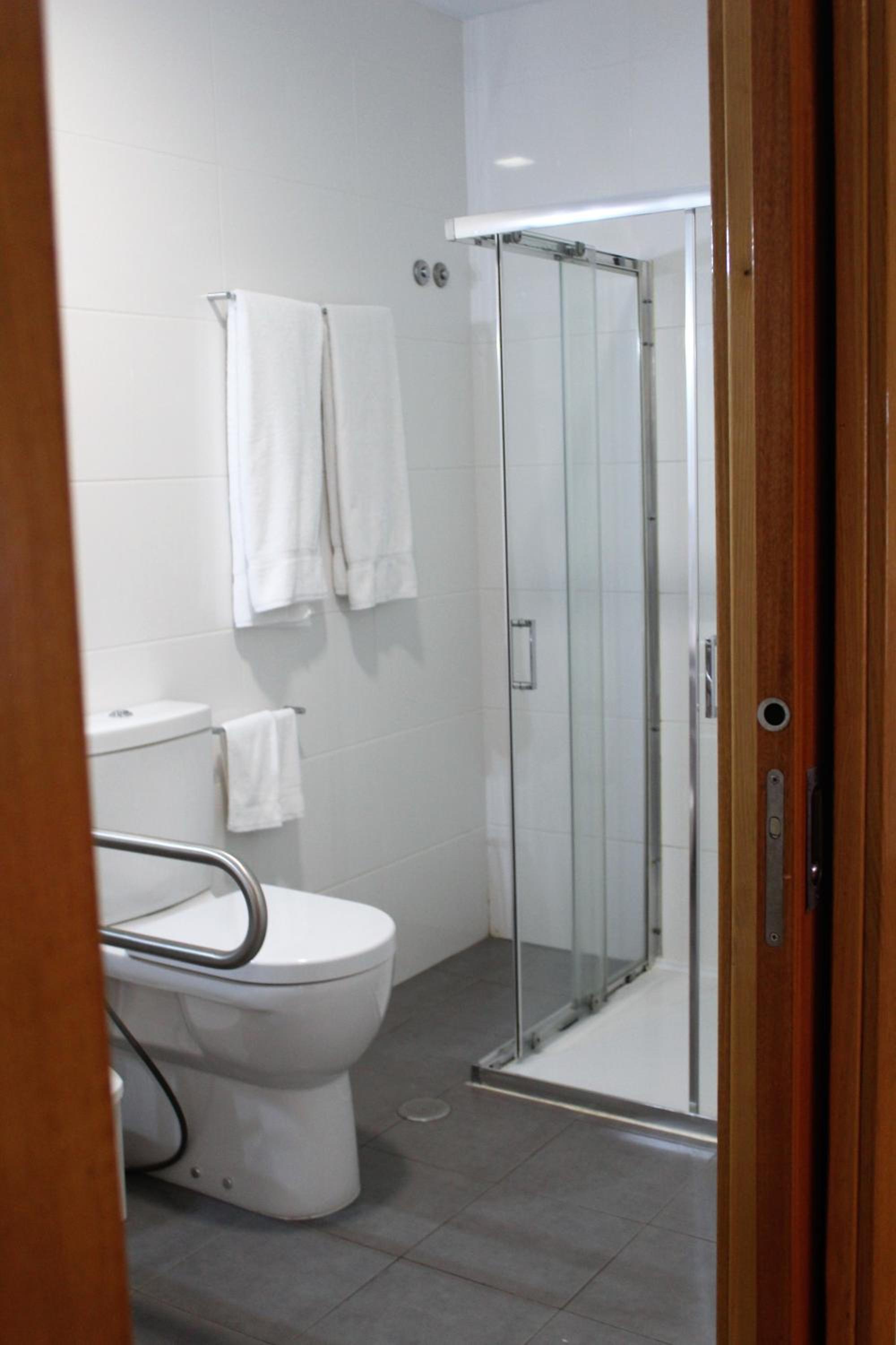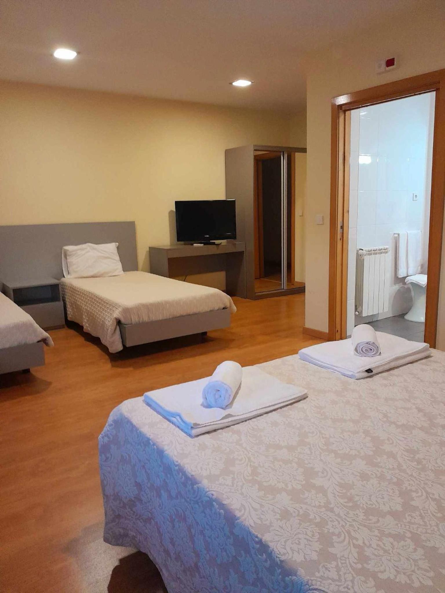 Pedi para ficar no piso térreo e foi-me concedido. O quarto era enorme, com cama de casal e duas cama de solteiro, o que para uma uma família de 4 foi excelente. O ex estava preparado para pessoas de mobilidade reduzida, apesar de não sermos, o espaço a mais foi bem vindo.