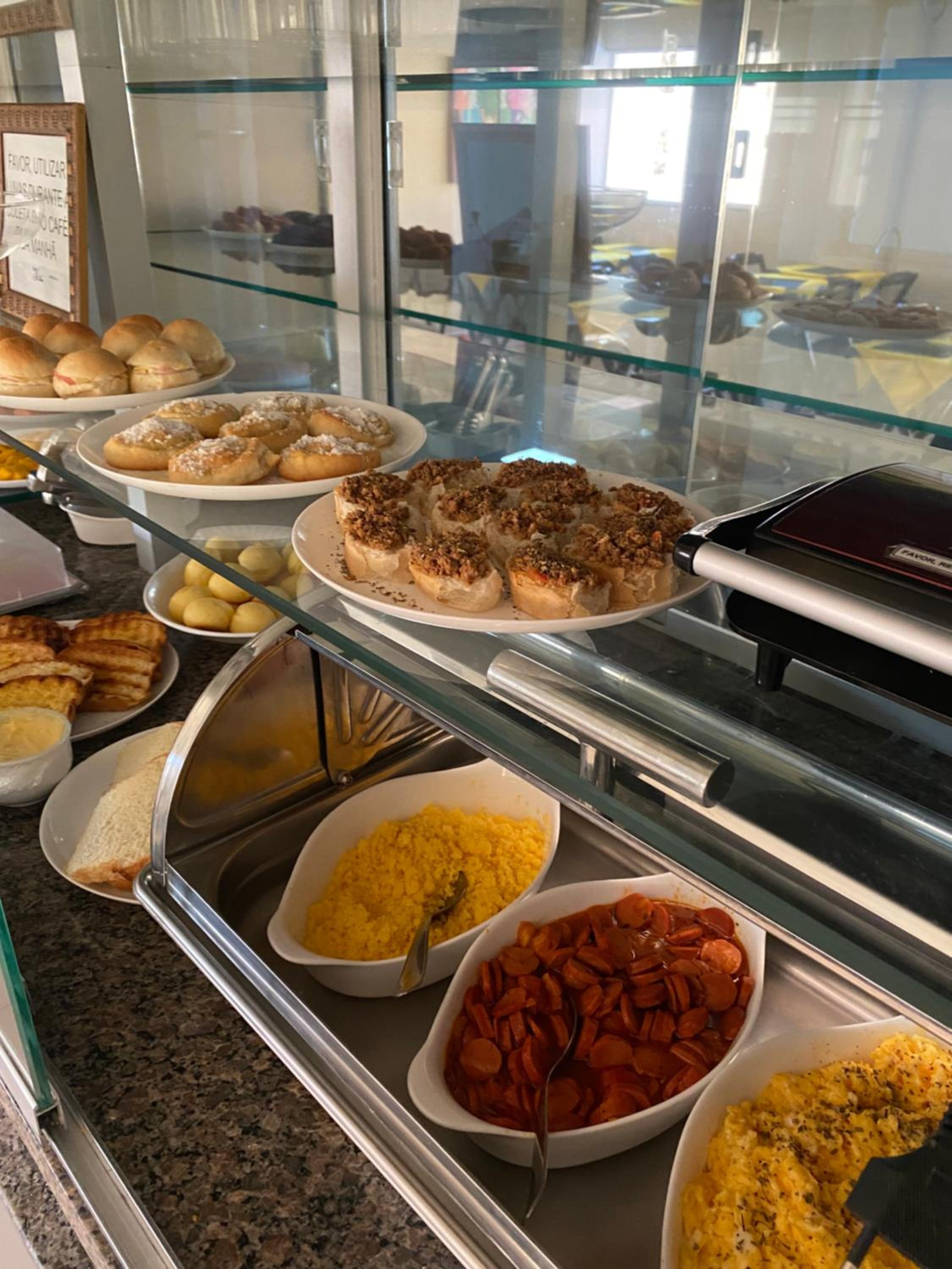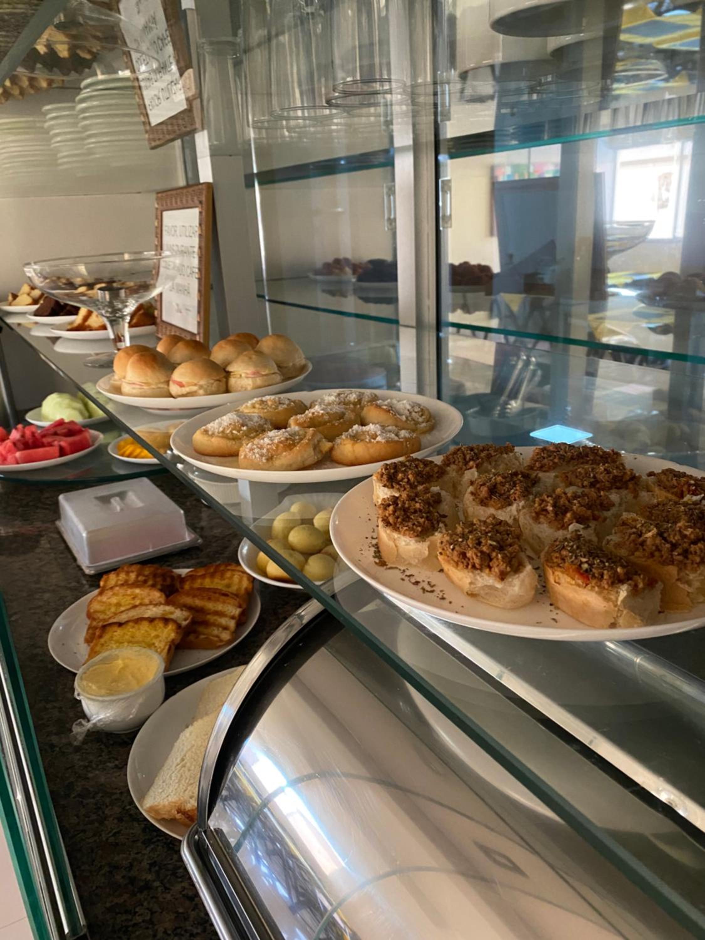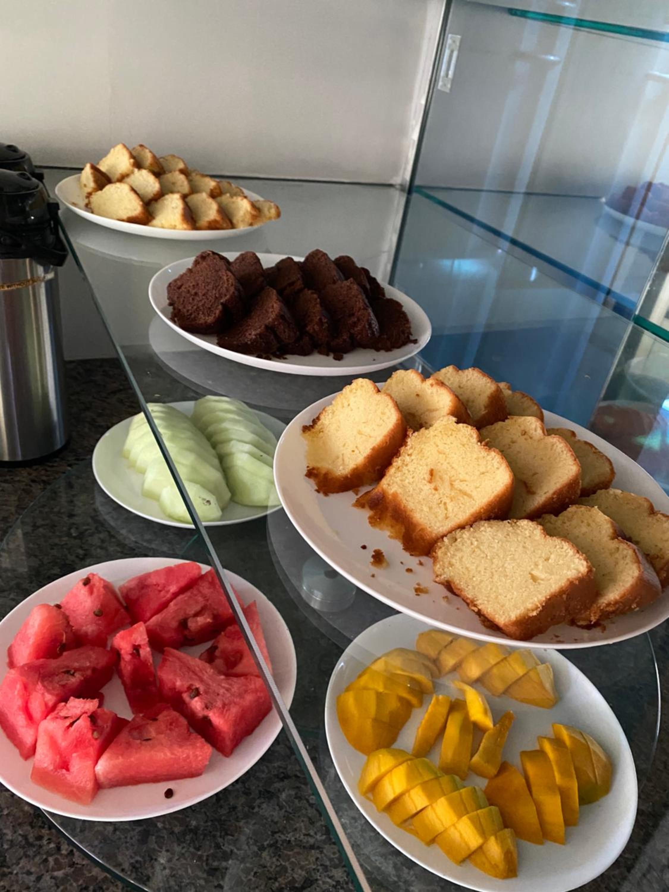 Diferente a forma de expor o café da manhã.