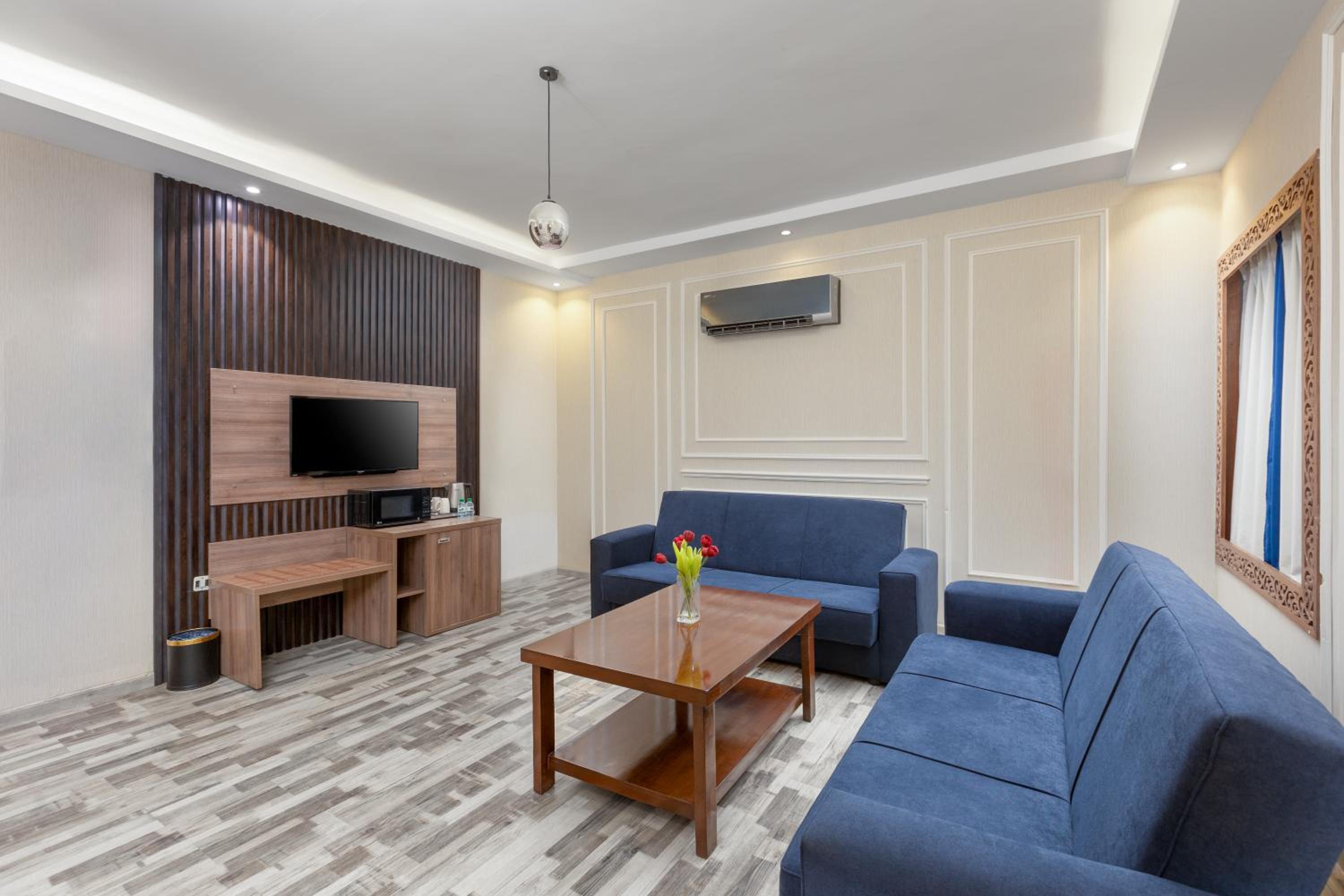 أخذت جناح تنفيذي من غرفتي نوم وصالة ، غرفة نومي كان فيها صوت غسالة مستمر ، أما الصالة فكانت الأرضية غير نظيفة