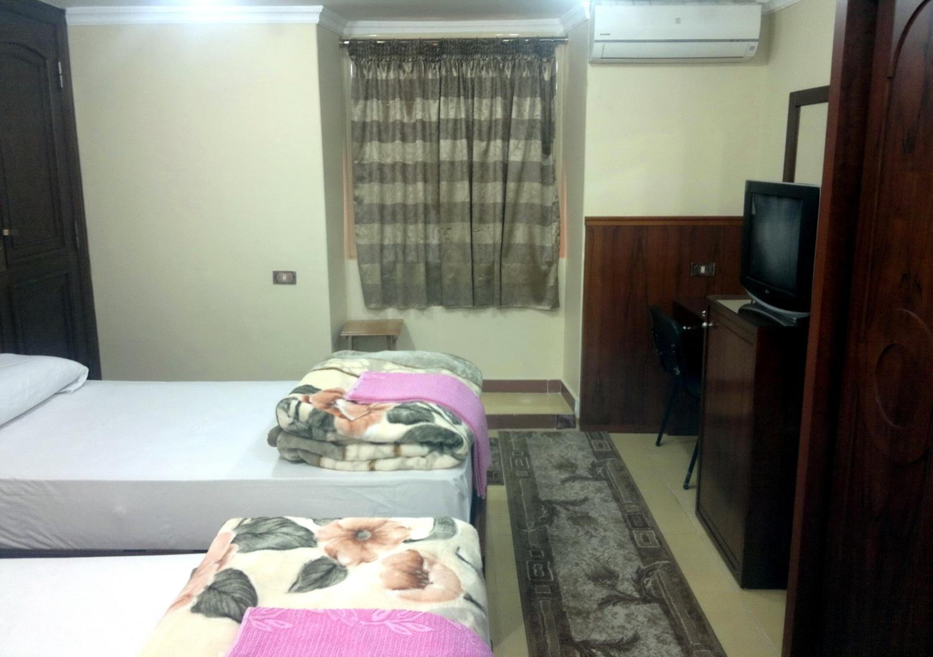 We did the reservation for 2 nights due to the original reservation in a different hotel was cancelled, when we arrived the room was not clean at all, it had hairs and dirty bed sheets. The air condition was not working, and the temperature was more than 40 Celsius. There was not towels, paper, soap or basic cleaning items. The chair was broken and all the items in the room looked dirty and damaged. We talked about it to the receptionist, he said the air conditioner was broken and we would be changed of room the next day, however it's not worthy at all for the price of almost 40 dollars the night in a country like Egypt where only garbage and misery abound, PLEASE DON'T WASTE YOUR TIME, HEALTH AND MONEY HERE. We had a lot of luggage and we were tired or we would definitely have left as the first sight, not only of the hotel but the country.