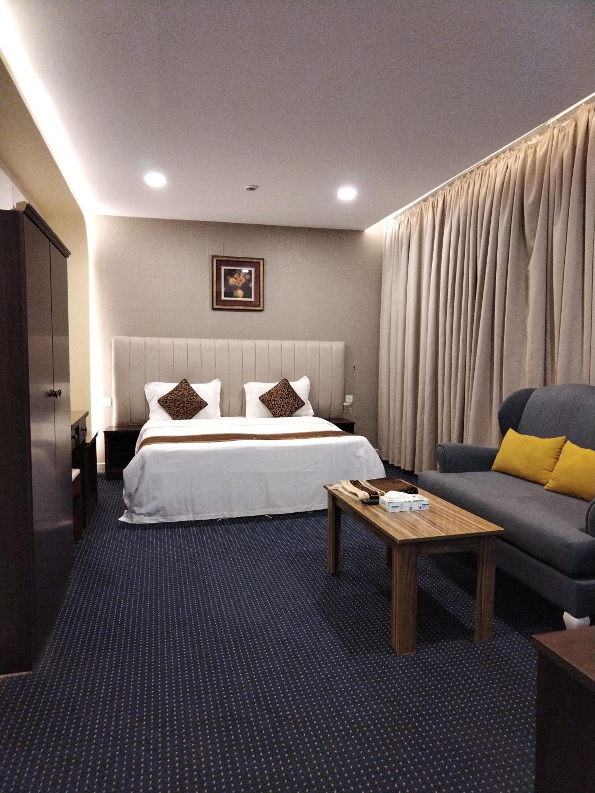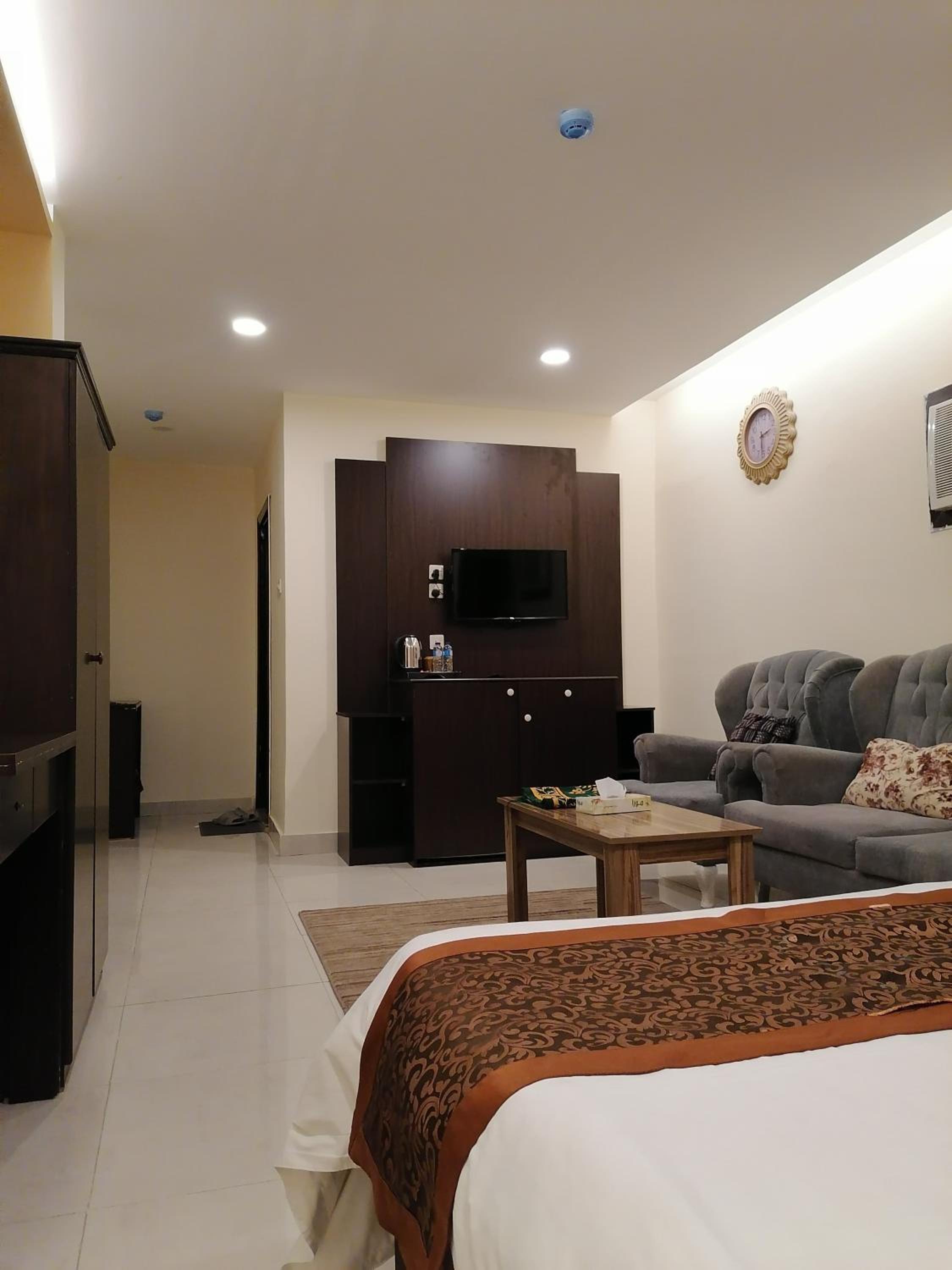 فندق شموخ العزيزيه offers a luxurious stay in Al Madinah, conveniently located near major attractions. The rooms feature modern amenities including flat-screen TVs for your entertainment.