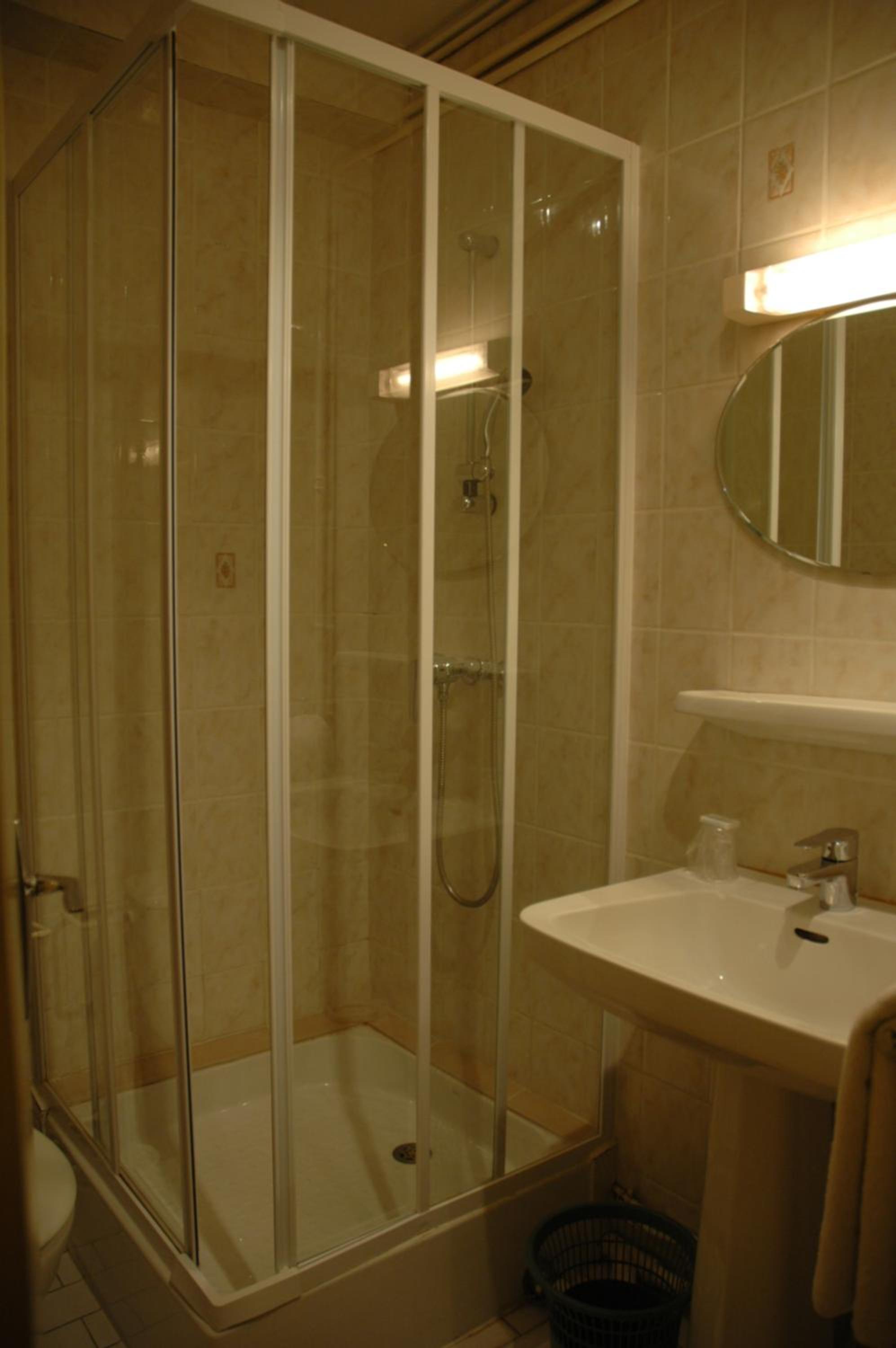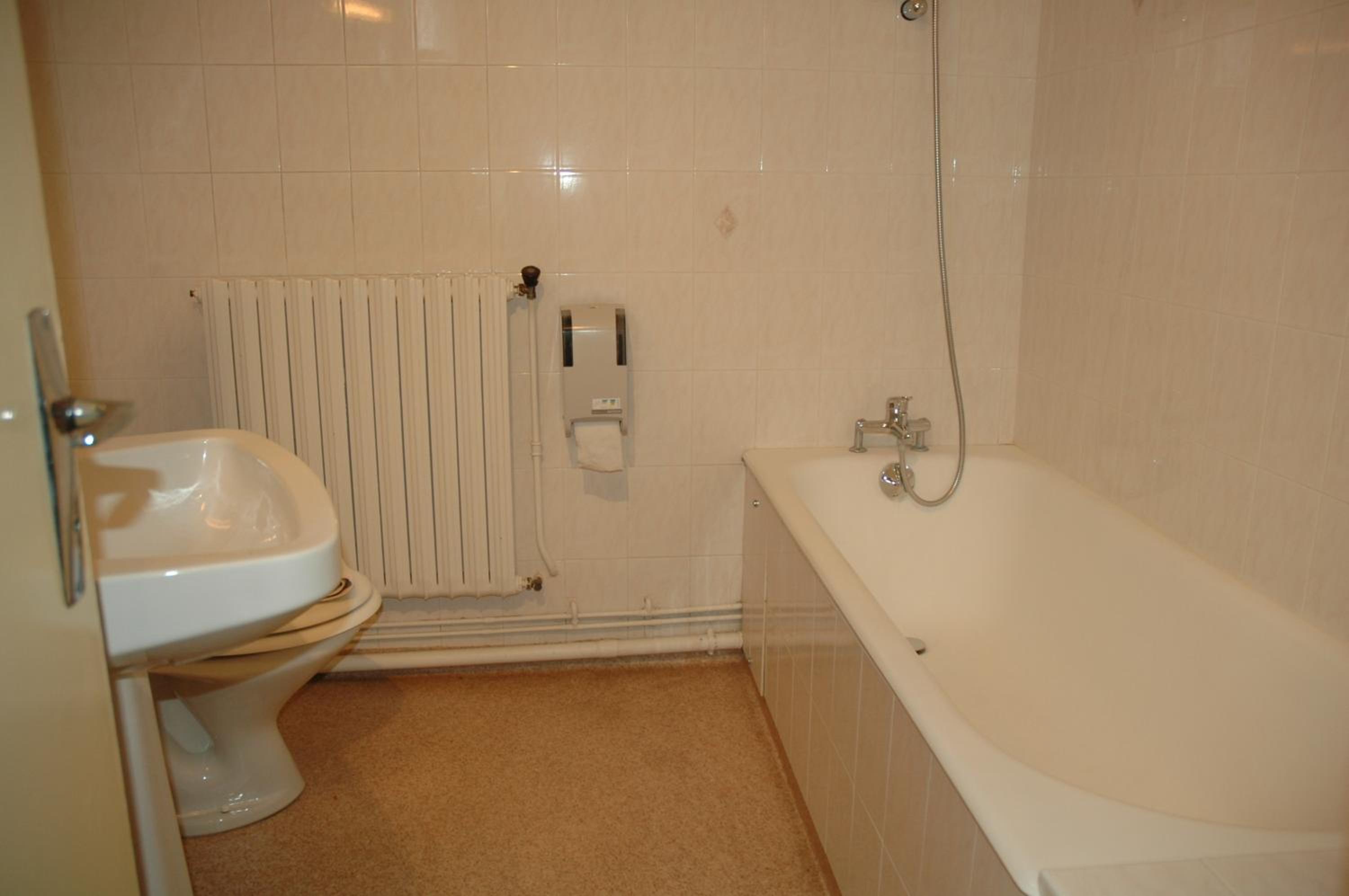 Salle de bains un peu vieillissante mais fonctionnelle.