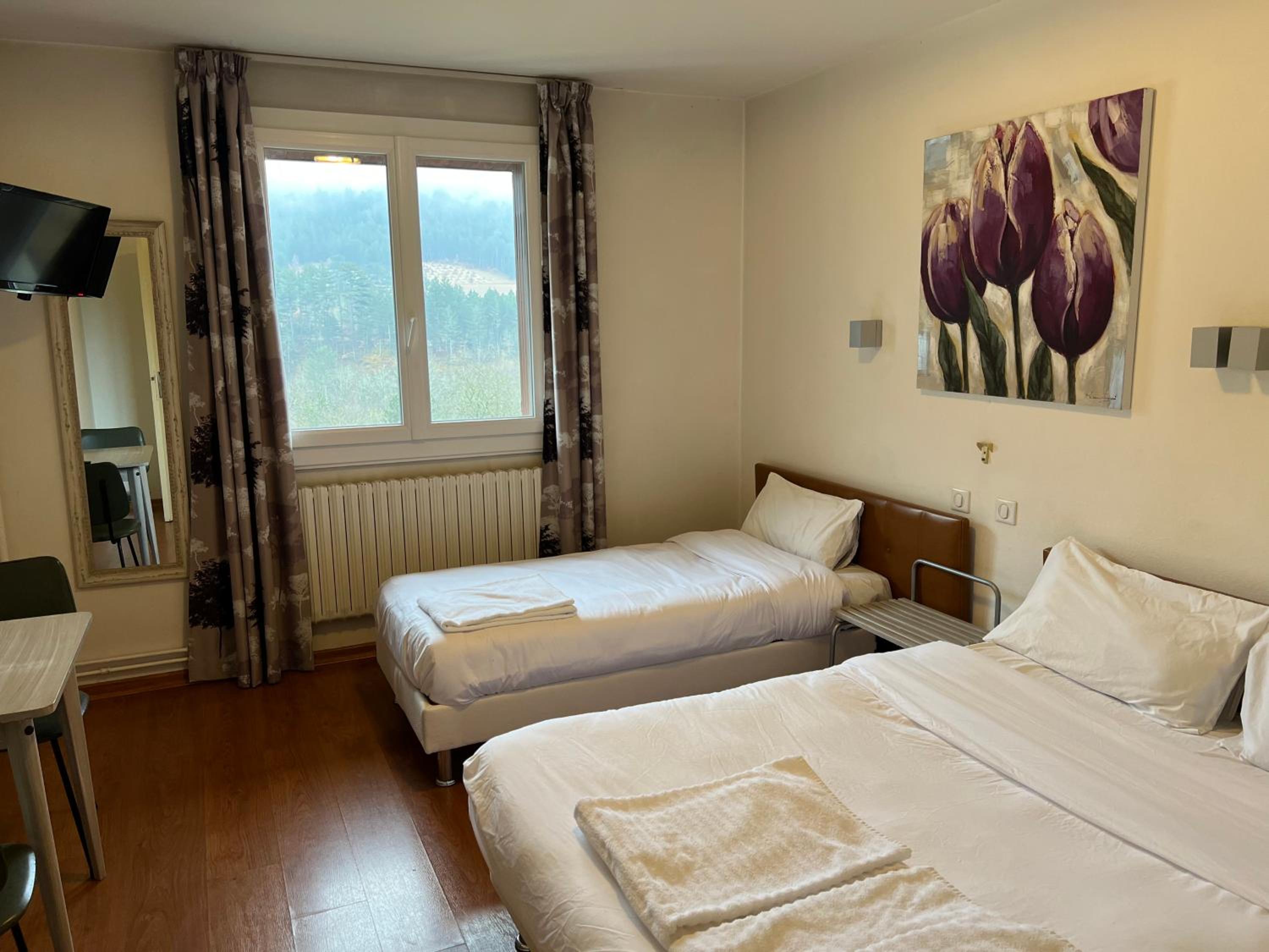 Experience a tranquil stay at our hotel nestled in the Lot Valley, just 6 km from Mende. Indulge in our soundproofed guest rooms with free Wi-Fi and picturesque countryside views. Each room boasts a cozy ambiance, a TV, and a well-equipped private bathroom for your comfort.